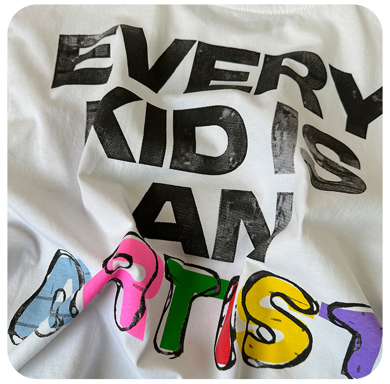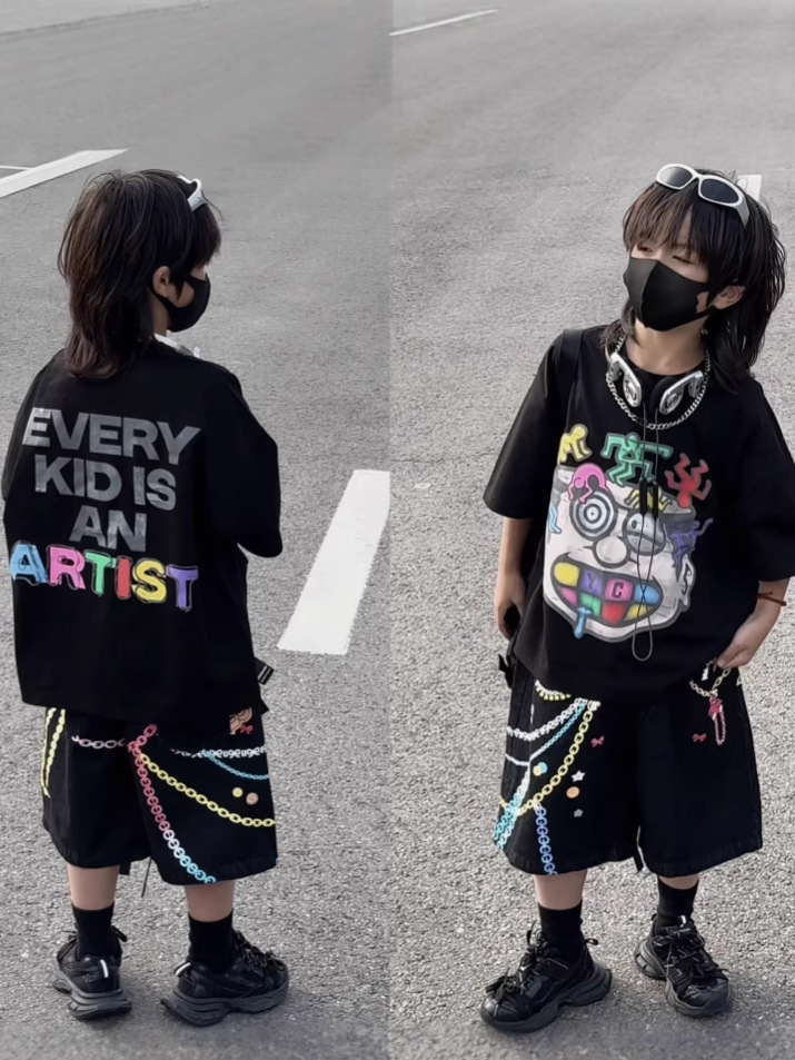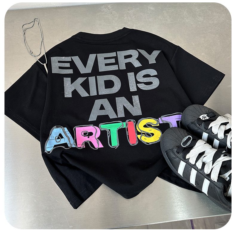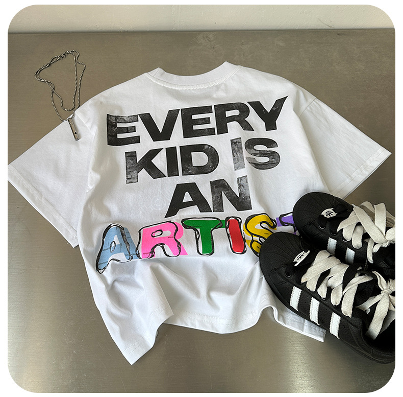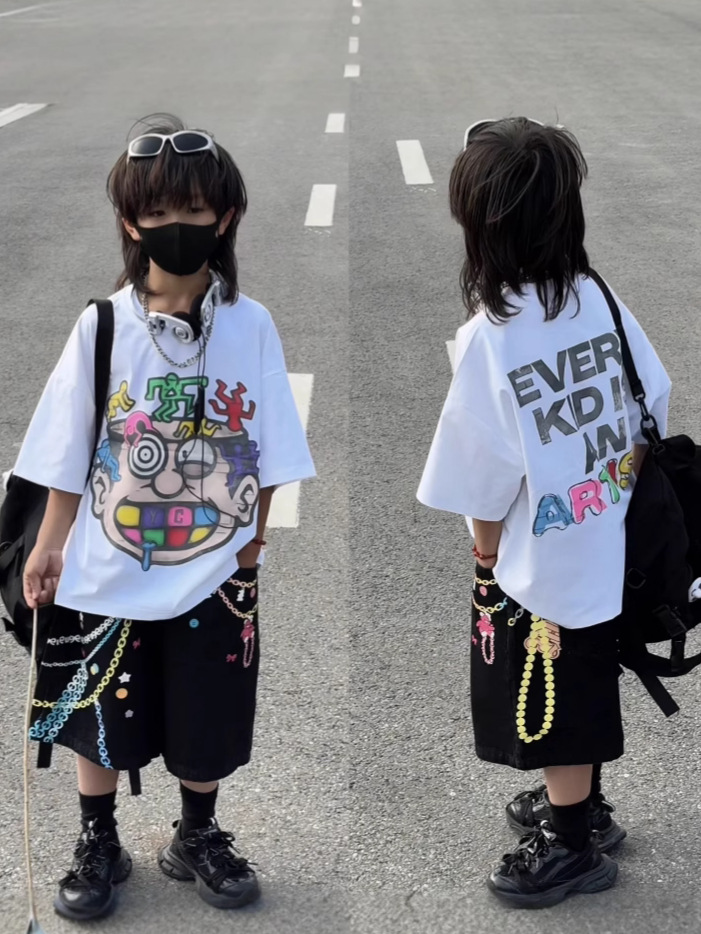 어린이 여름 2025 새로운 스트리트 힙합 유럽 제품 반팔 느슨한 프린트 반팔 아티스트 티셔츠