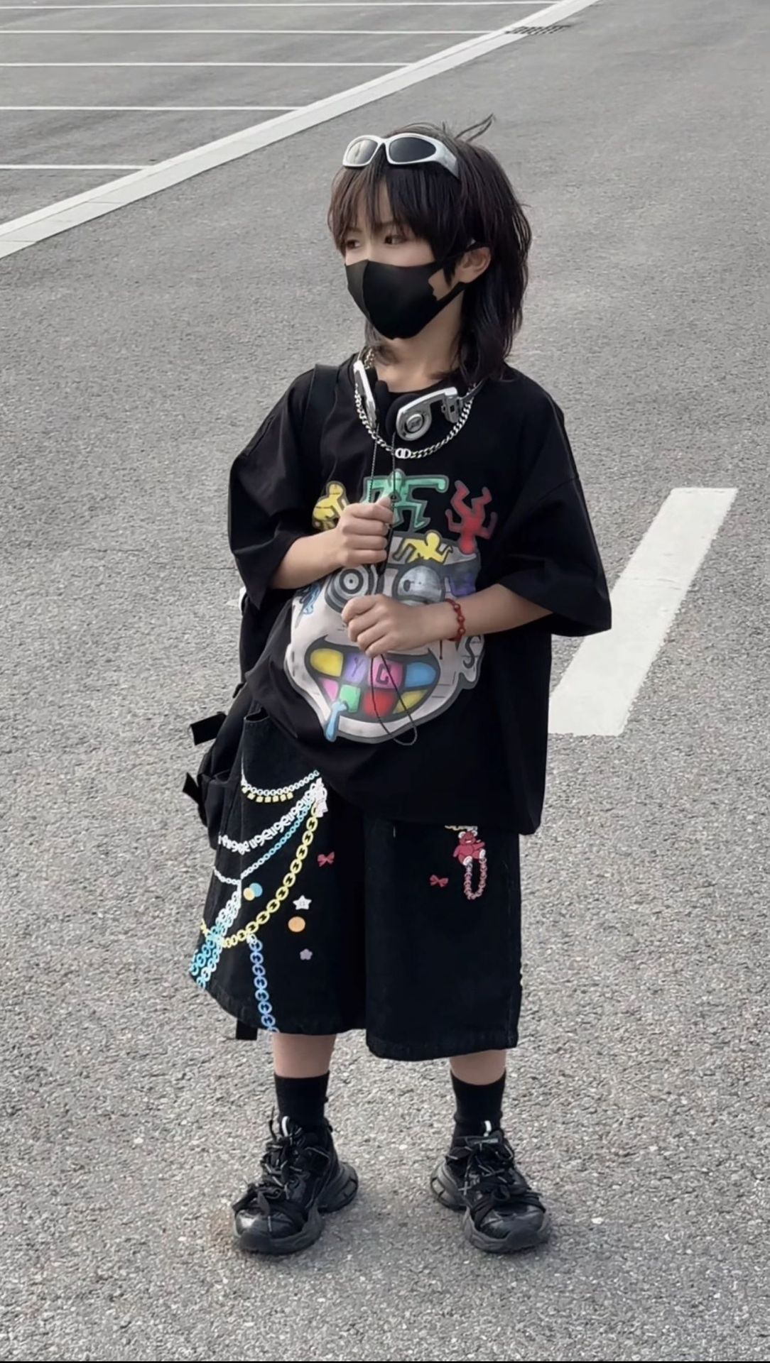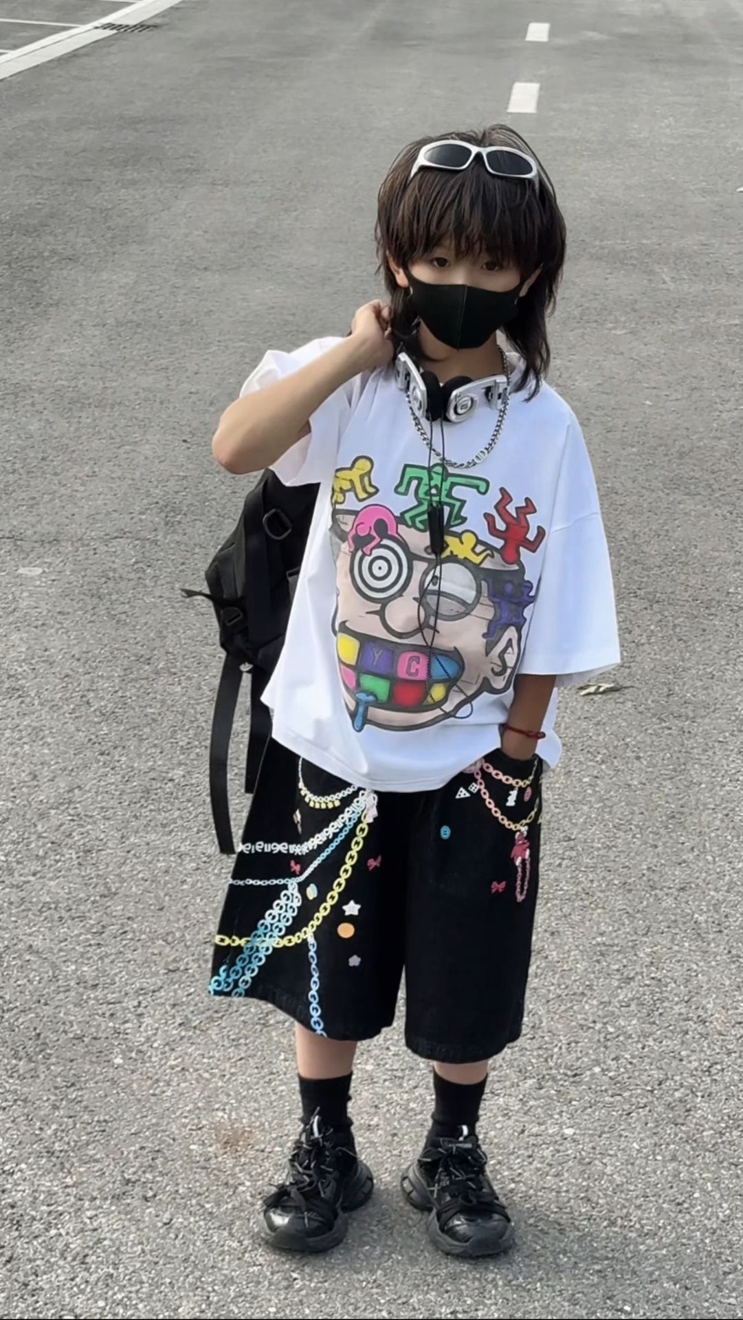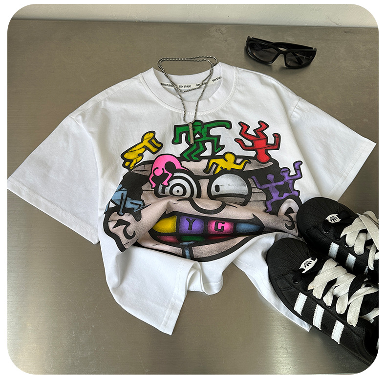 어린이 여름 2025 새로운 스트리트 힙합 유럽 제품 반팔 느슨한 프린트 반팔 아티스트 티셔츠