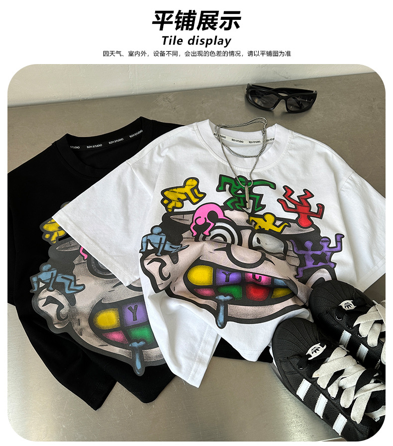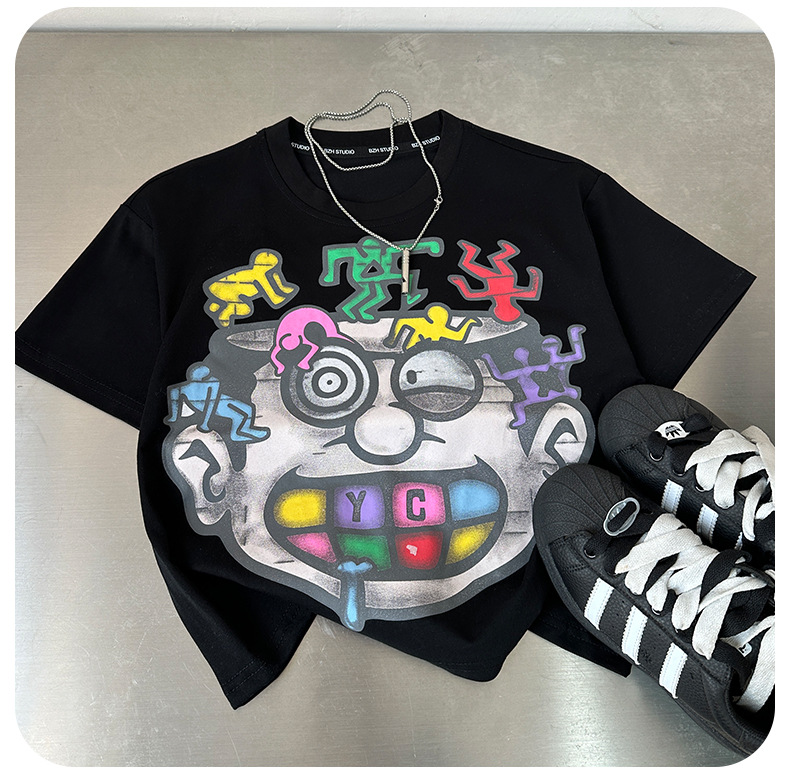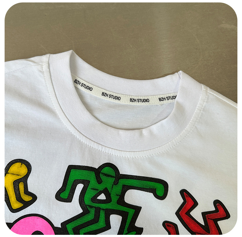 어린이 여름 2025 새로운 스트리트 힙합 유럽 제품 반팔 느슨한 프린트 반팔 아티스트 티셔츠스토어 가기