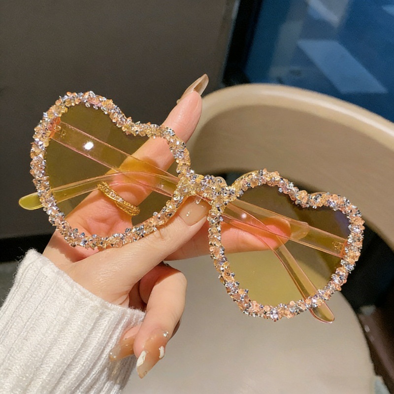 사랑 하트 테두리없는 다이아몬드 패션 선글라스 파티 재미있는 고급 캔디 컬러 선글라스스토어 가기