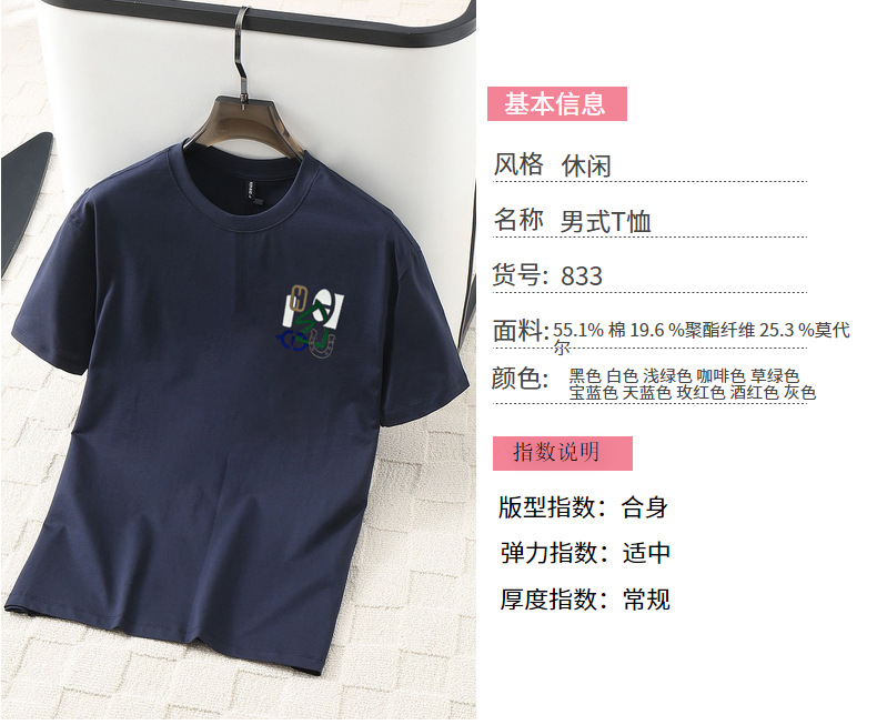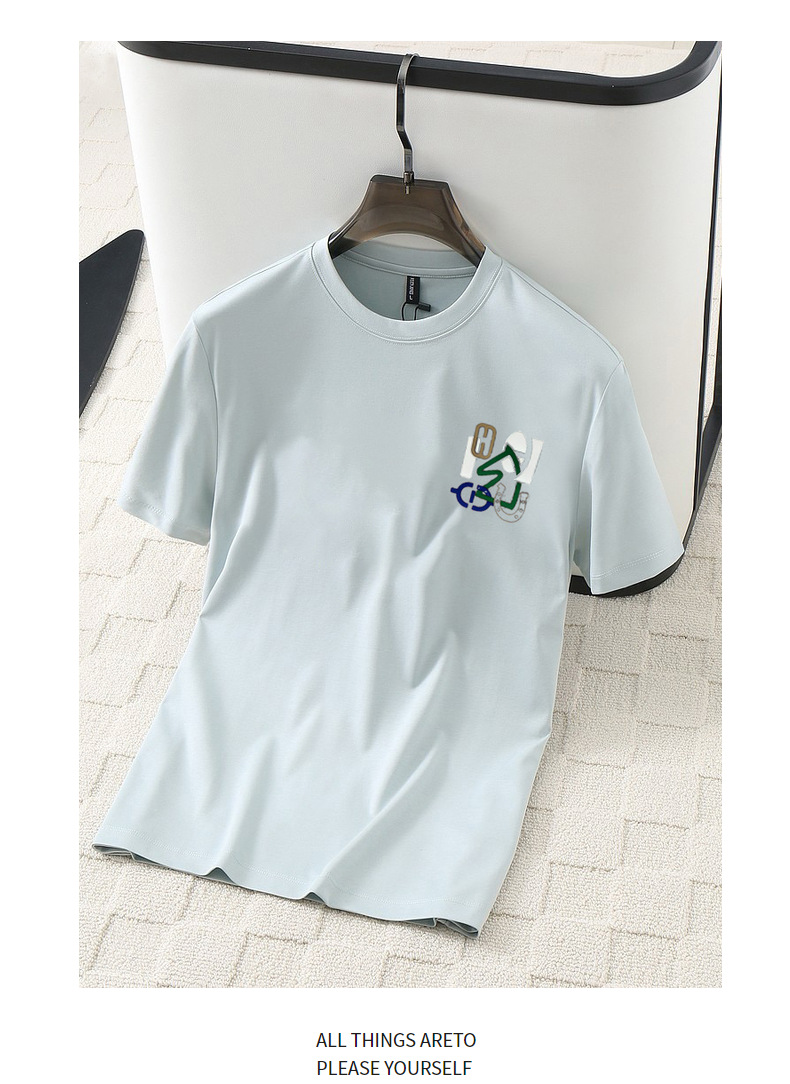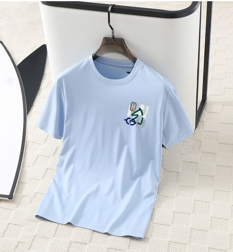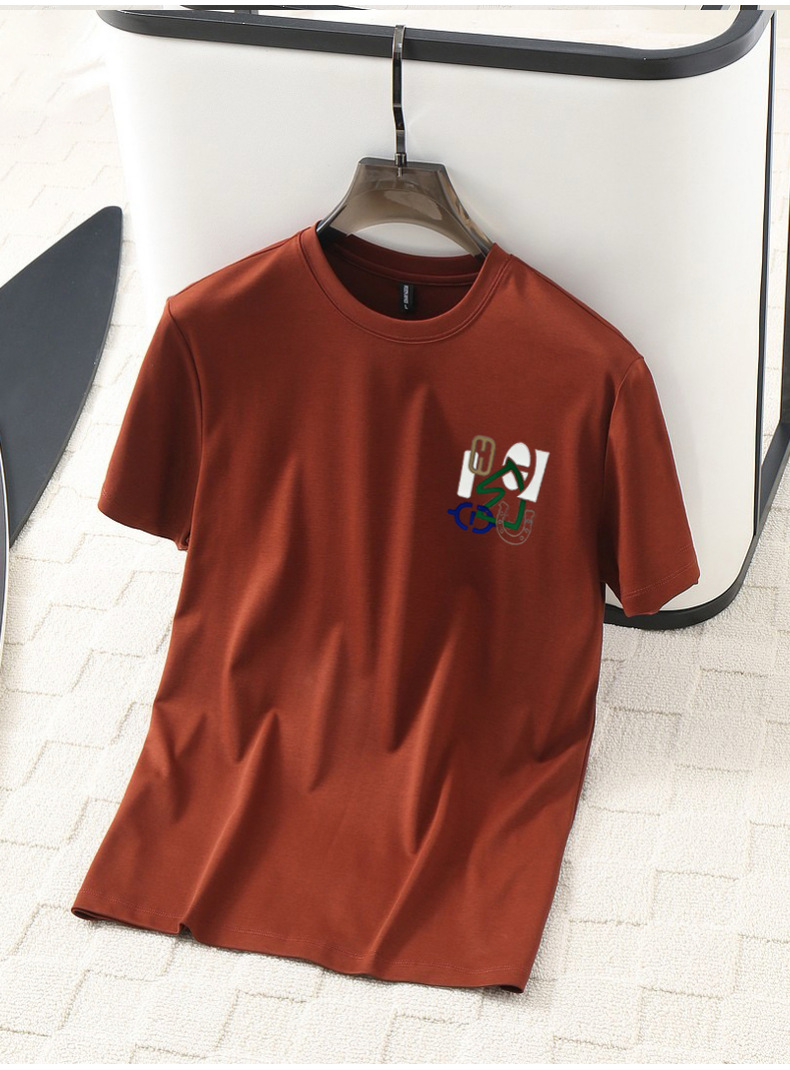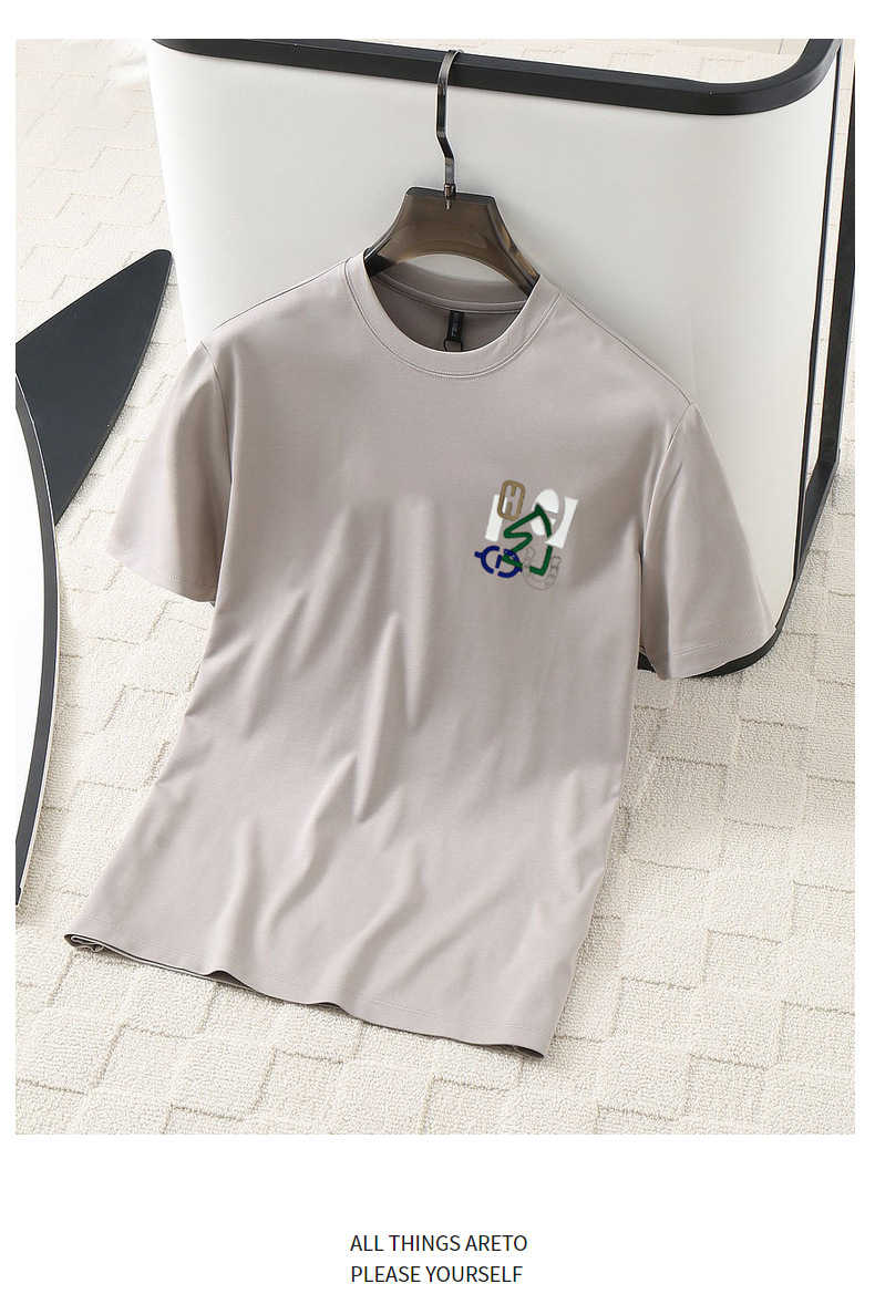여름 남성용 모달 시원한 티셔츠, 액체암모니아 원단, 심플하고 다용도로 활용 가능하며 매우 시원하고 통기성이 좋습니다.스토어 가기