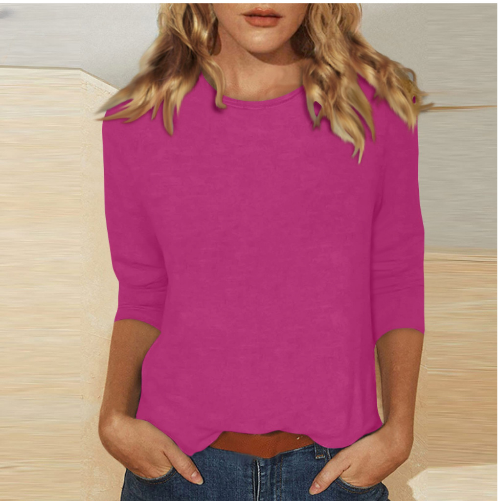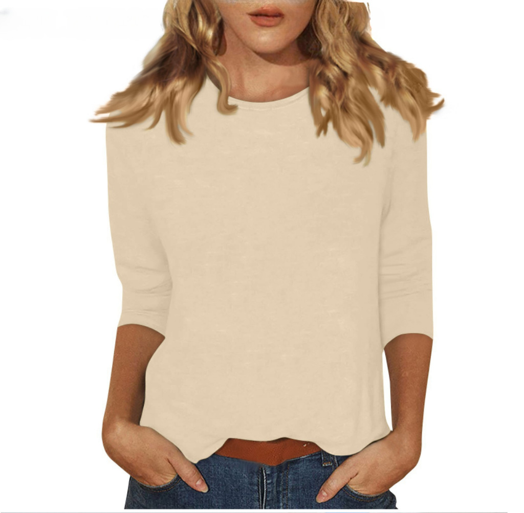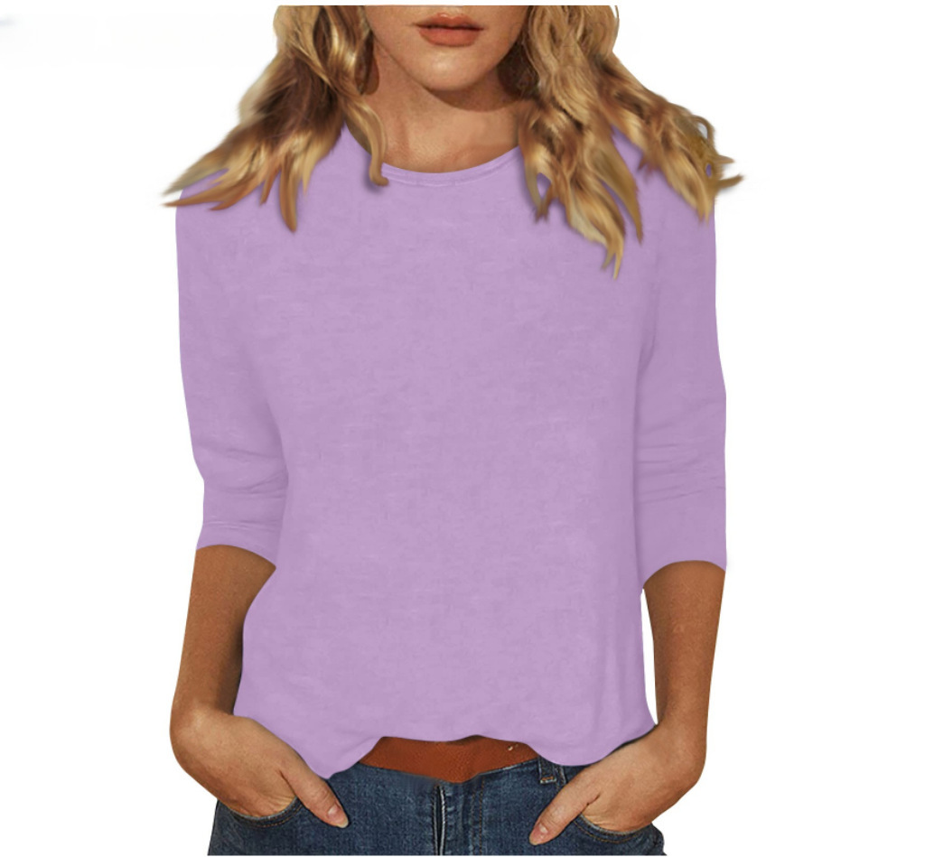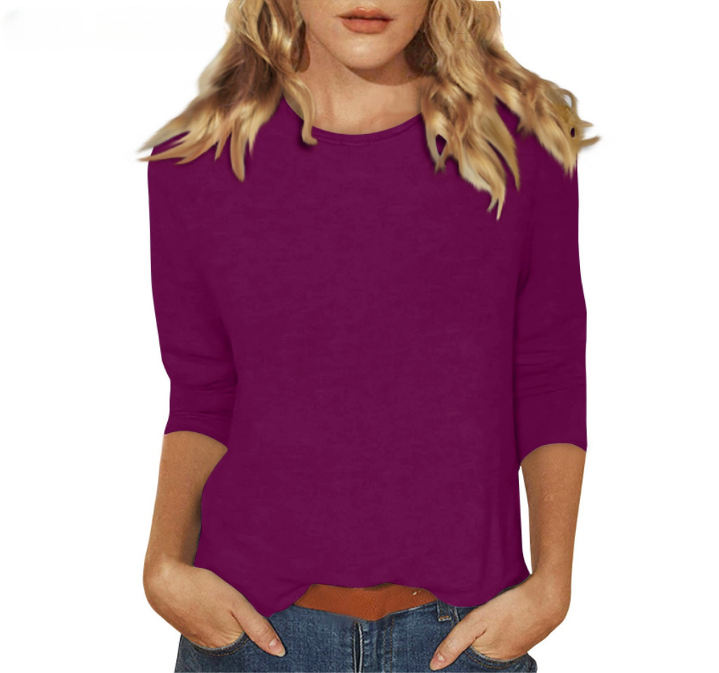 2025 크로스보더 아마존 신작 여성용 라운드 넥 티셔츠 7부소매 솔리드 컬러 탑