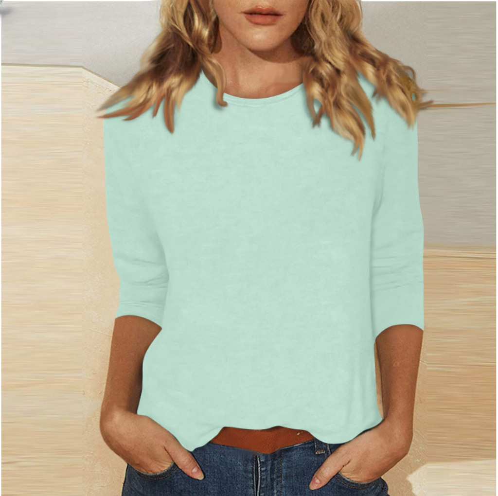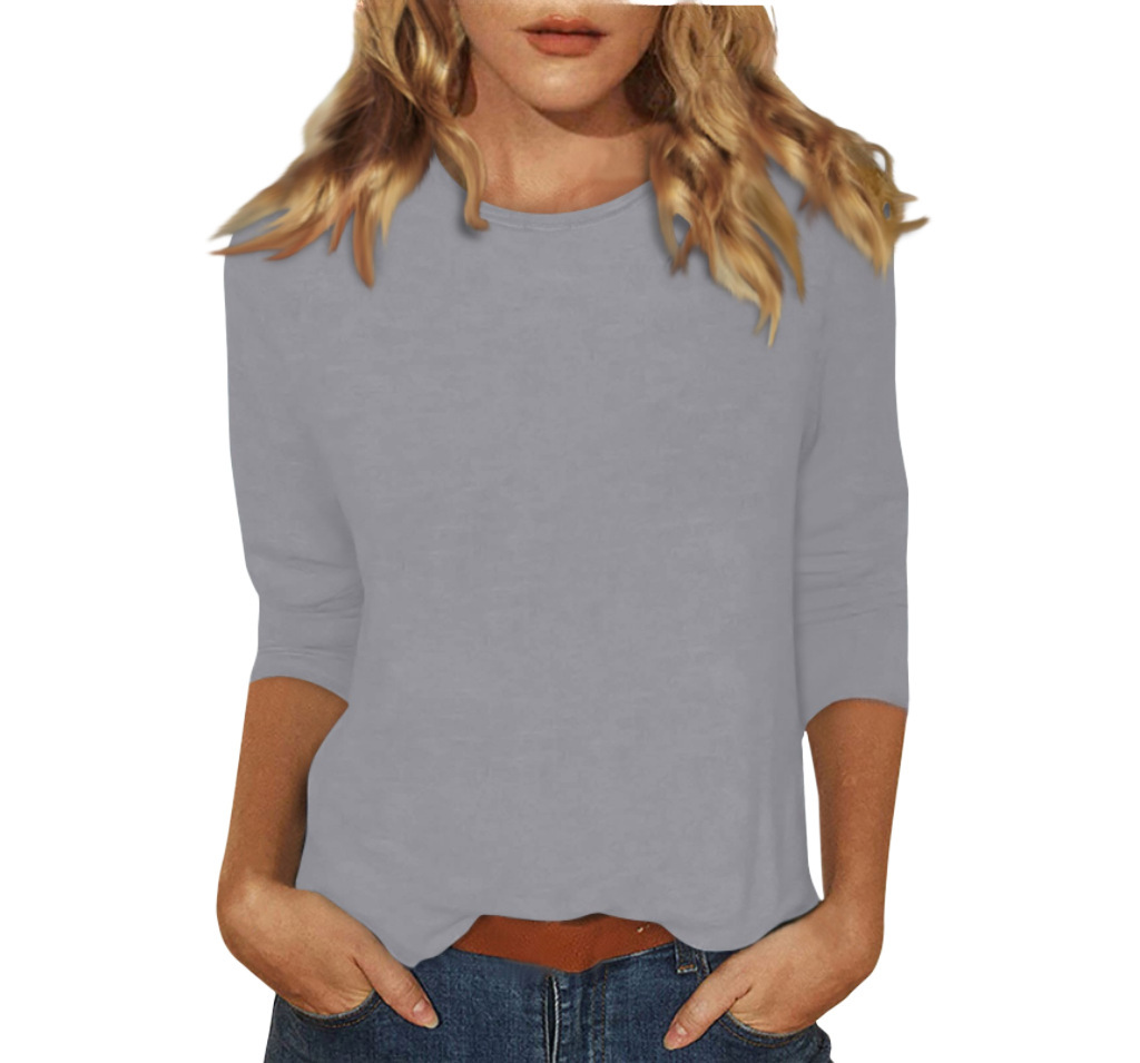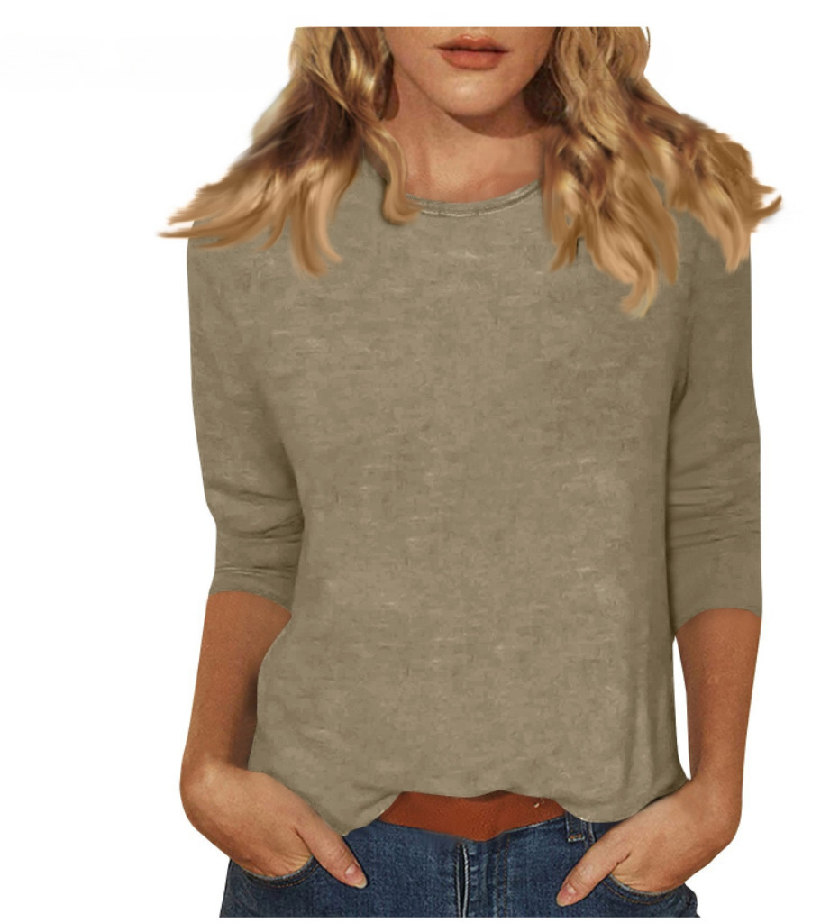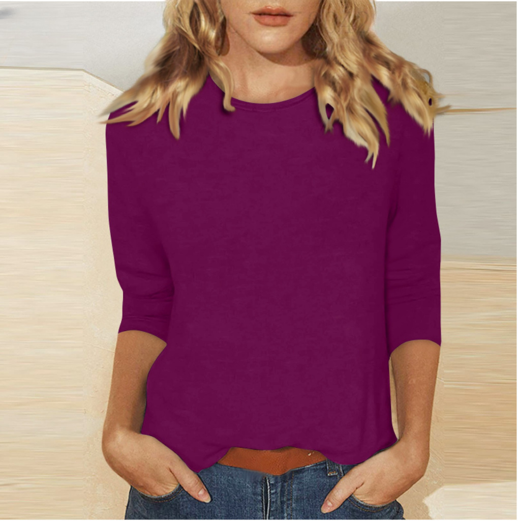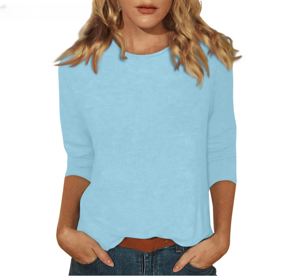 2025 크로스보더 아마존 신작 여성용 라운드 넥 티셔츠 7부소매 솔리드 컬러 탑