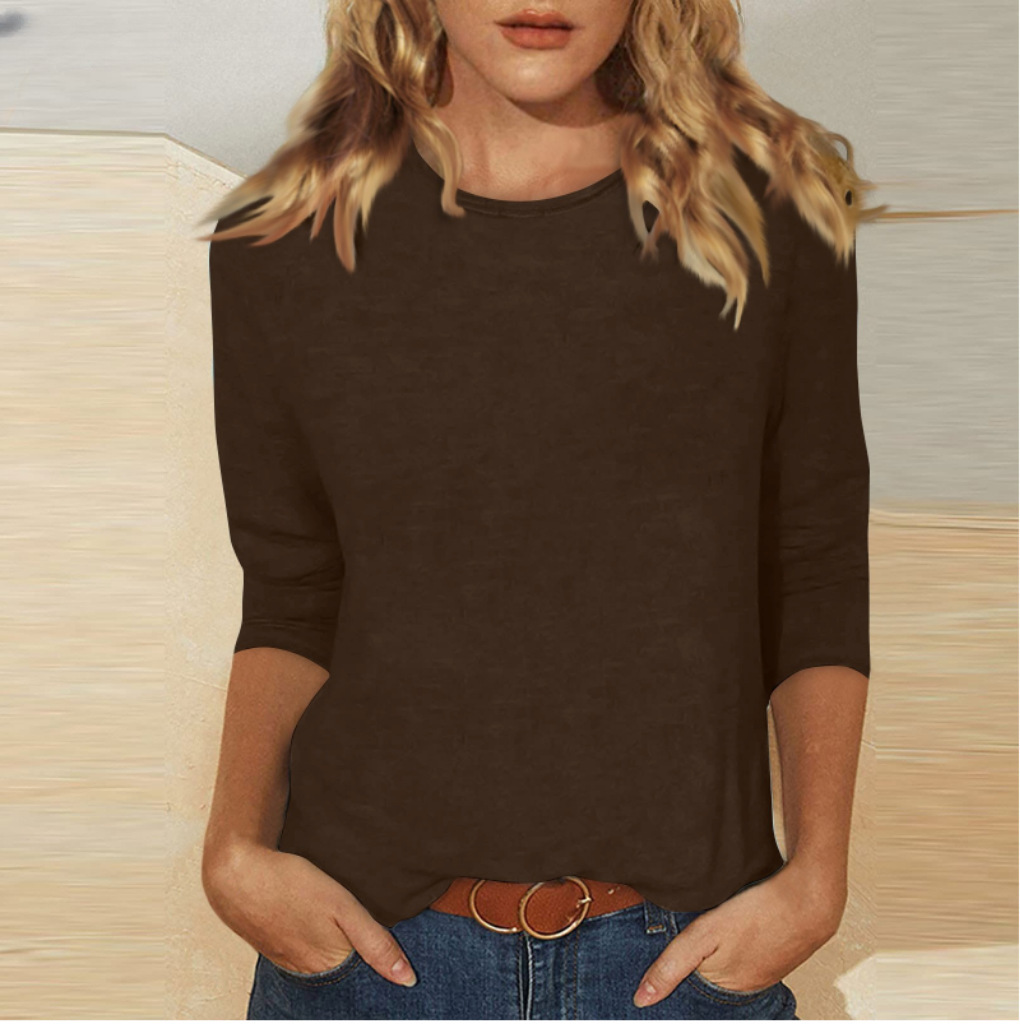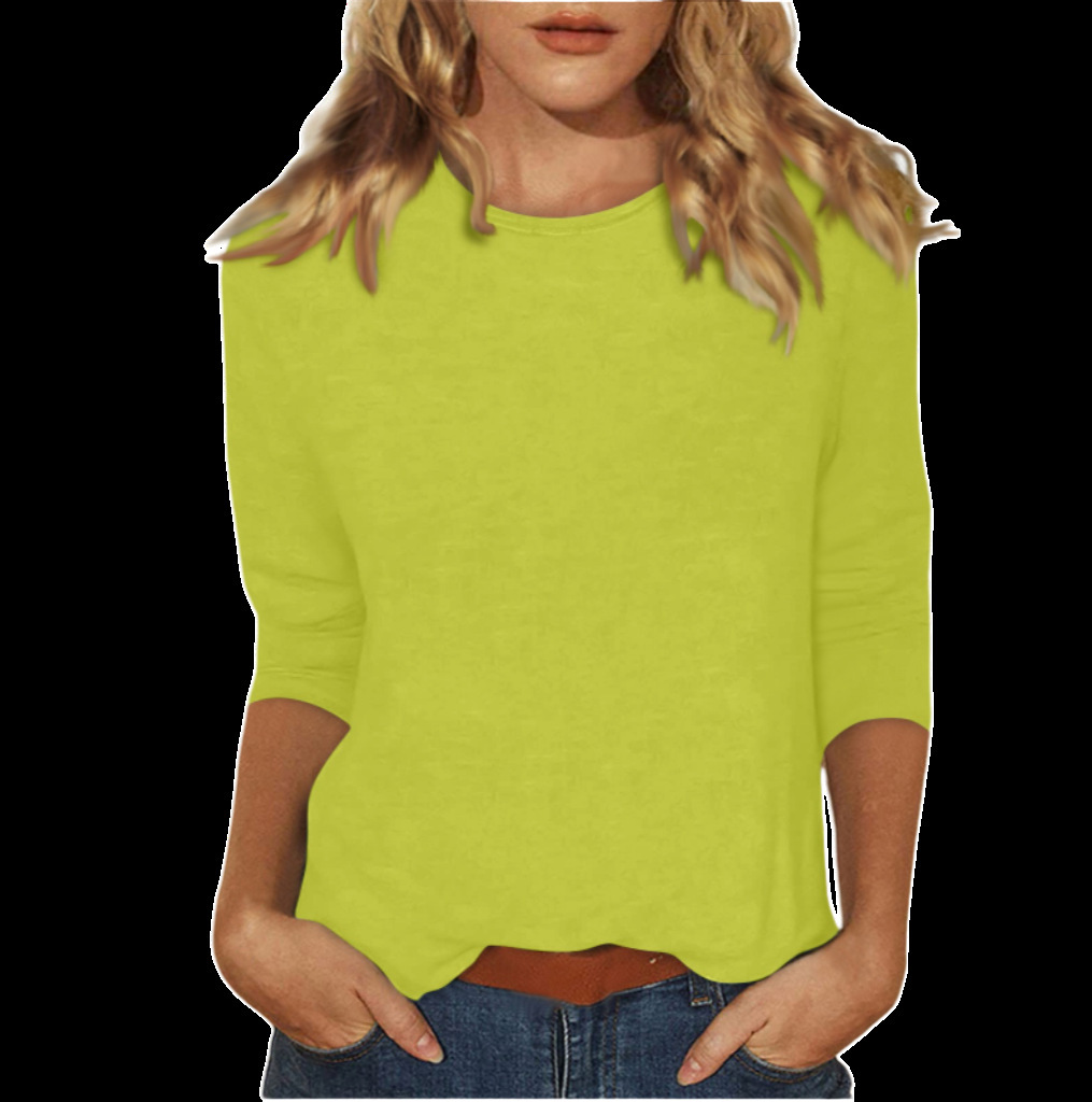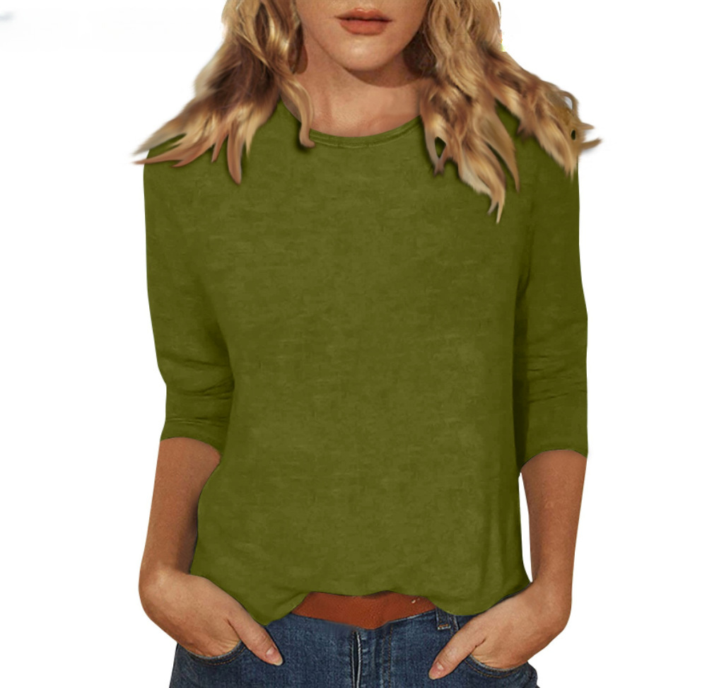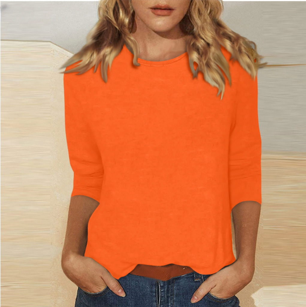 2025 크로스보더 아마존 신작 여성용 라운드 넥 티셔츠 7부소매 솔리드 컬러 탑