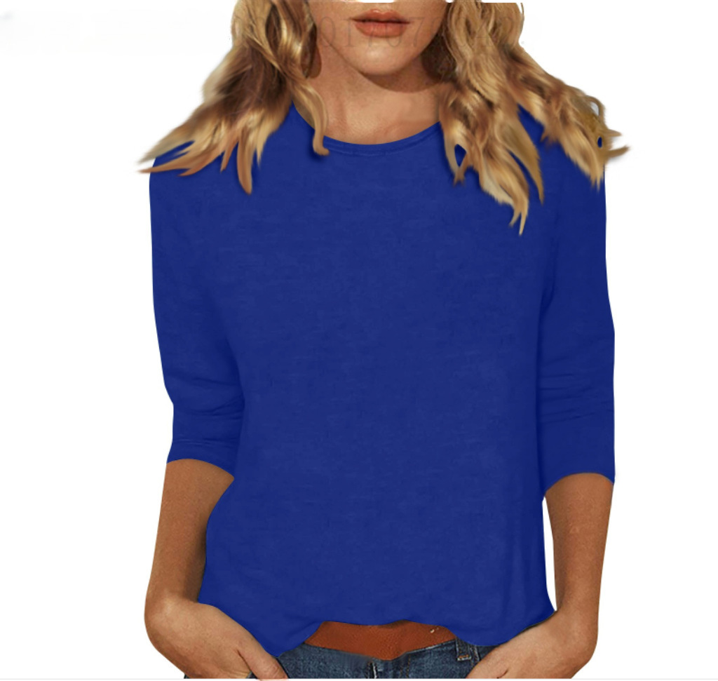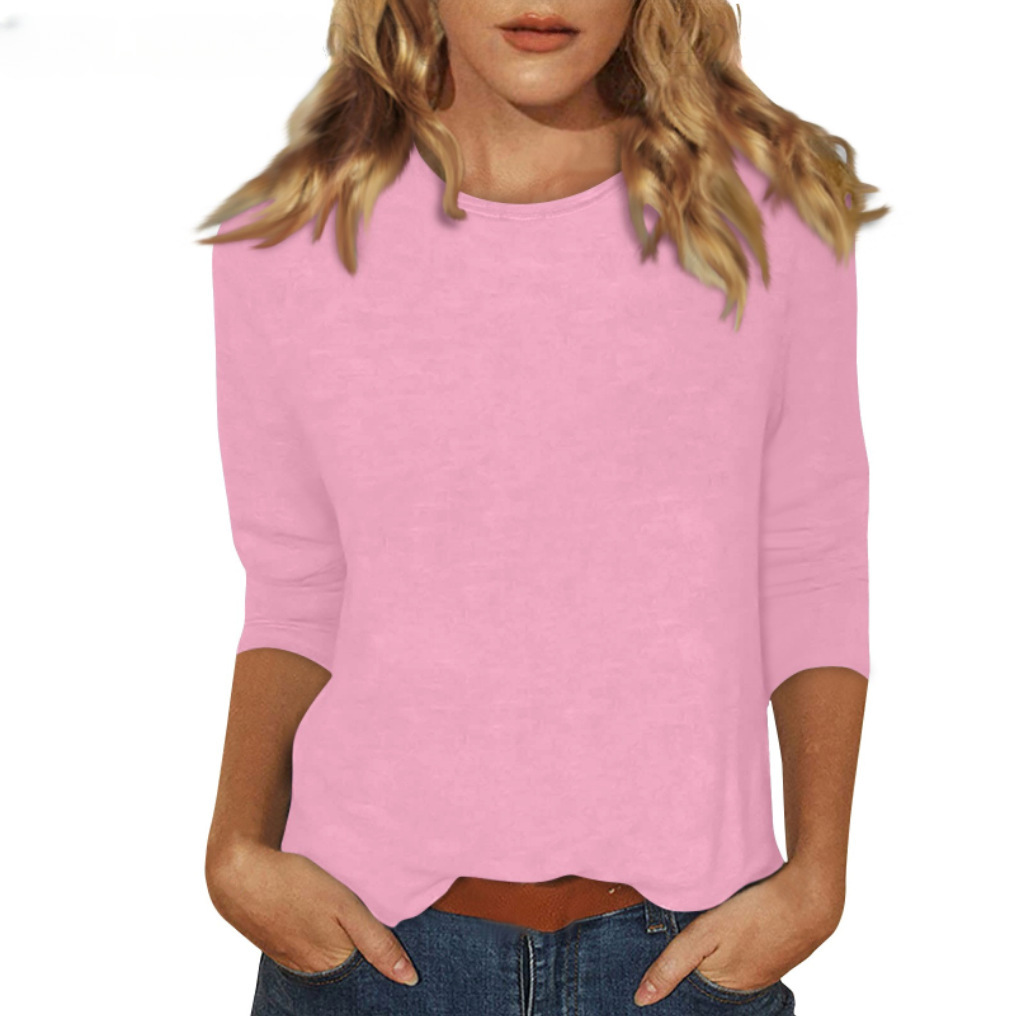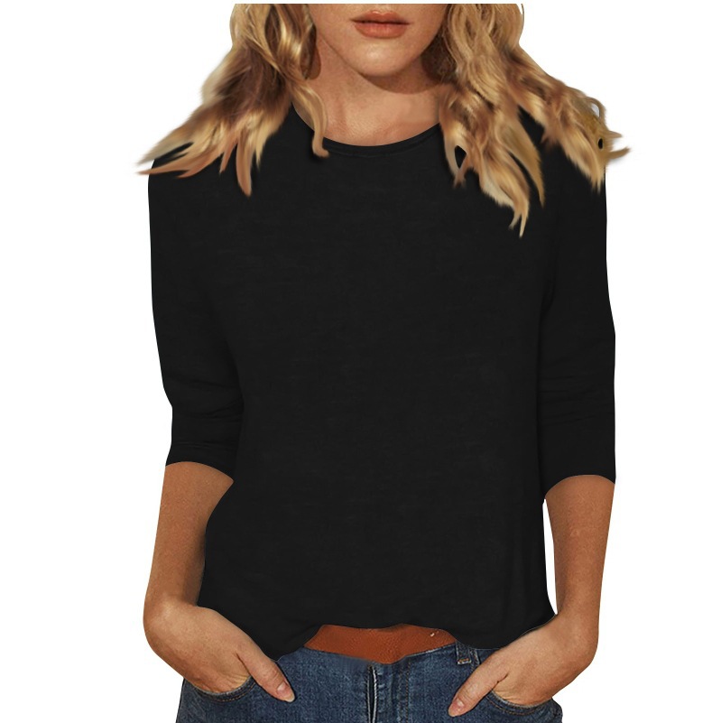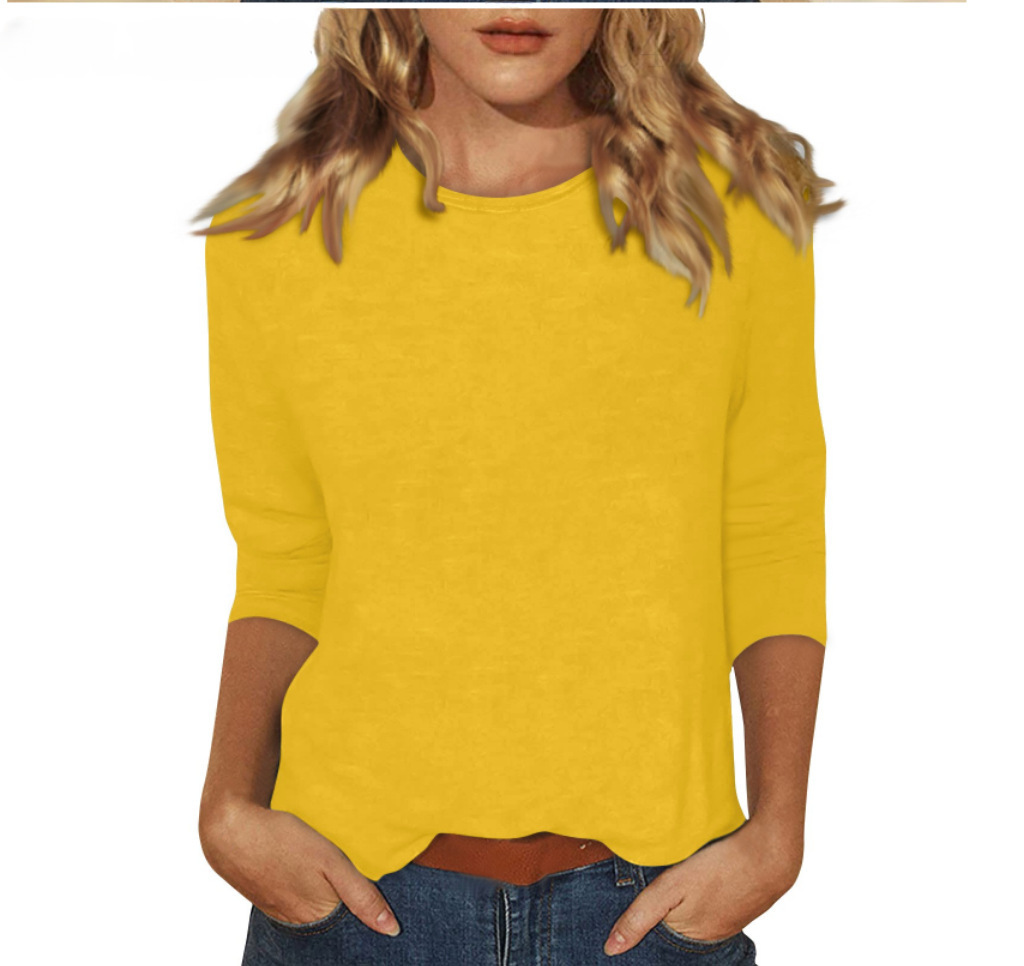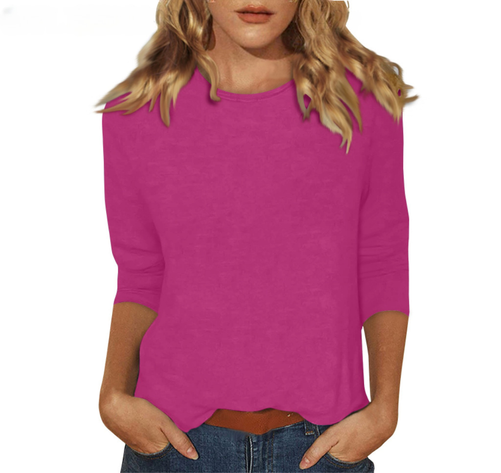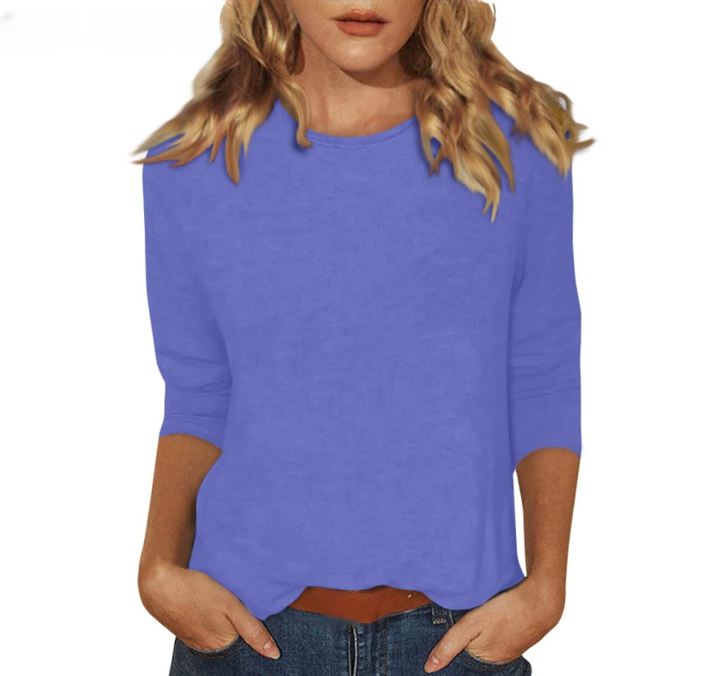 2025 크로스보더 아마존 신작 여성용 라운드 넥 티셔츠 7부소매 솔리드 컬러 탑스토어 가기
