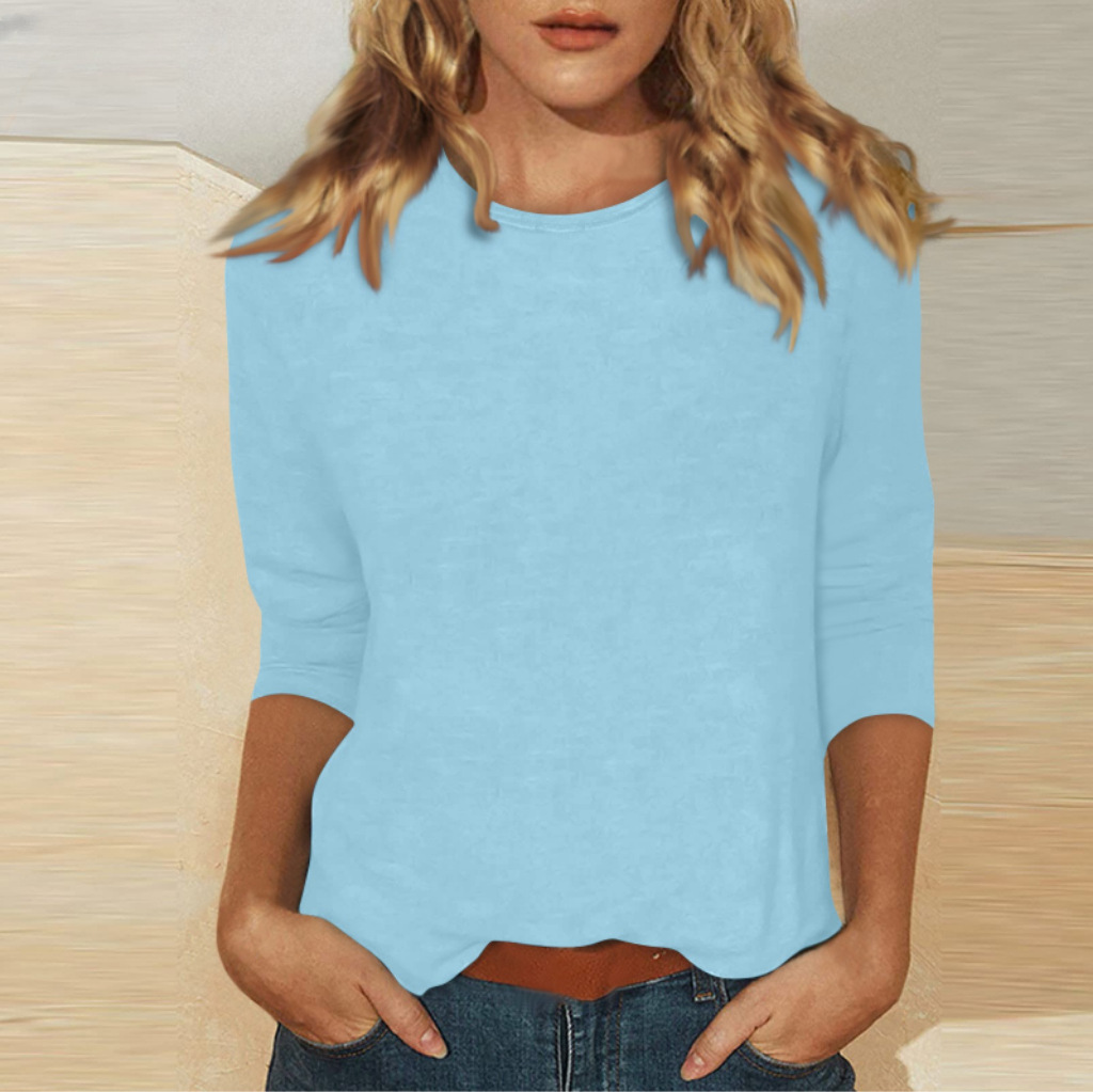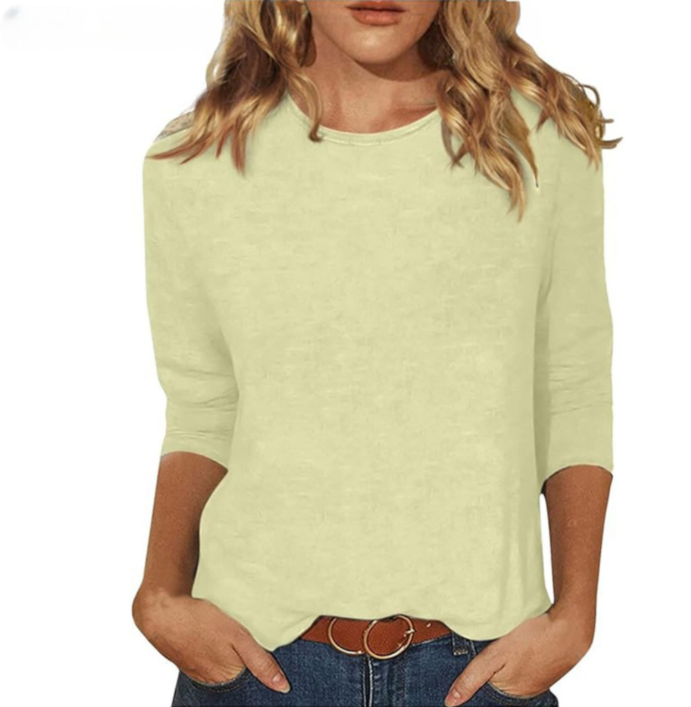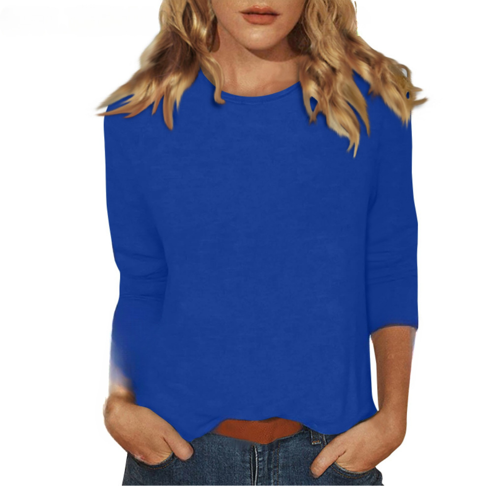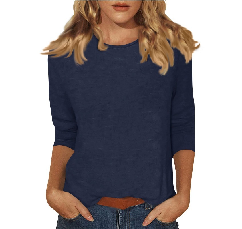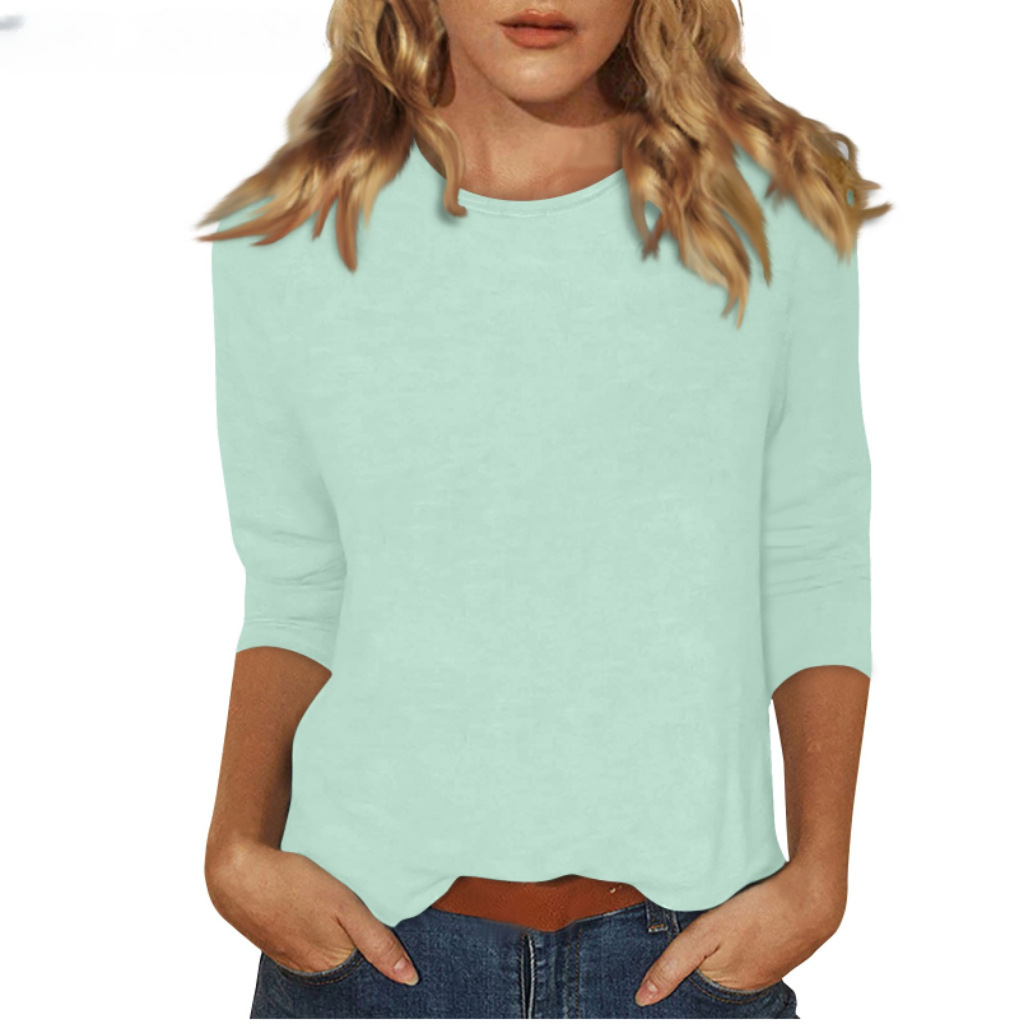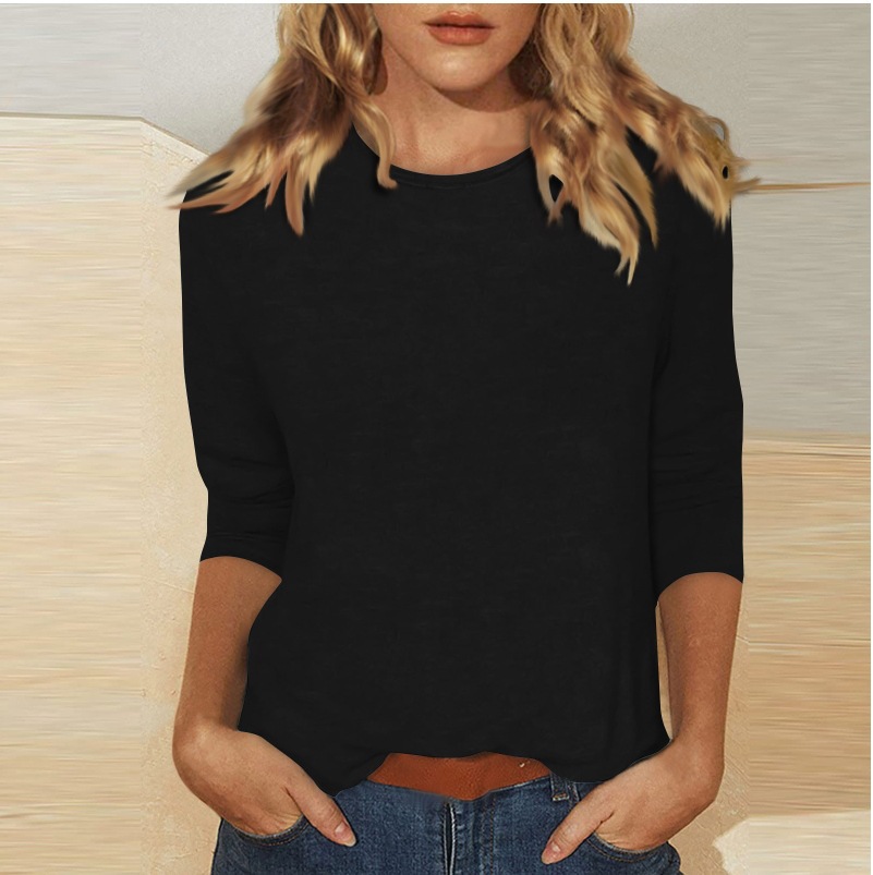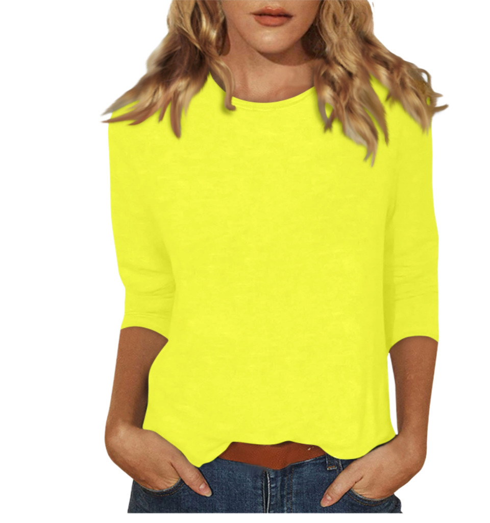 2025 크로스보더 아마존 신작 여성용 라운드 넥 티셔츠 7부소매 솔리드 컬러 탑스토어 가기
