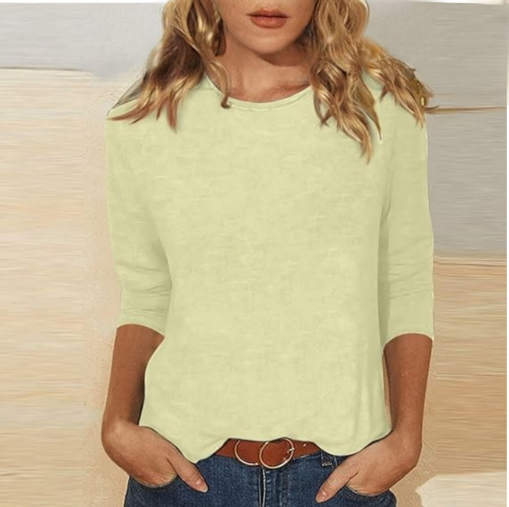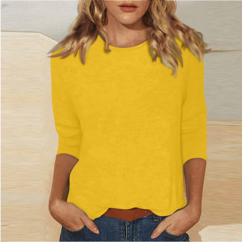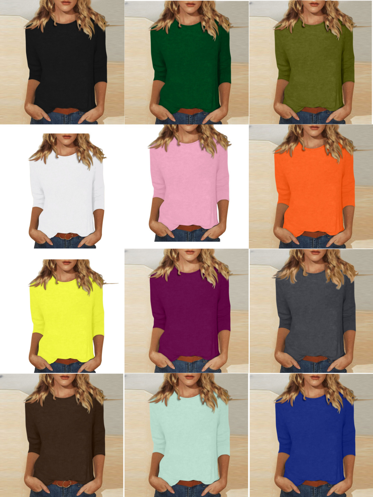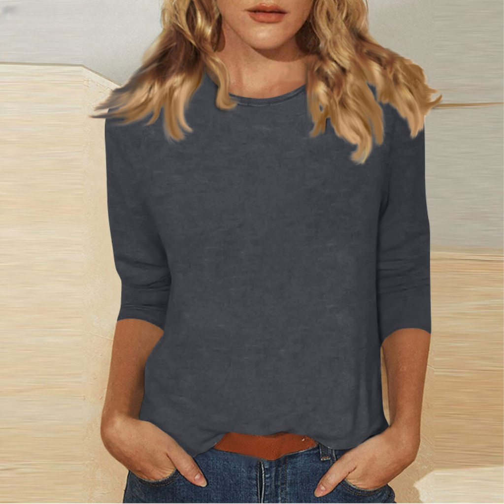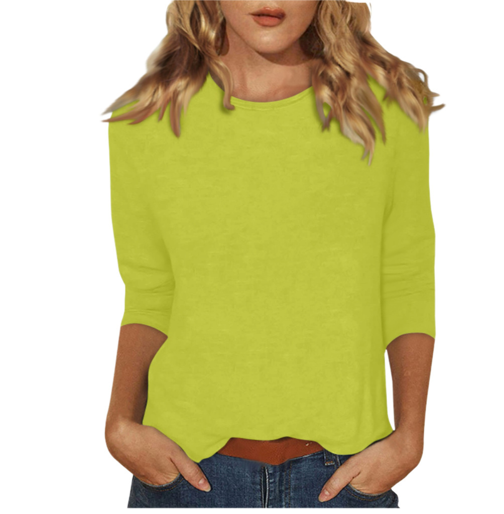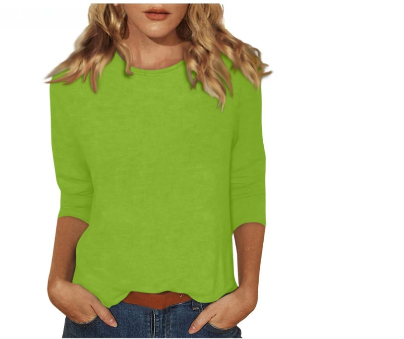 2025 크로스보더 아마존 신작 여성용 라운드 넥 티셔츠 7부소매 솔리드 컬러 탑스토어 가기