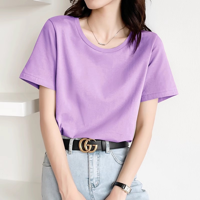 • 라이트 퍼플 라운드넥 반소매 코튼