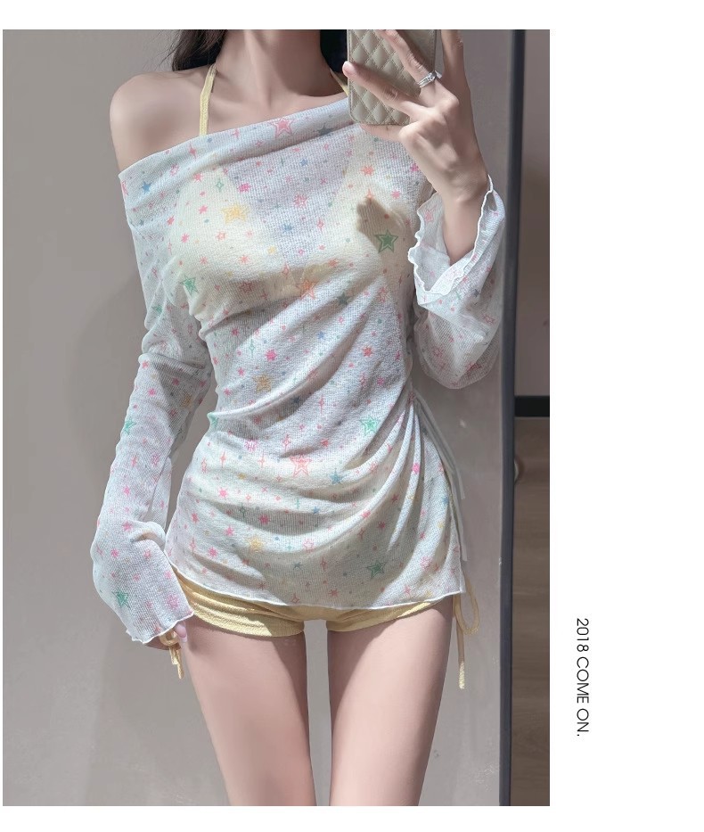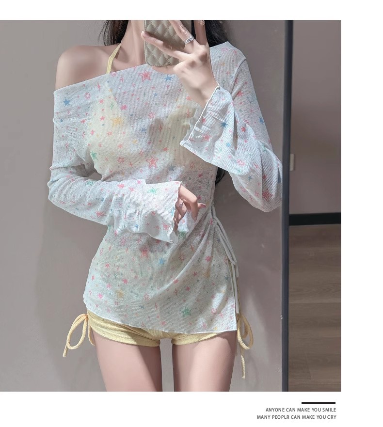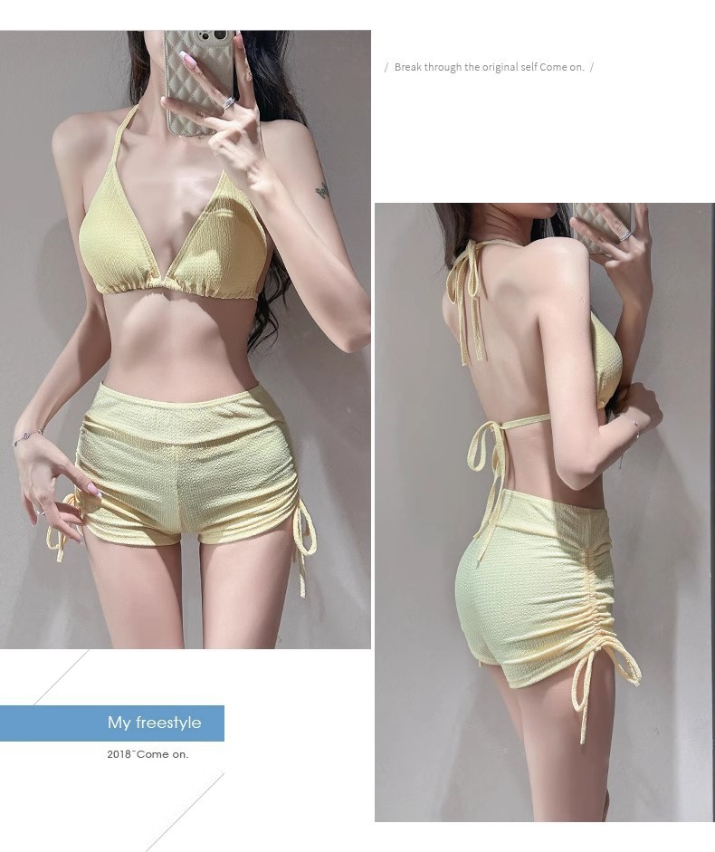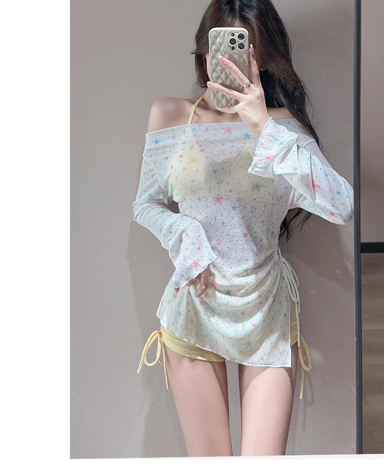 해변 휴가를 즐기는 여성을 위한 스플릿 수영복, 고급 긴팔 자외선 차단 3피스 세트, 섹시한 순수한 욕망 복서 온천 수영복