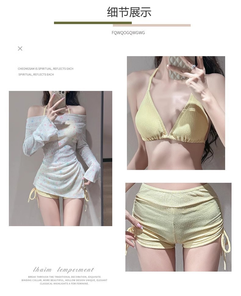 해변 휴가를 즐기는 여성을 위한 스플릿 수영복, 고급 긴팔 자외선 차단 3피스 세트, 섹시한 순수한 욕망 복서 온천 수영복스토어 가기