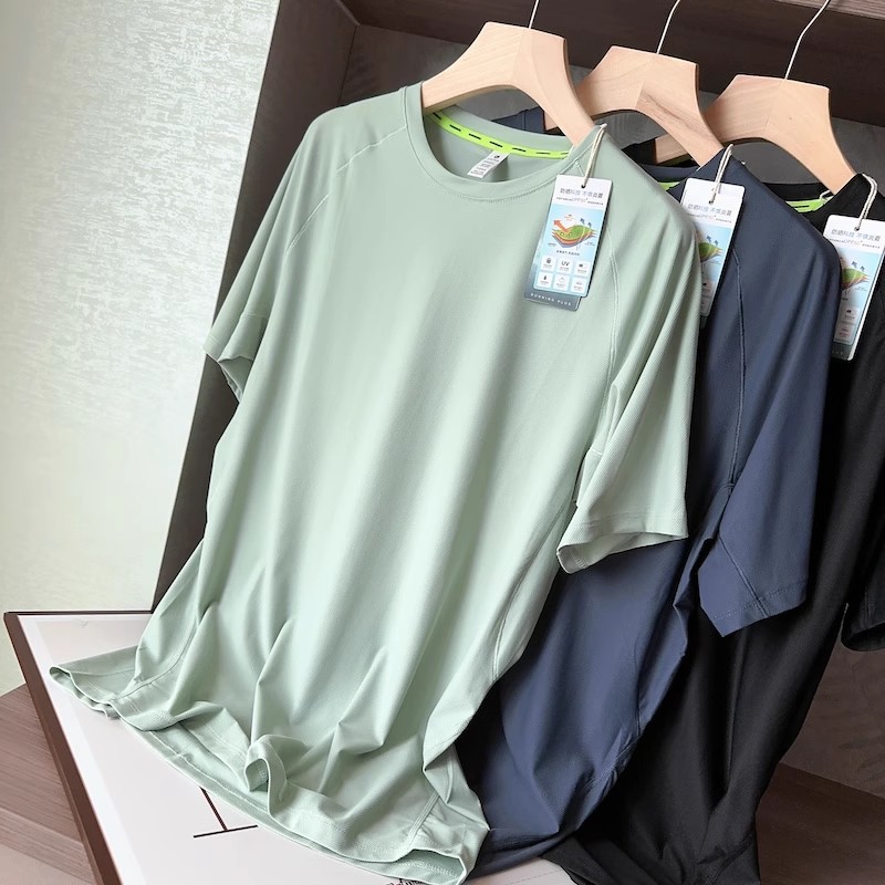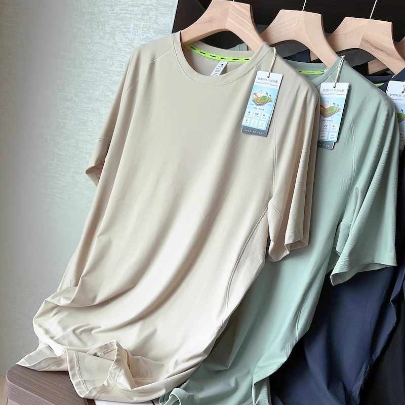 핑티 여름 스포츠 빠른 건조 티셔츠 야외 둥근 목 반팔 얼음 느낌 통기성 피트니스 스웨터 빠른 건조 하이킹