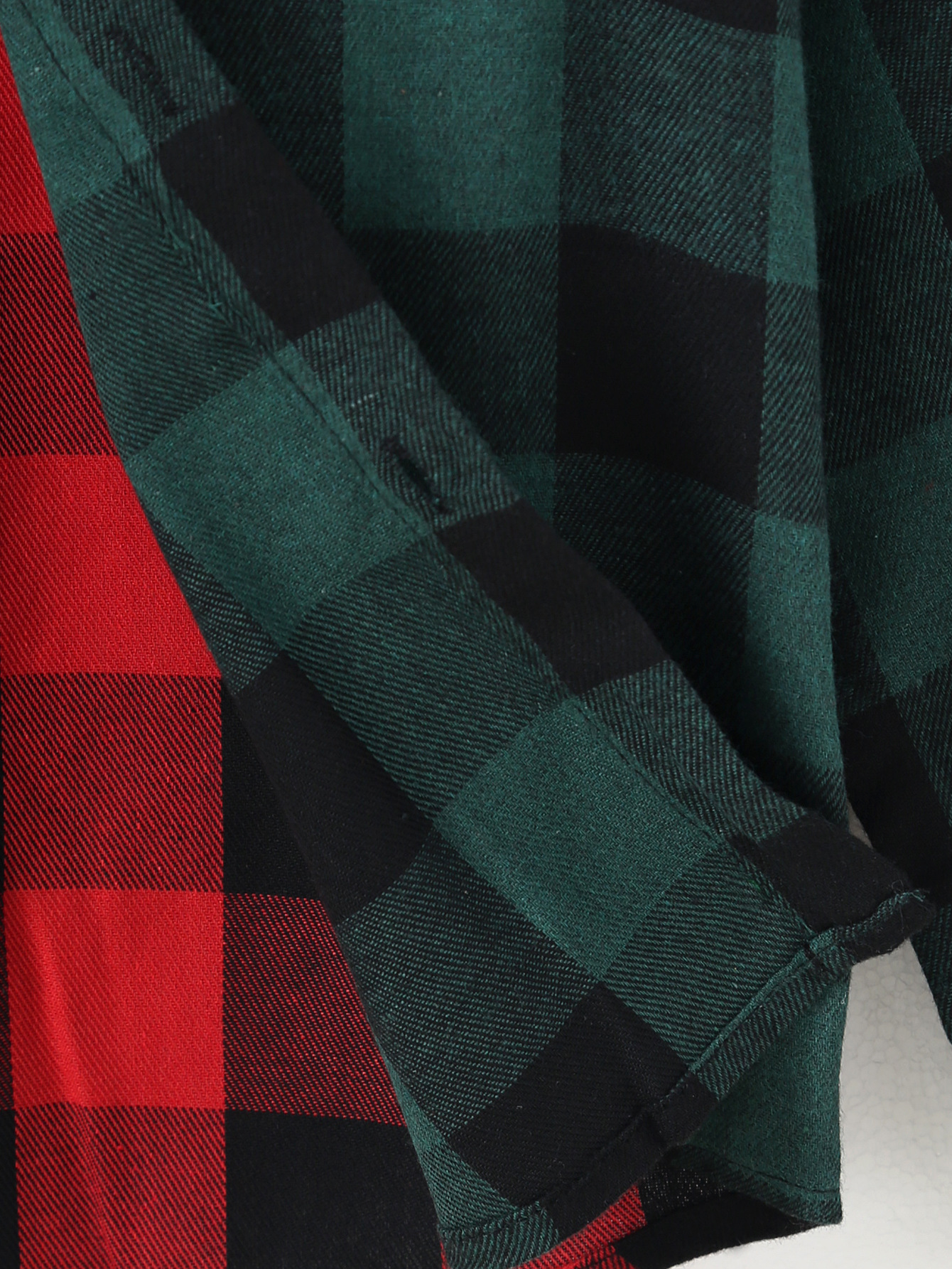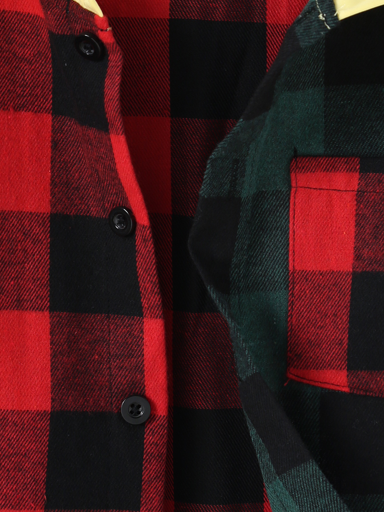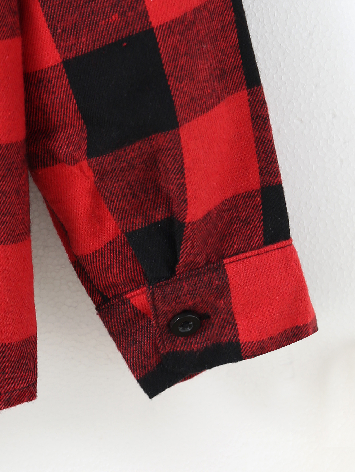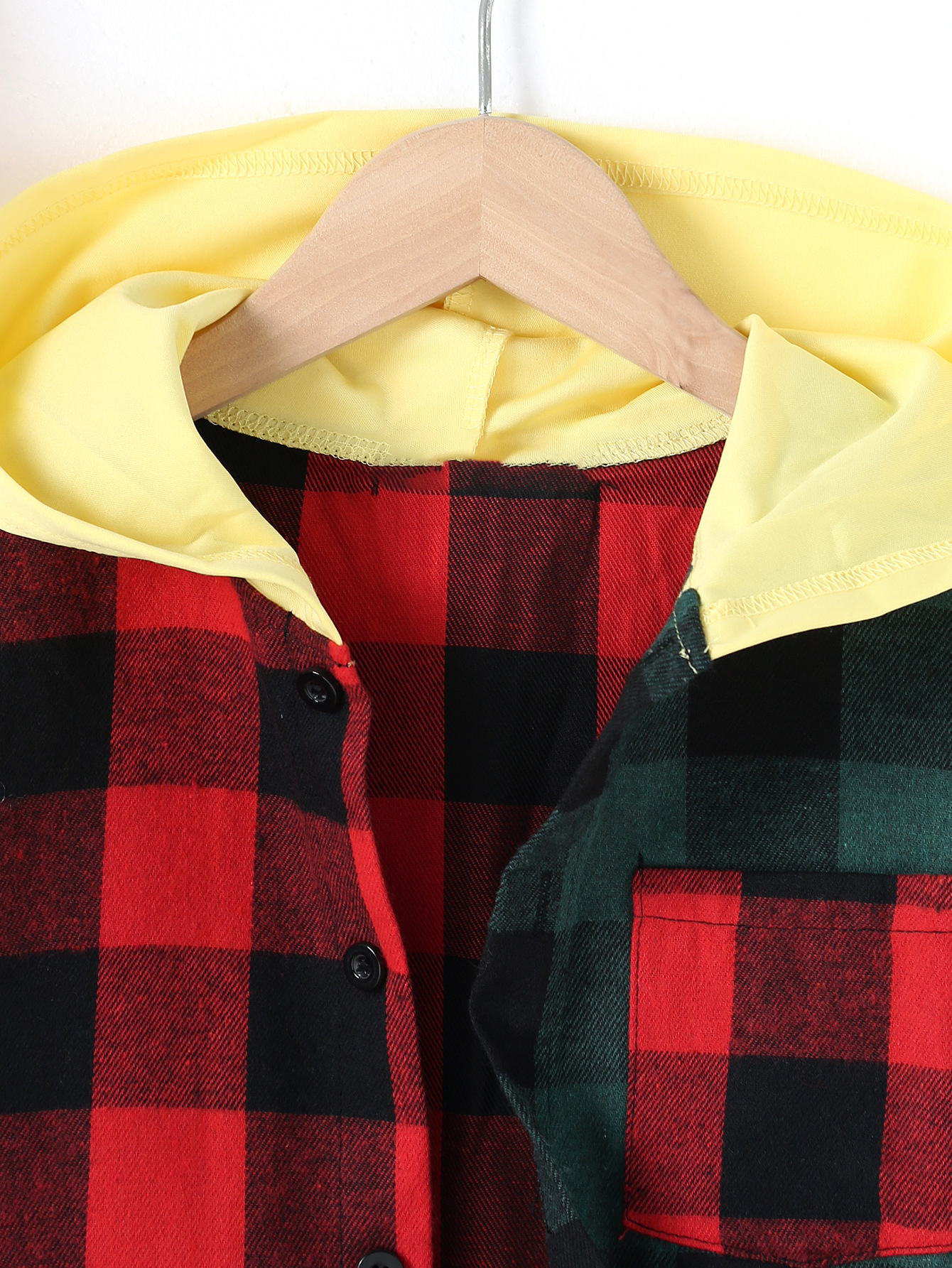 대형 격자 무늬 포켓 장식이있는 대형 소년을위한 대외 무역 새로운 가을 후드 셔츠 캐주얼 후드 컬러 블록 격자 무늬 셔츠스토어 가기