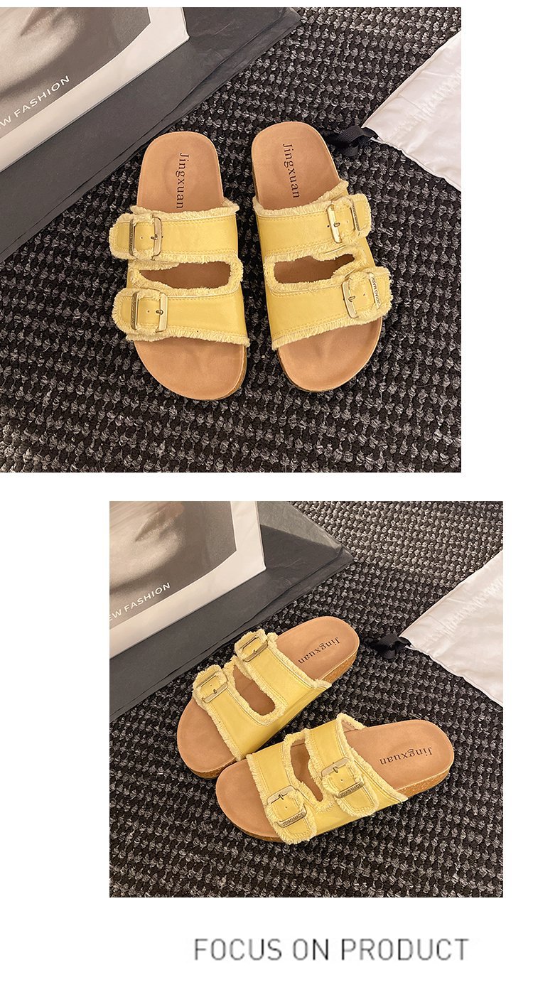 두꺼운 바닥 한 단어 Buccan 슬리퍼 여자 2025 년 여름 새로운 올 매치 캐주얼 해변 게으른 샌들