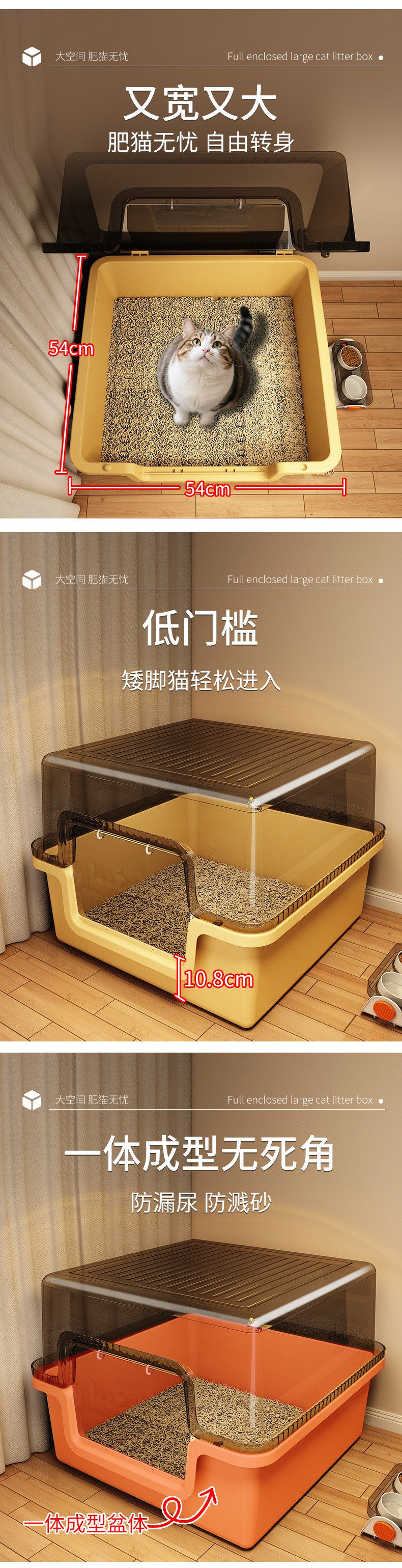 저턱 고양이 화장실, 초대형, 물 튀김 방지, 완전 밀폐형, 냄새 방지 고양이 화장실, 새끼 고양이, 낮은 발 고양이, 새로운 스타일스토어 가기