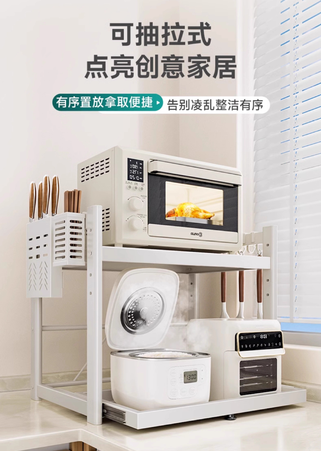 주방 수납 선반 전자 레인지 수납 선반 밥솥 오븐 가정용 풀 아웃 수납 선반 전기 제품 조리대 선반스토어 가기