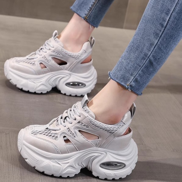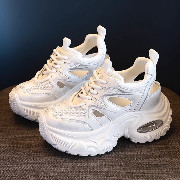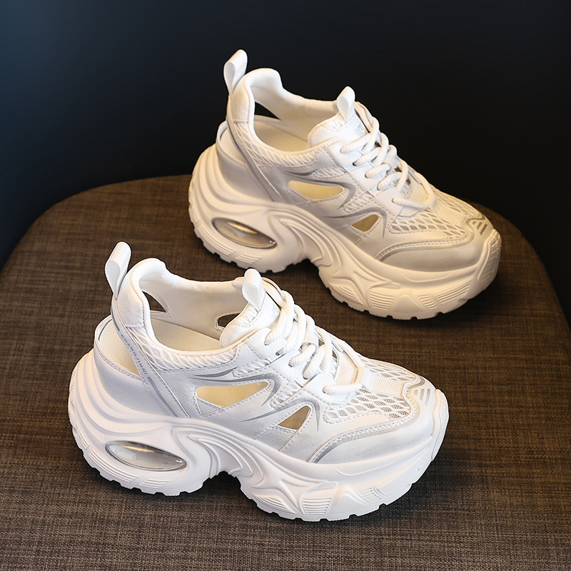 2025 새로운 여름 중공 두꺼운 밑창 높이 증가 아빠 신발 여성 다목적 캐주얼 스포츠 신발 통기성 메쉬 운동화