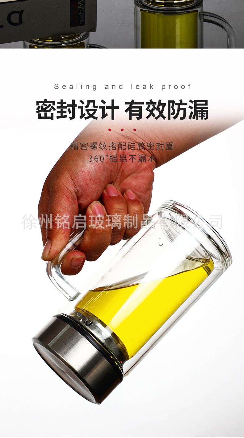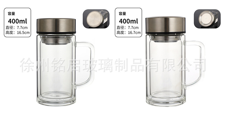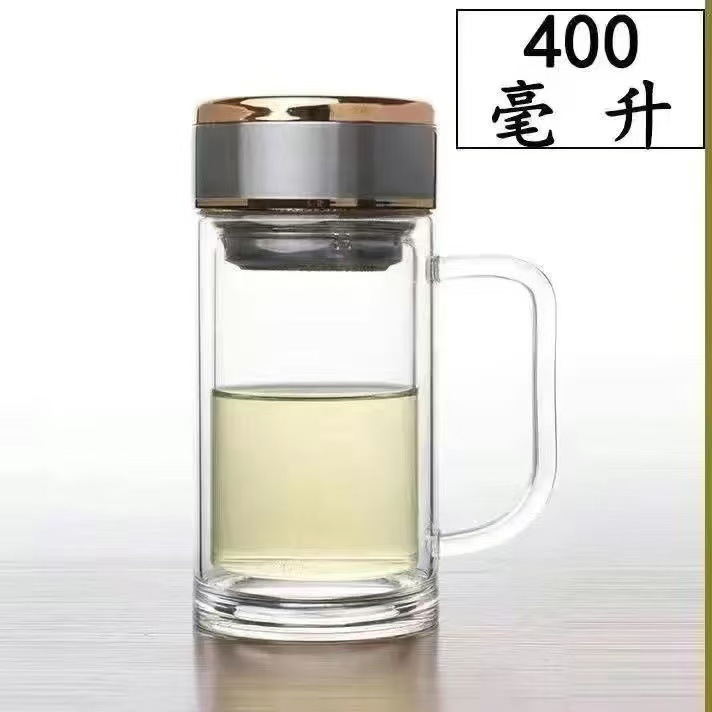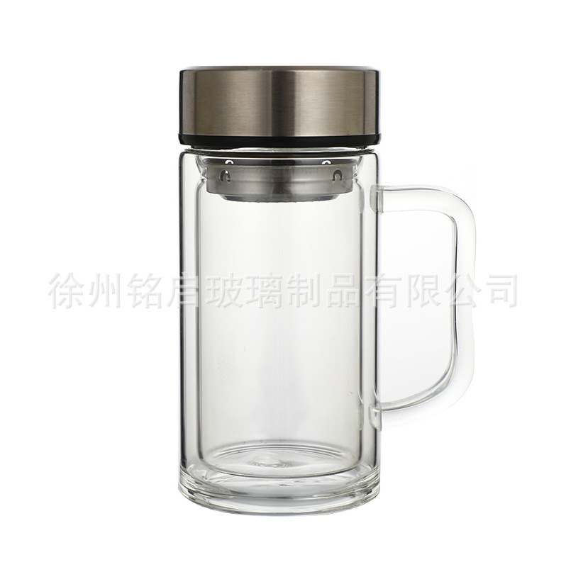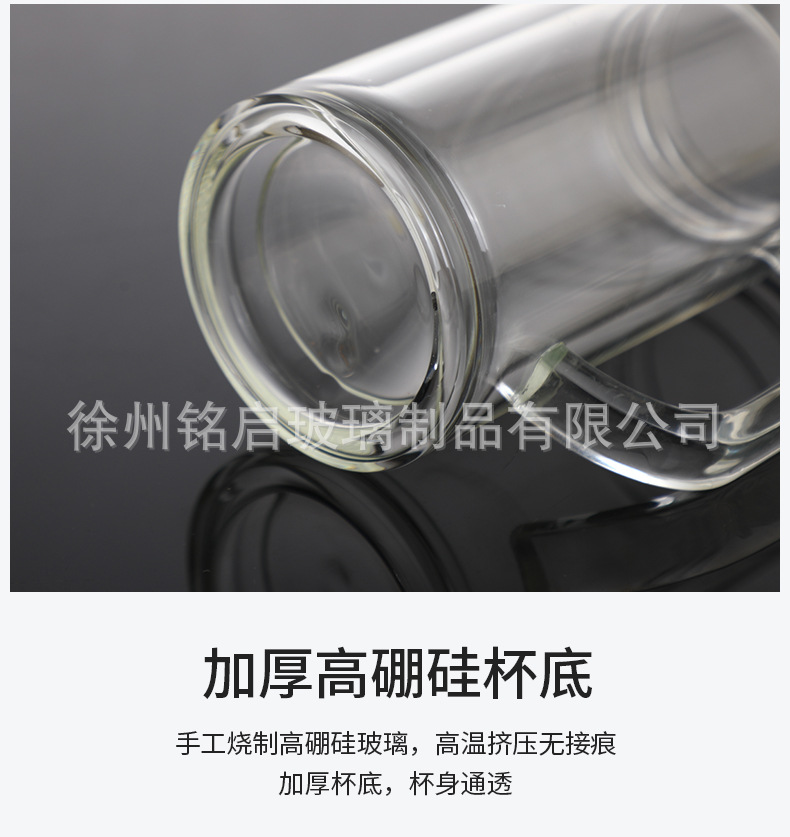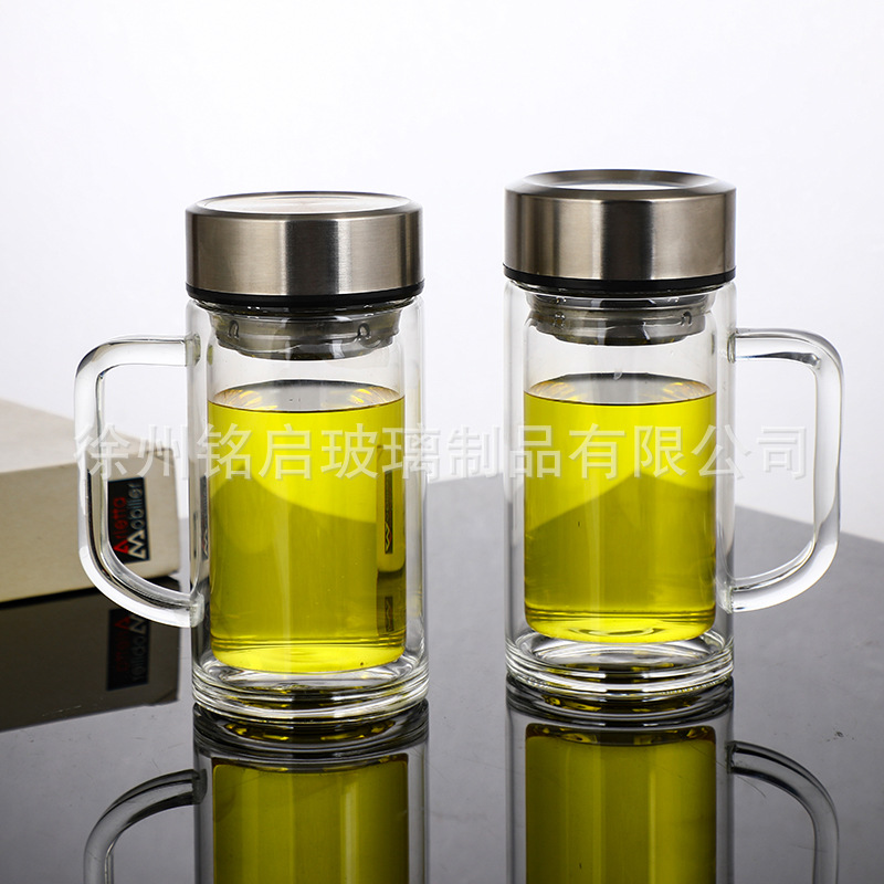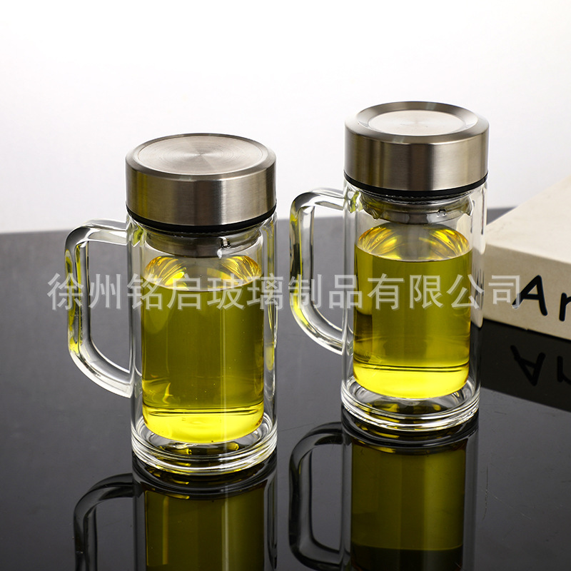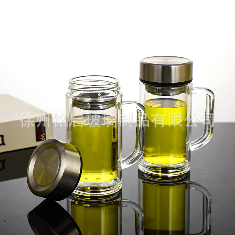 손잡이가있는 사무실 물 컵 더블 레이어 고 붕규산 유리 비즈니스 투명 사무실 차 컵 도매