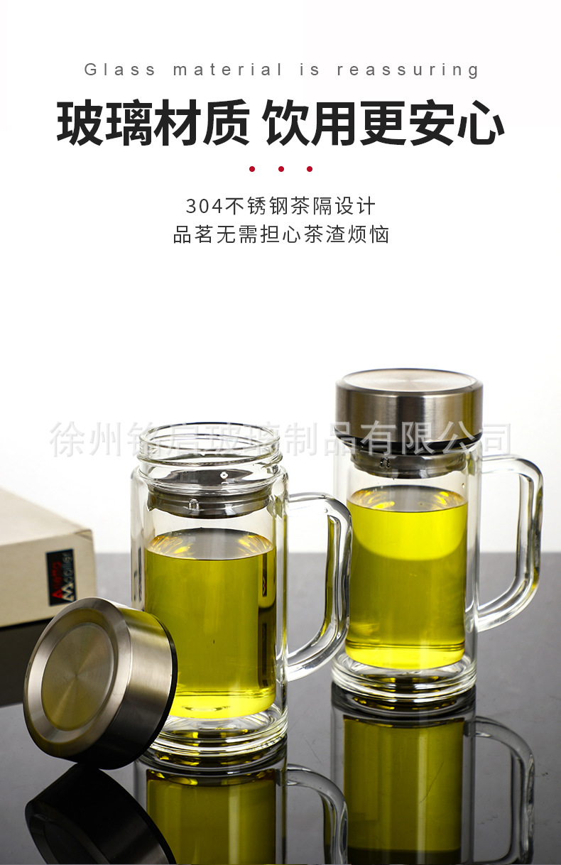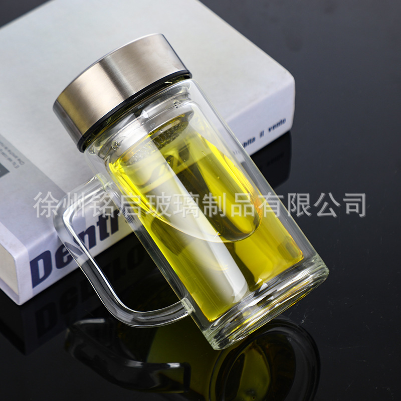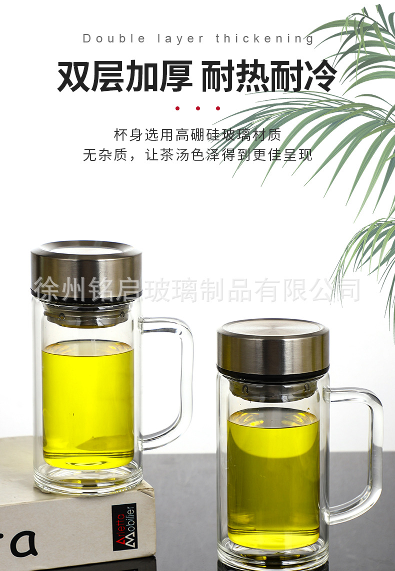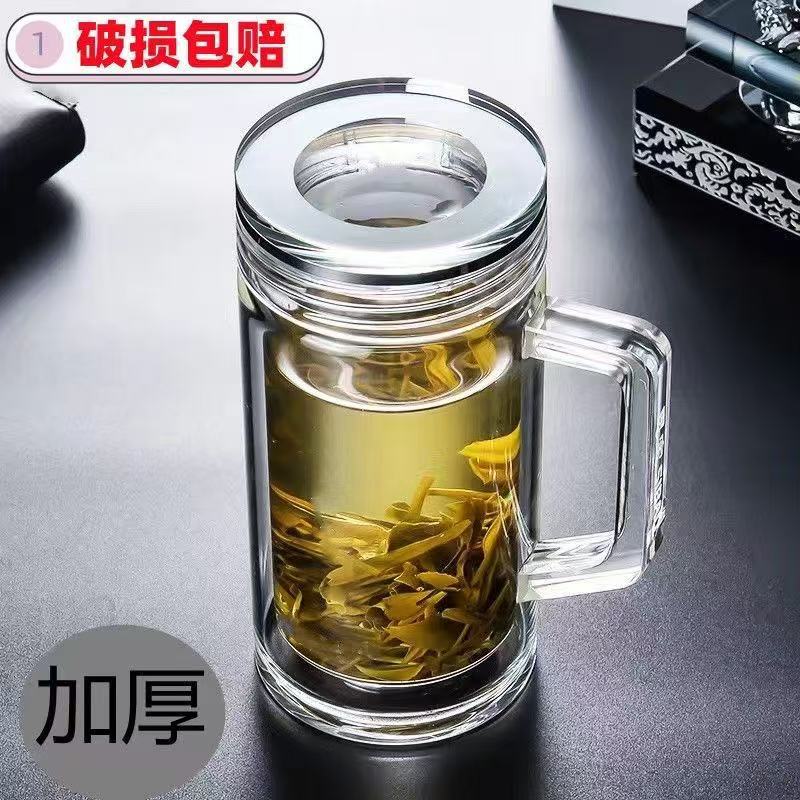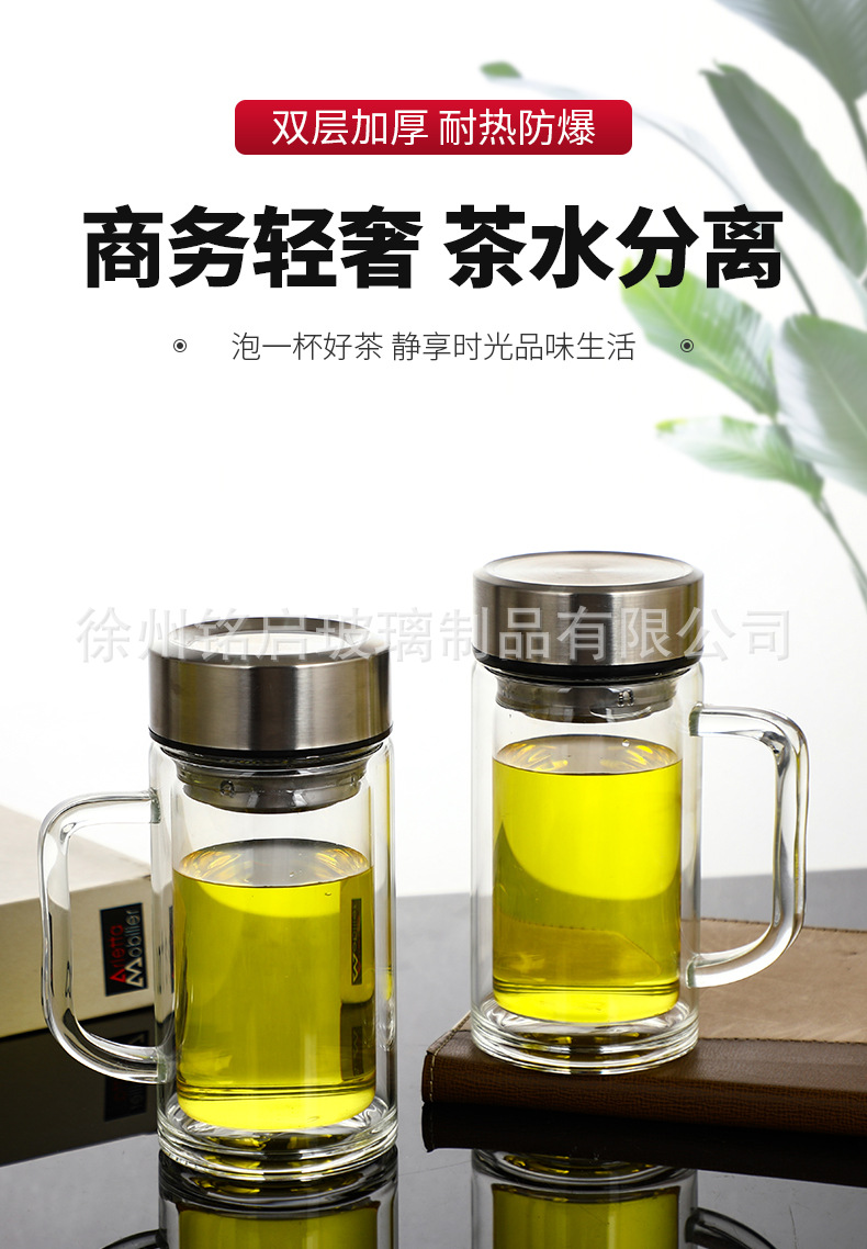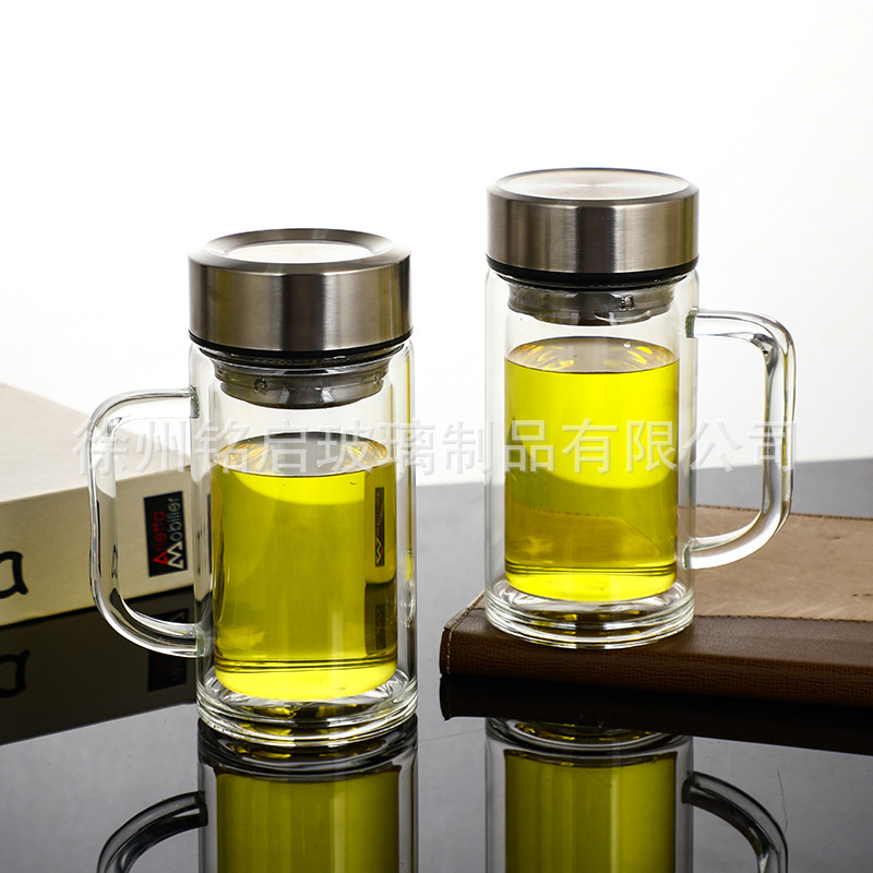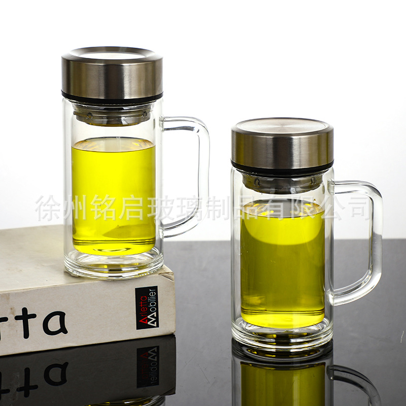 손잡이가있는 사무실 물 컵 더블 레이어 고 붕규산 유리 비즈니스 투명 사무실 차 컵 도매스토어 가기