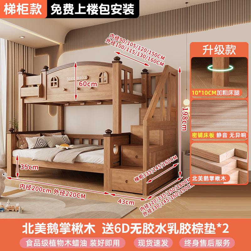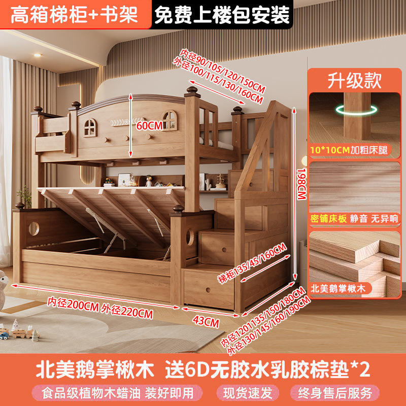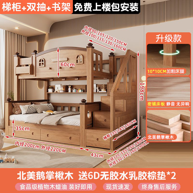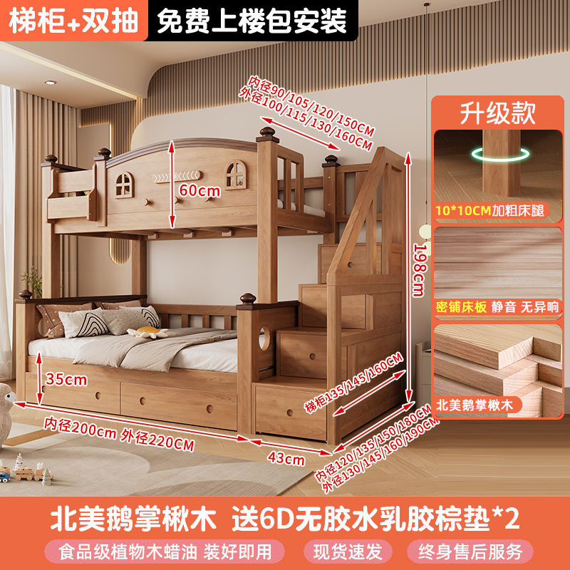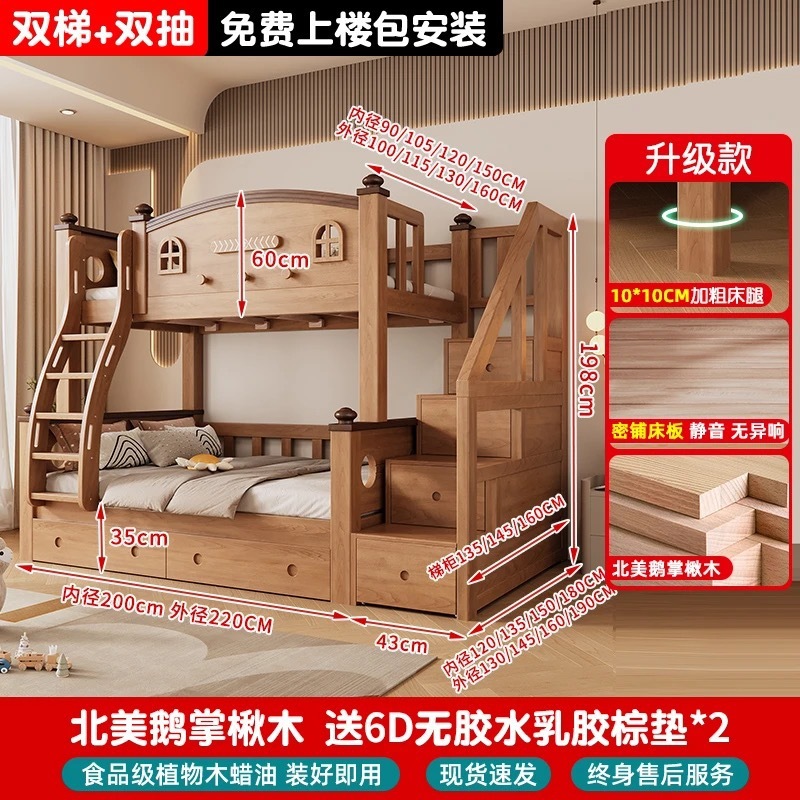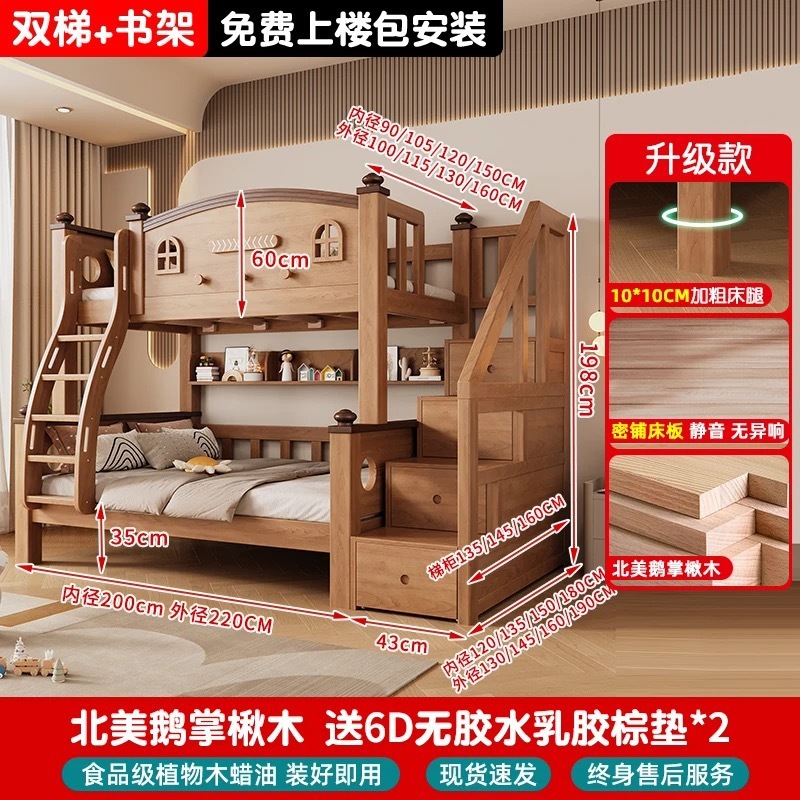 모든 단단한 나무 단풍나무 어린이 이층 침대 다기능 높고 낮은 이층 침대스토어 가기
