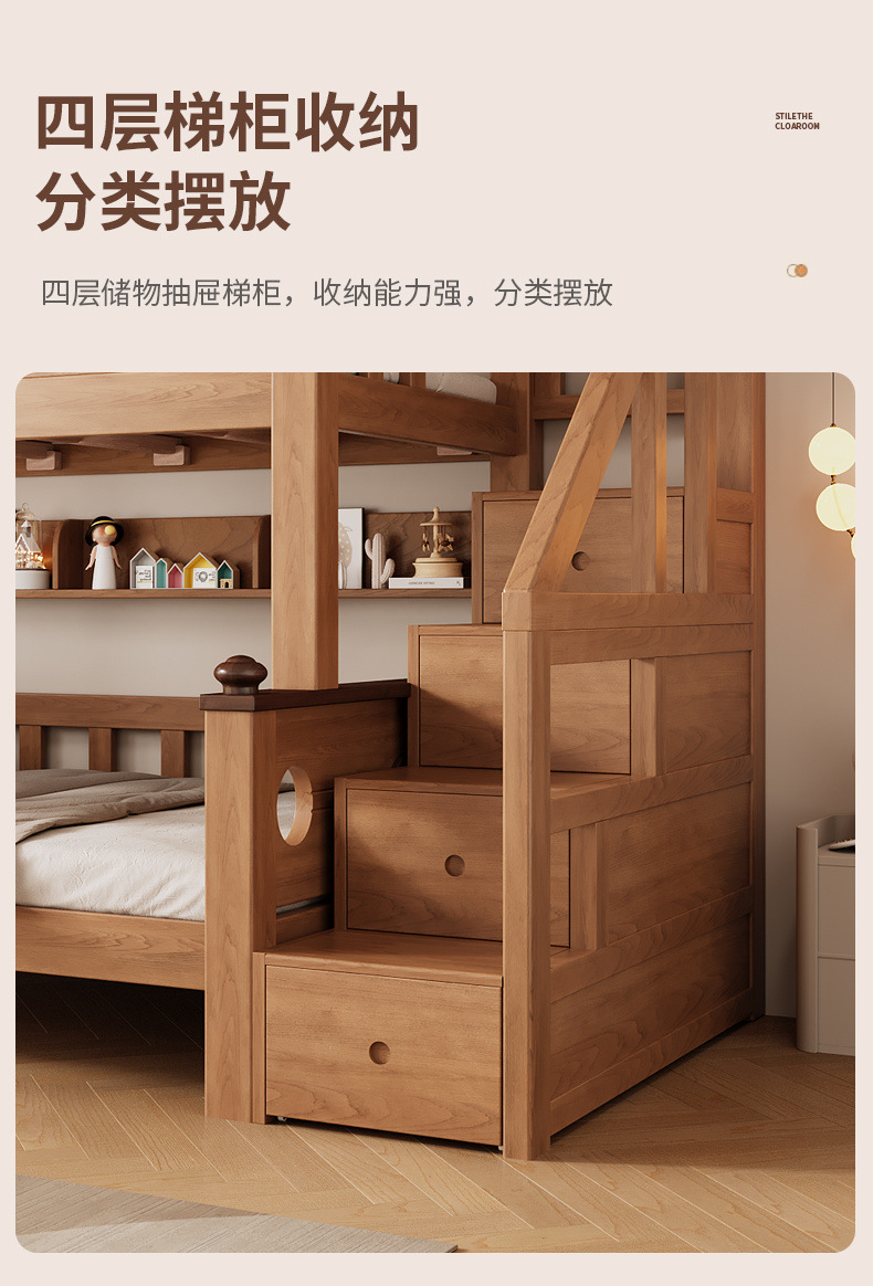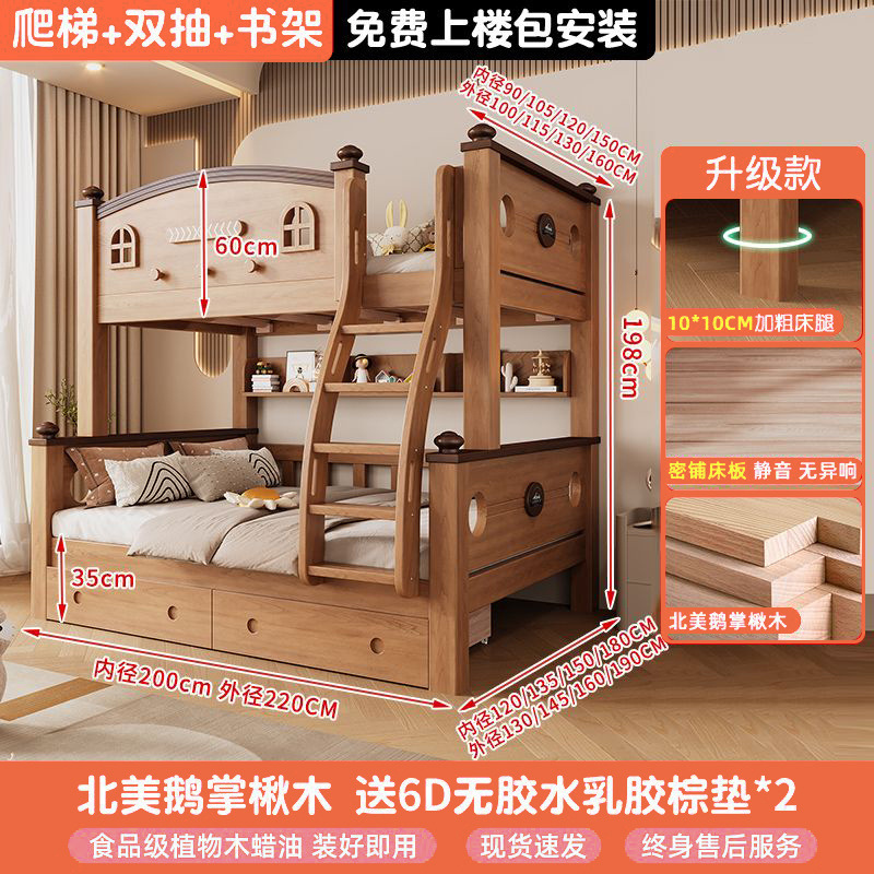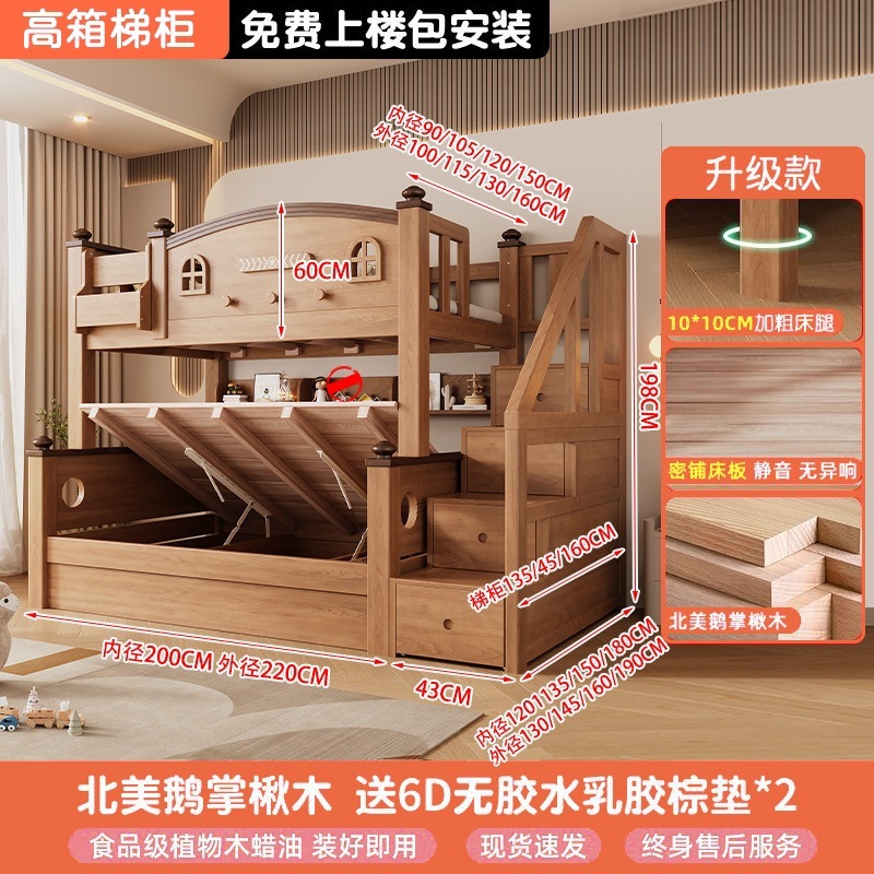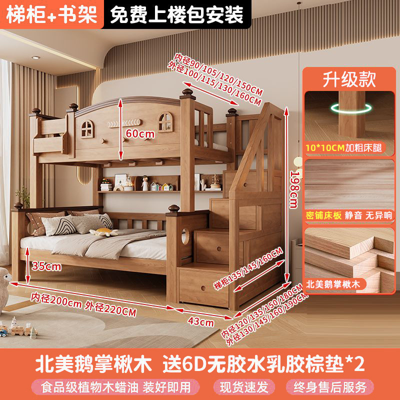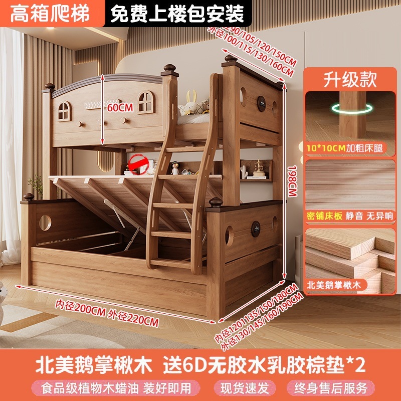 모든 단단한 나무 단풍나무 어린이 이층 침대 다기능 높고 낮은 이층 침대스토어 가기