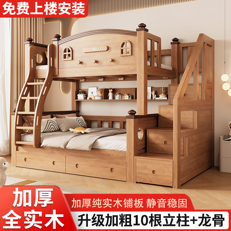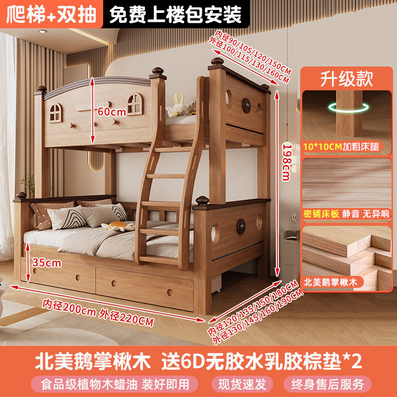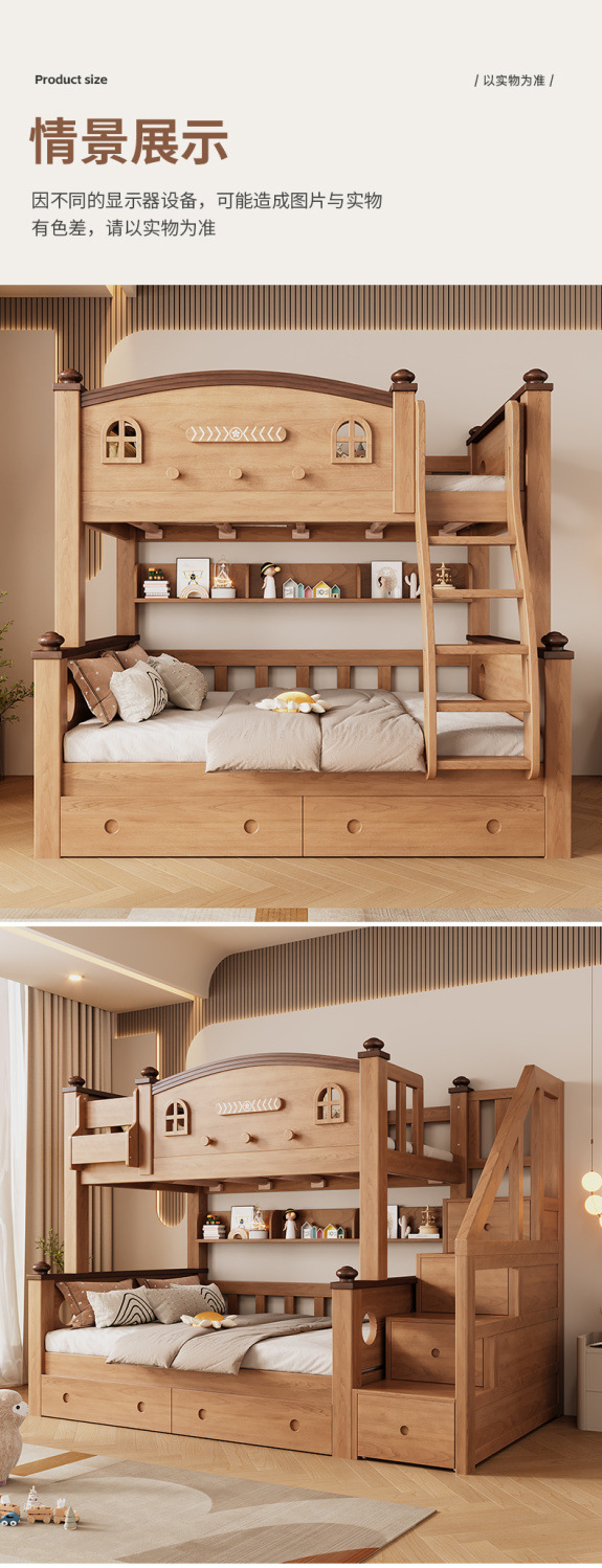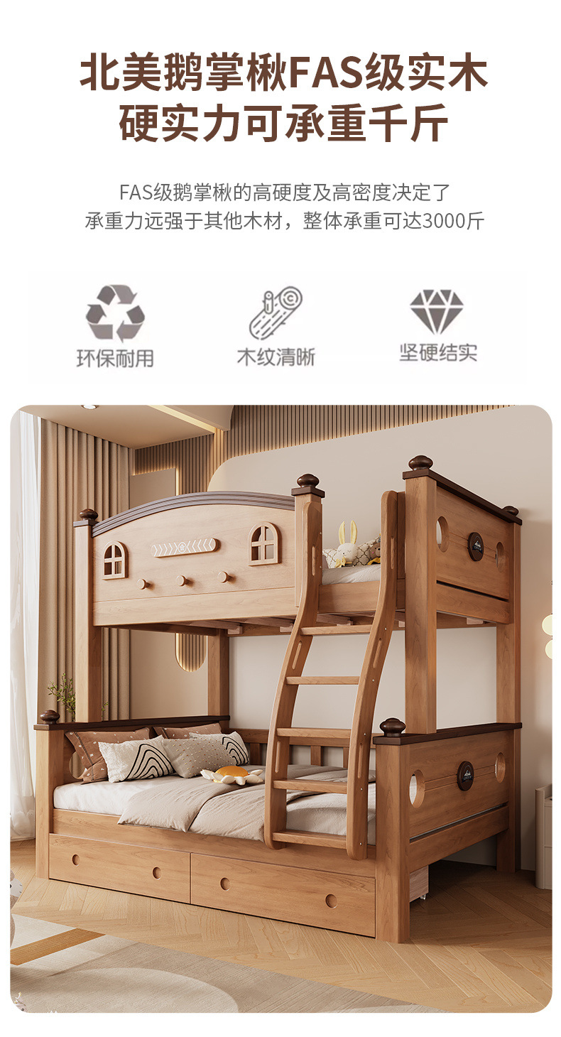 모든 단단한 나무 단풍나무 어린이 이층 침대 다기능 높고 낮은 이층 침대
