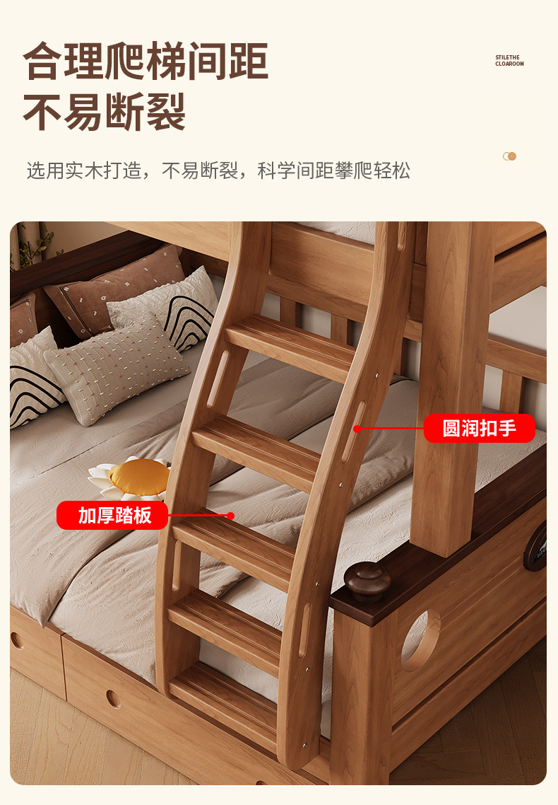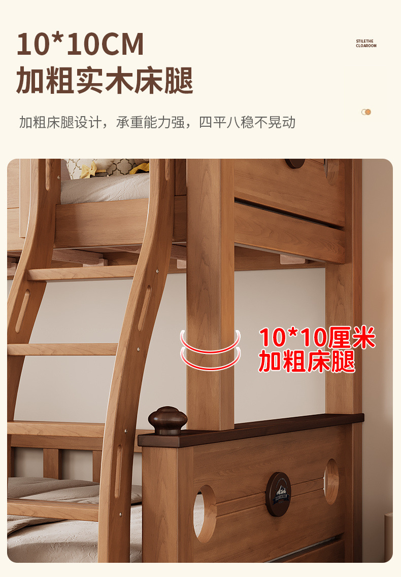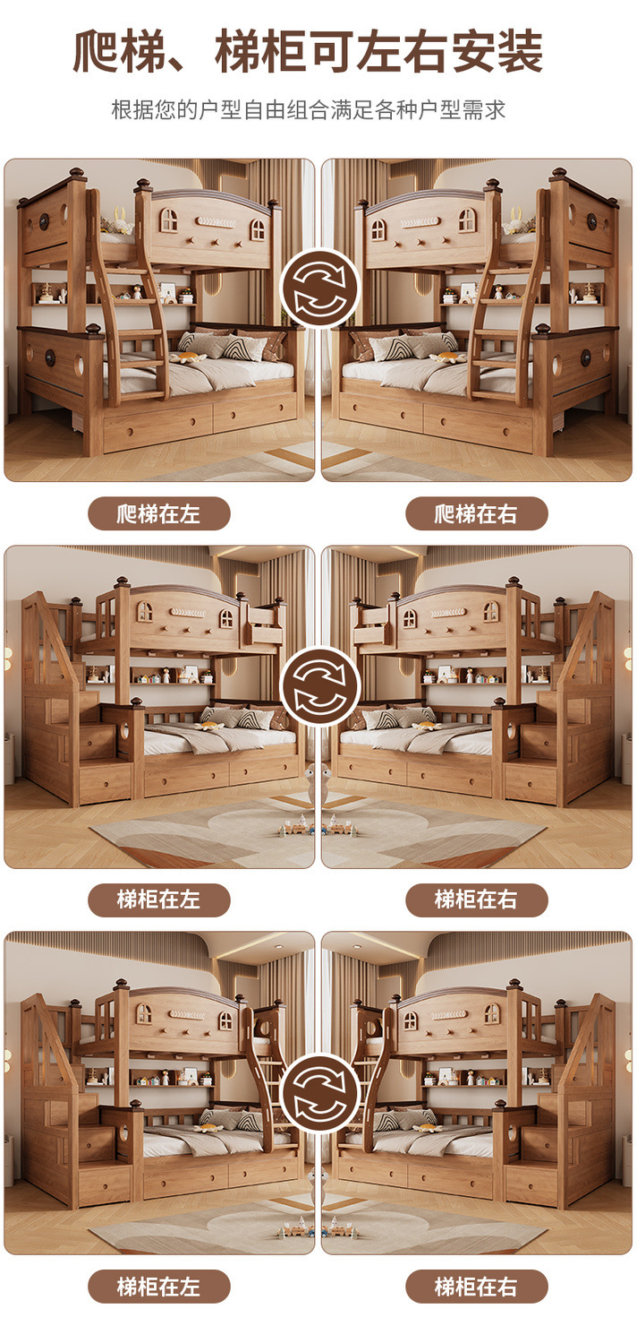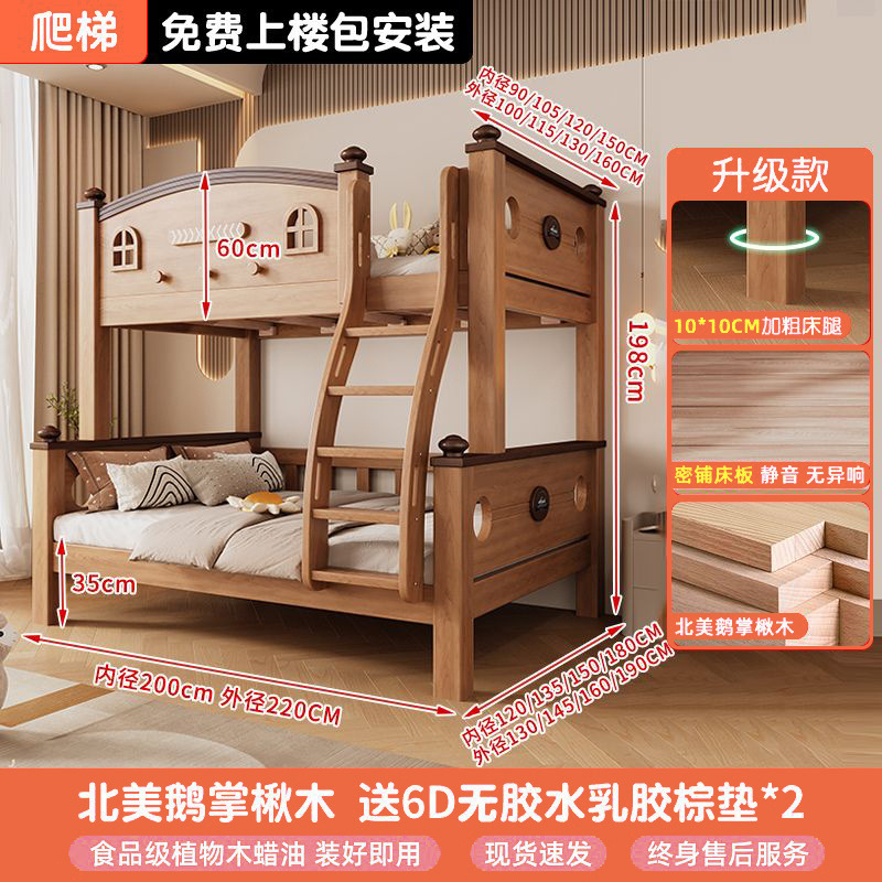 모든 단단한 나무 단풍나무 어린이 이층 침대 다기능 높고 낮은 이층 침대