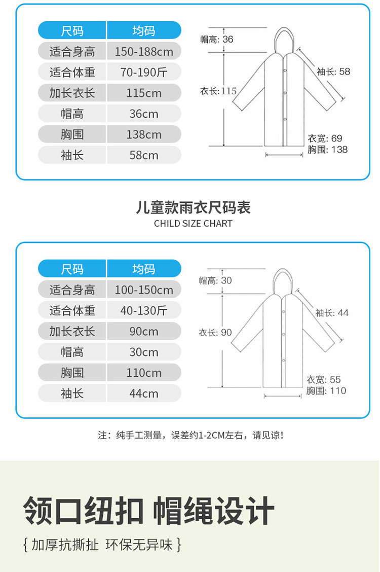 제조업체 비옷 도매 두꺼운 일회용 EVA 세련된 야외 성인 및 어린이 여행 비옷 및 판초