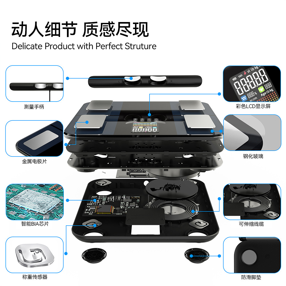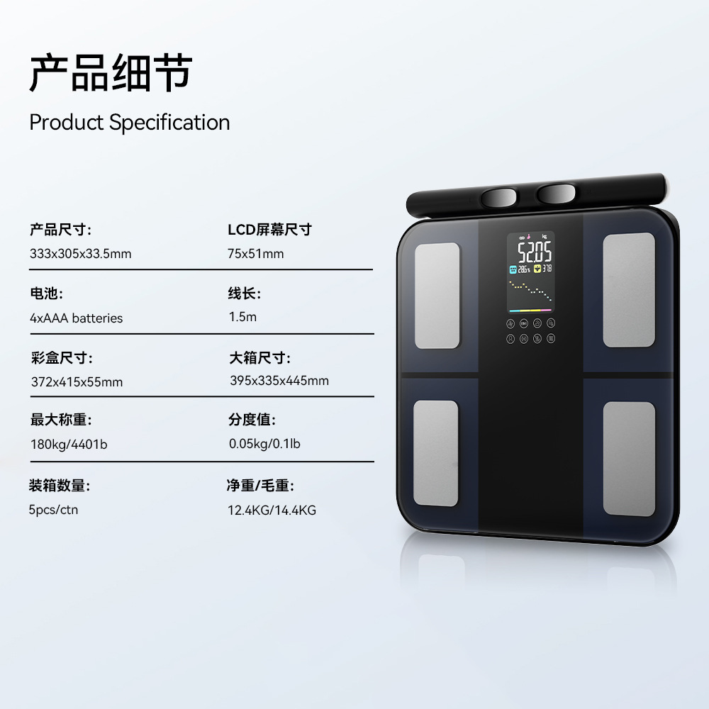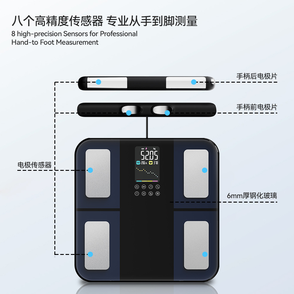 국경 간 전문 8 전극 체지방 측정기 스마트 피트니스 스포츠 체중계 APP 지방 측정 블루투스 체지방 측정기스토어 가기
