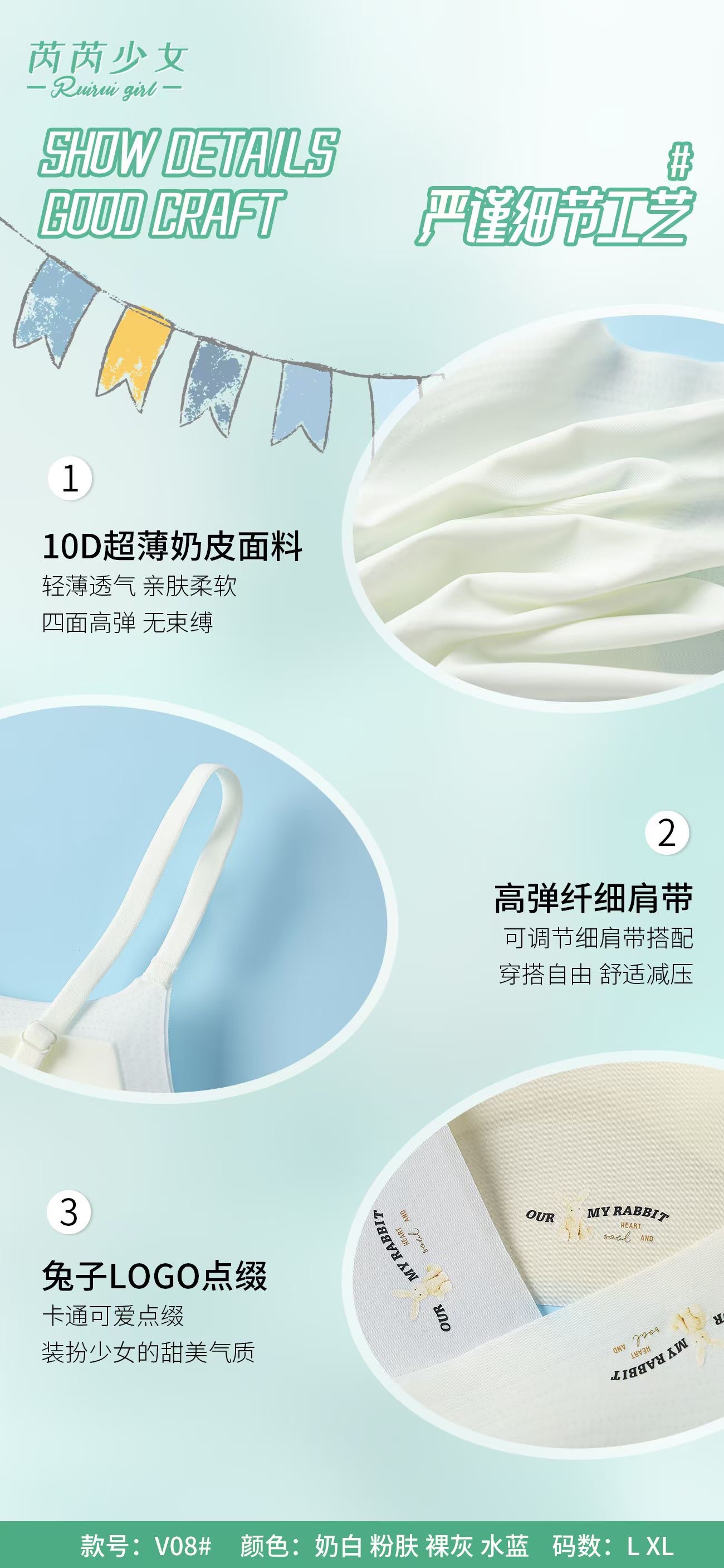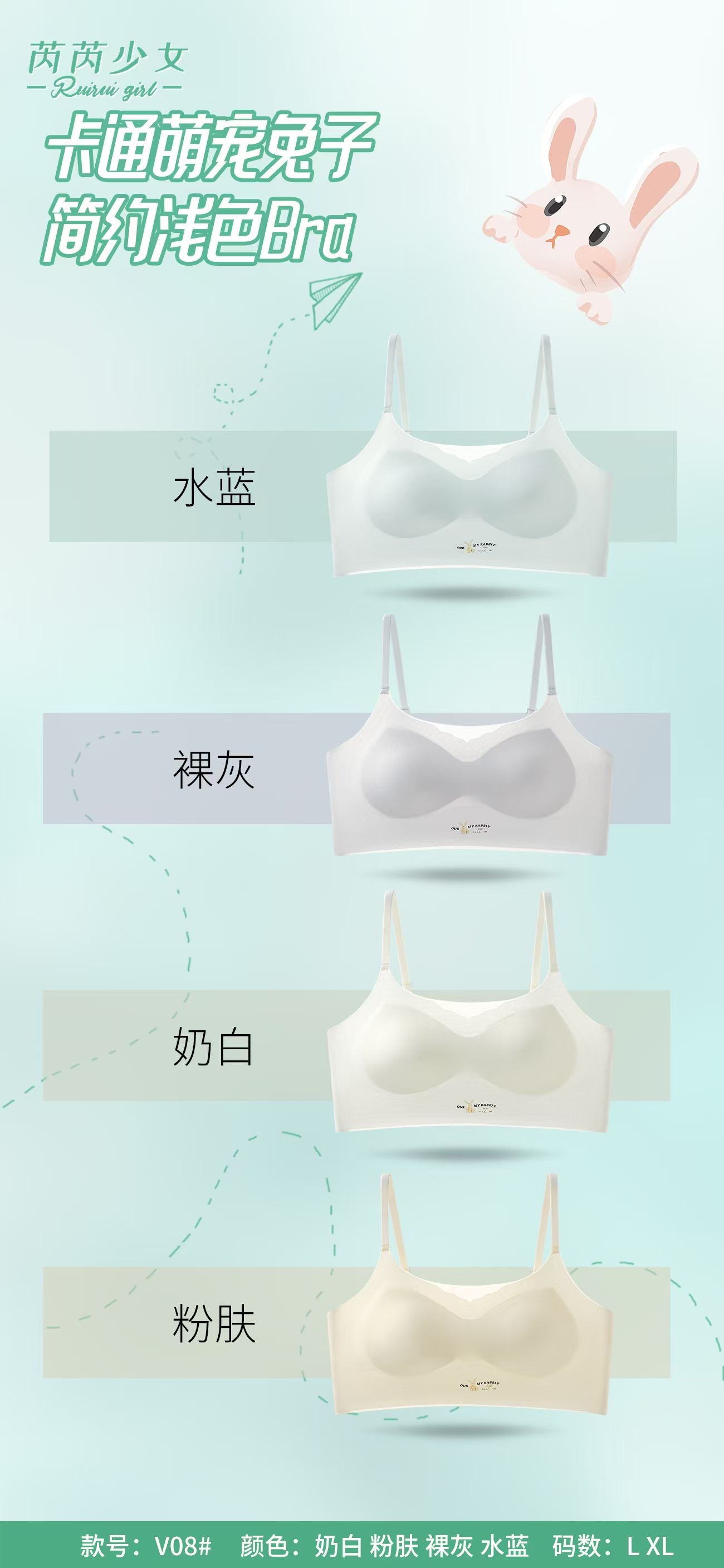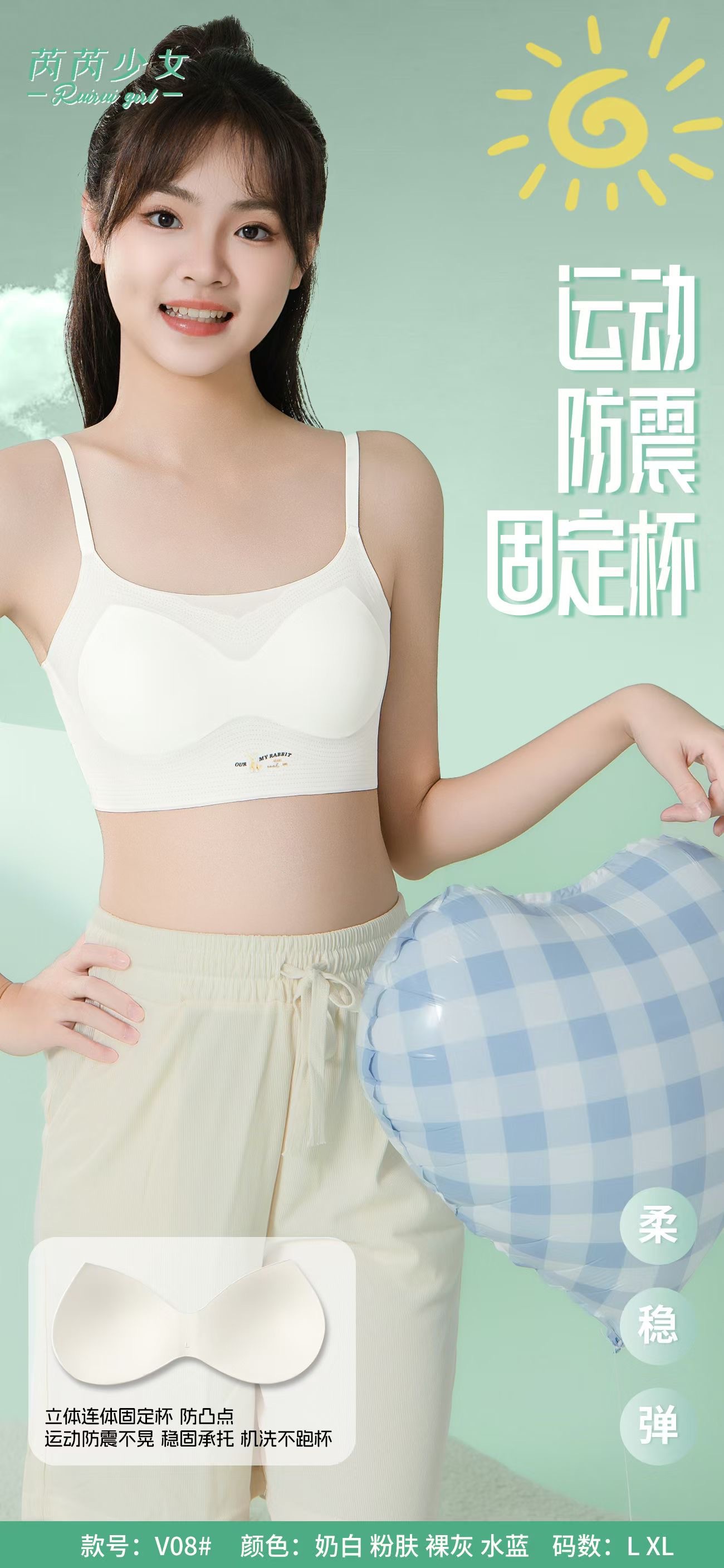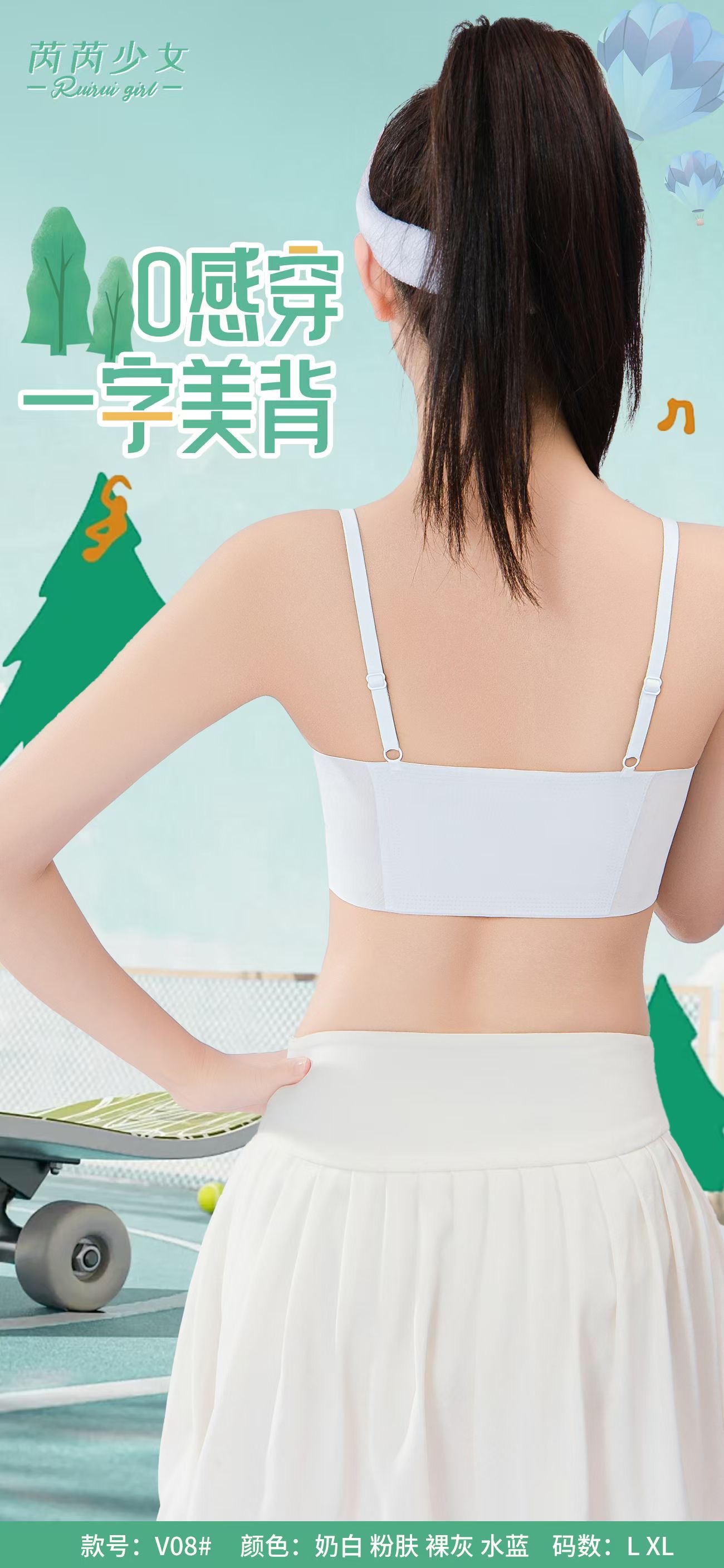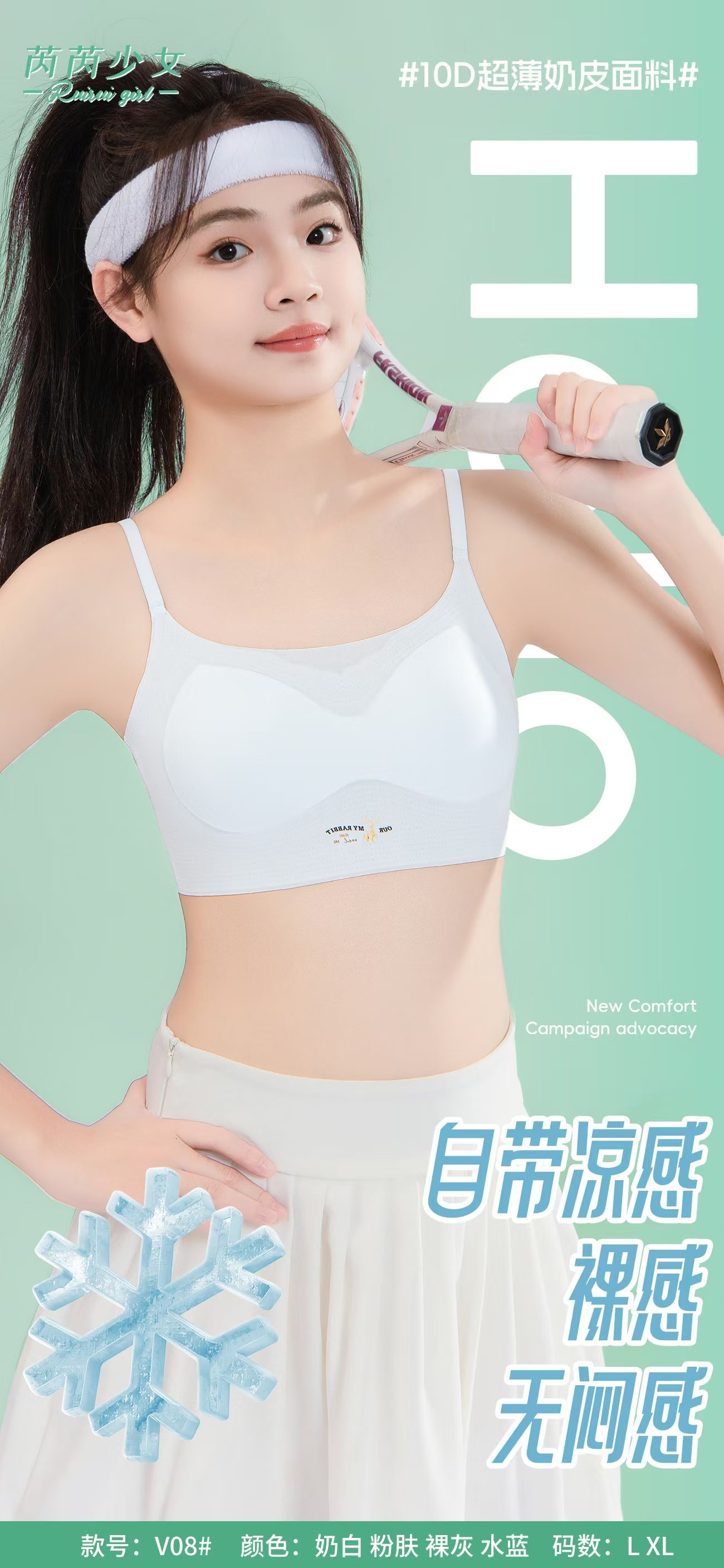 V08 여아 발달 기간 속옷 여름 얇은 스트랩 조끼 중학생 및 고등학생 원활한 튜브 탑 충격 방지 브라