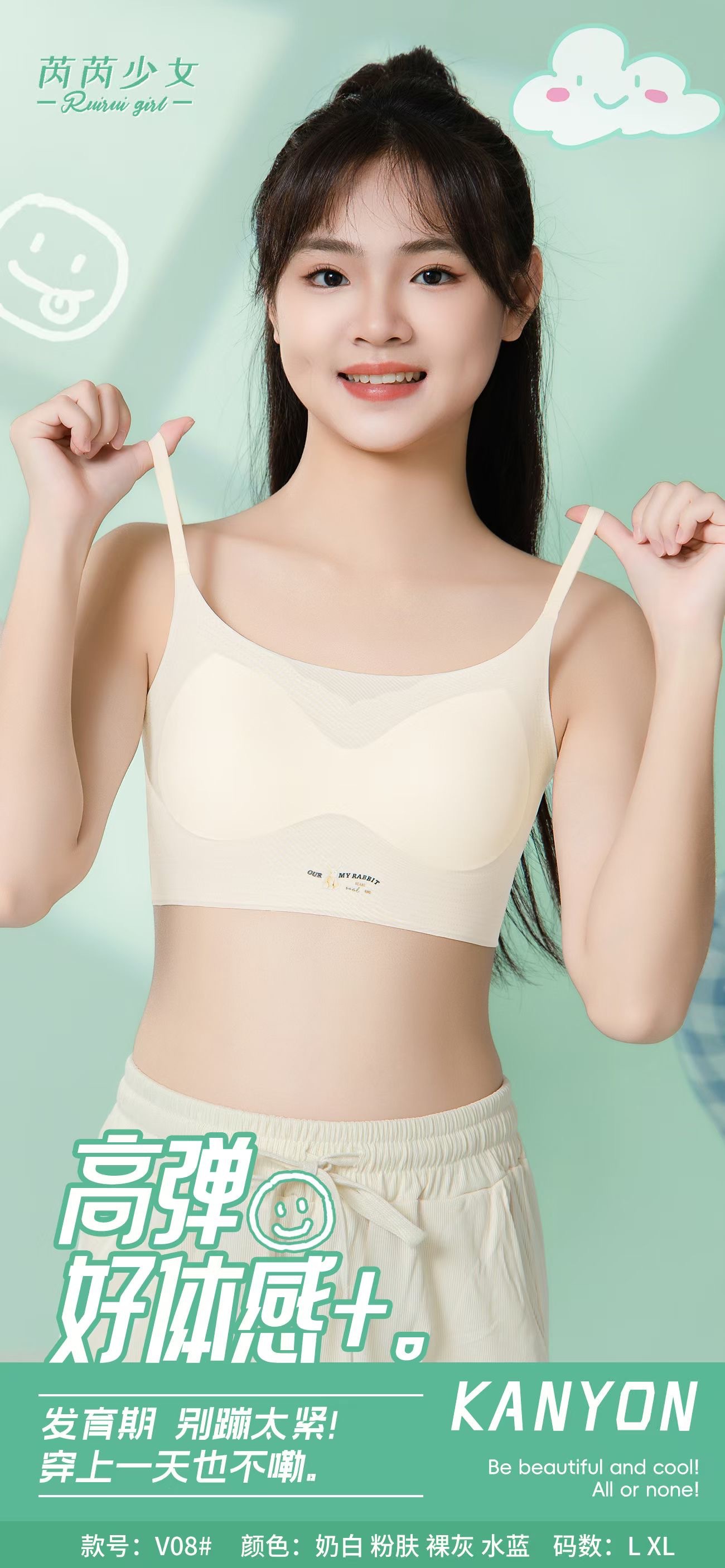 V08 여아 발달 기간 속옷 여름 얇은 스트랩 조끼 중학생 및 고등학생 원활한 튜브 탑 충격 방지 브라스토어 가기