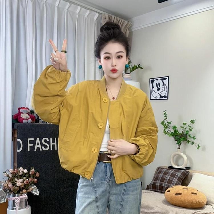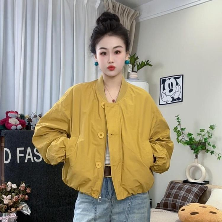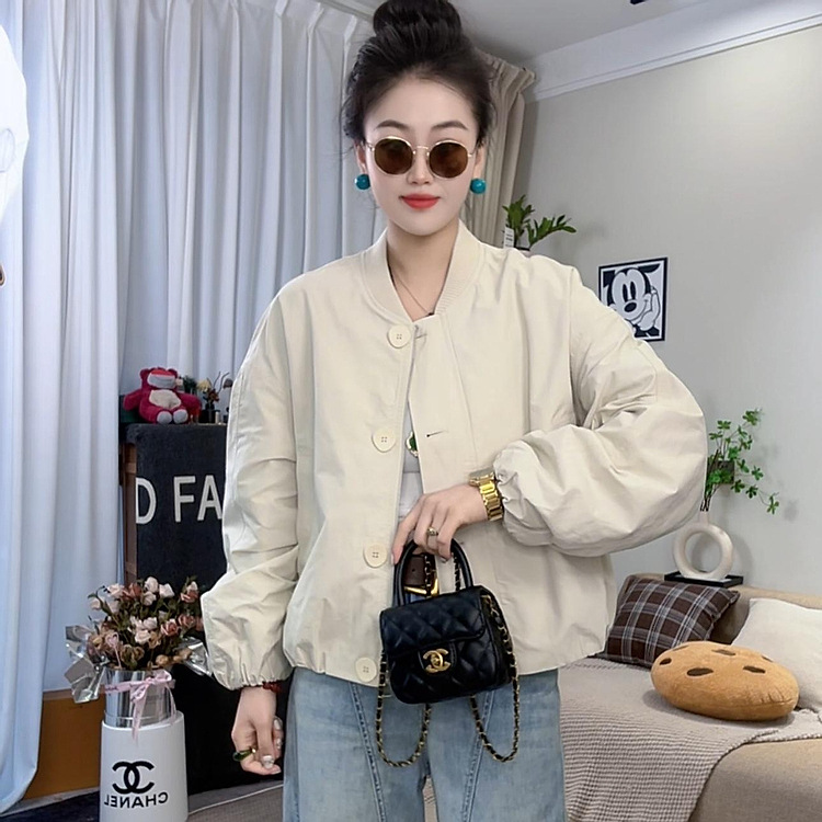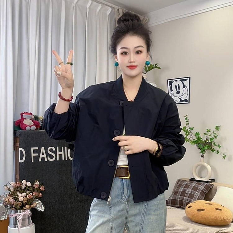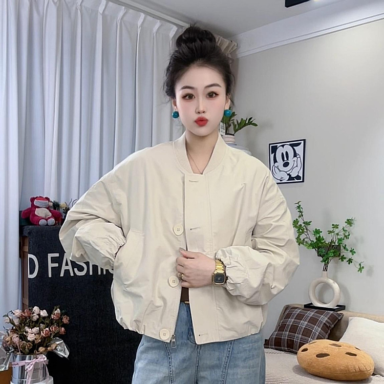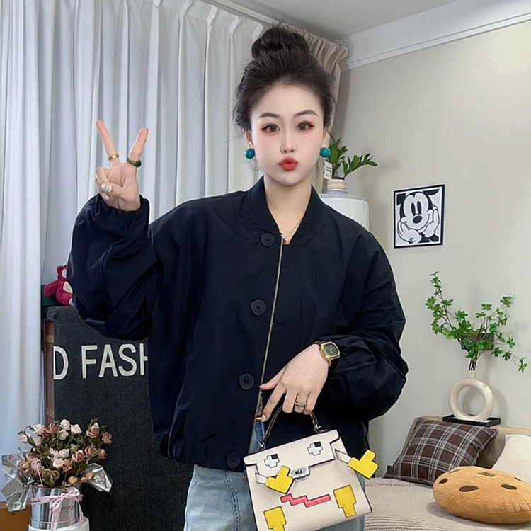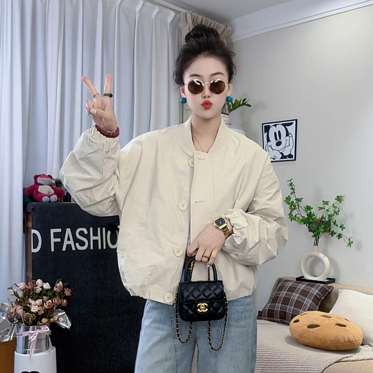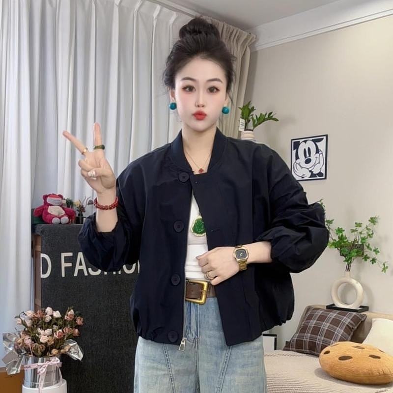 여성을위한 한국 스타일 하이 엔드 스탠드 업 칼라 재킷 2025 봄, 가을 새로운 루즈 캐주얼 짧은 슈퍼 핫 탑스토어 가기