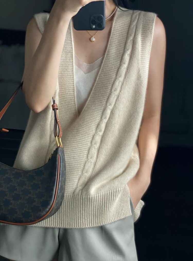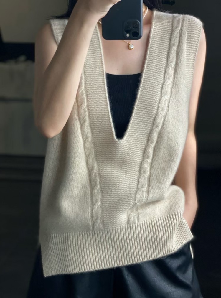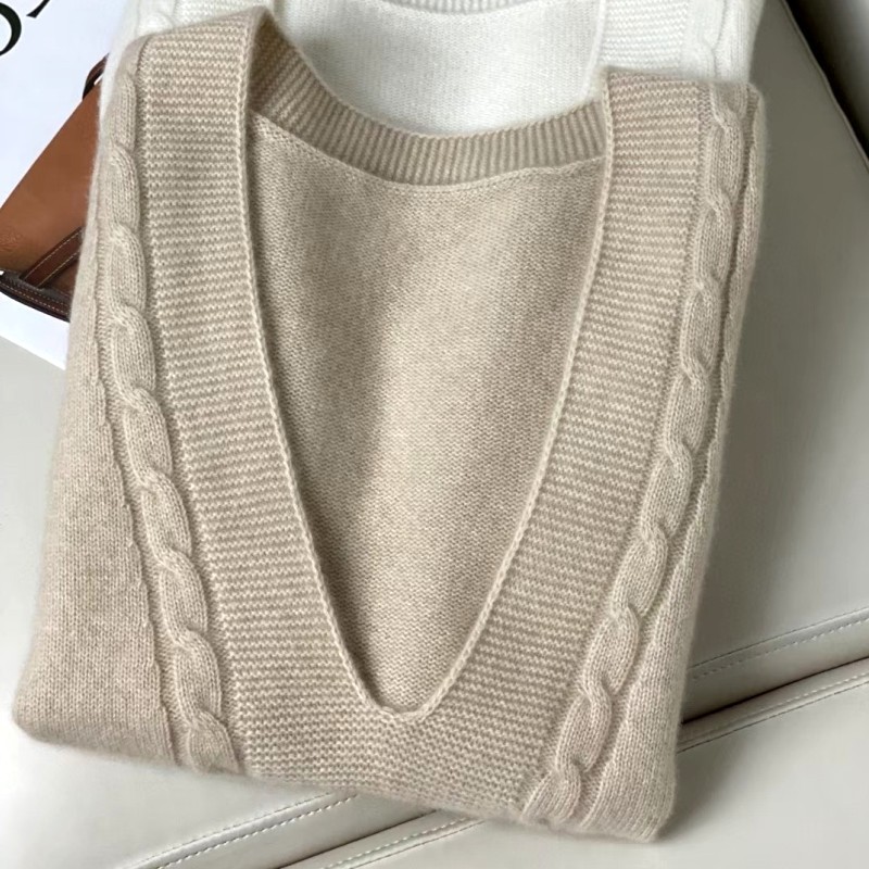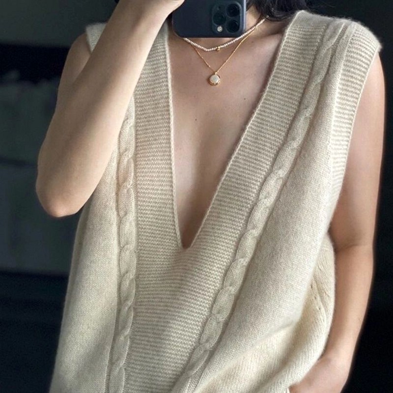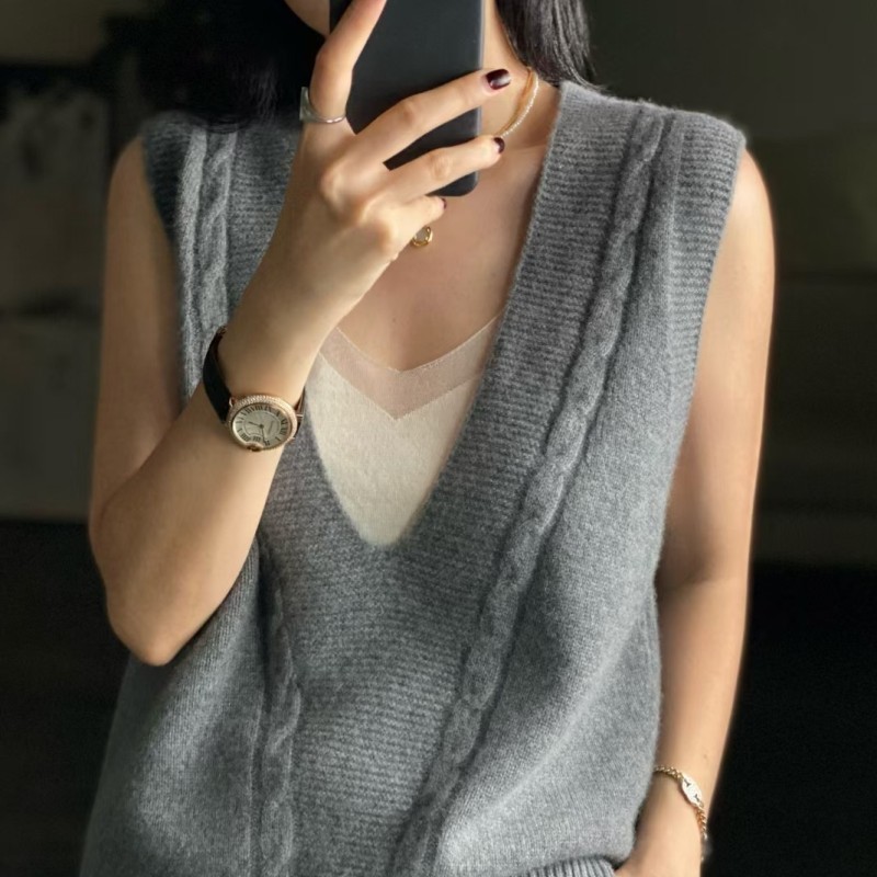 다재다능한 딥 브이넥 100 순수 울 니트 조끼 여성용 루즈 슬리밍 민소매 스웨터 조끼 솔리드 컬러 아우터스토어 가기