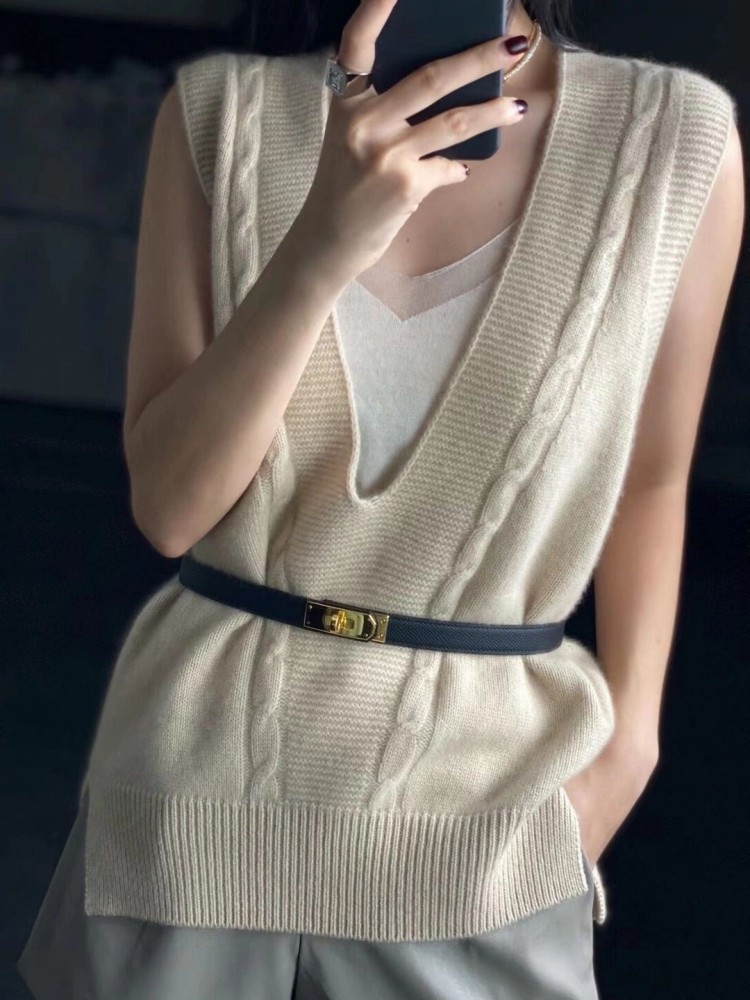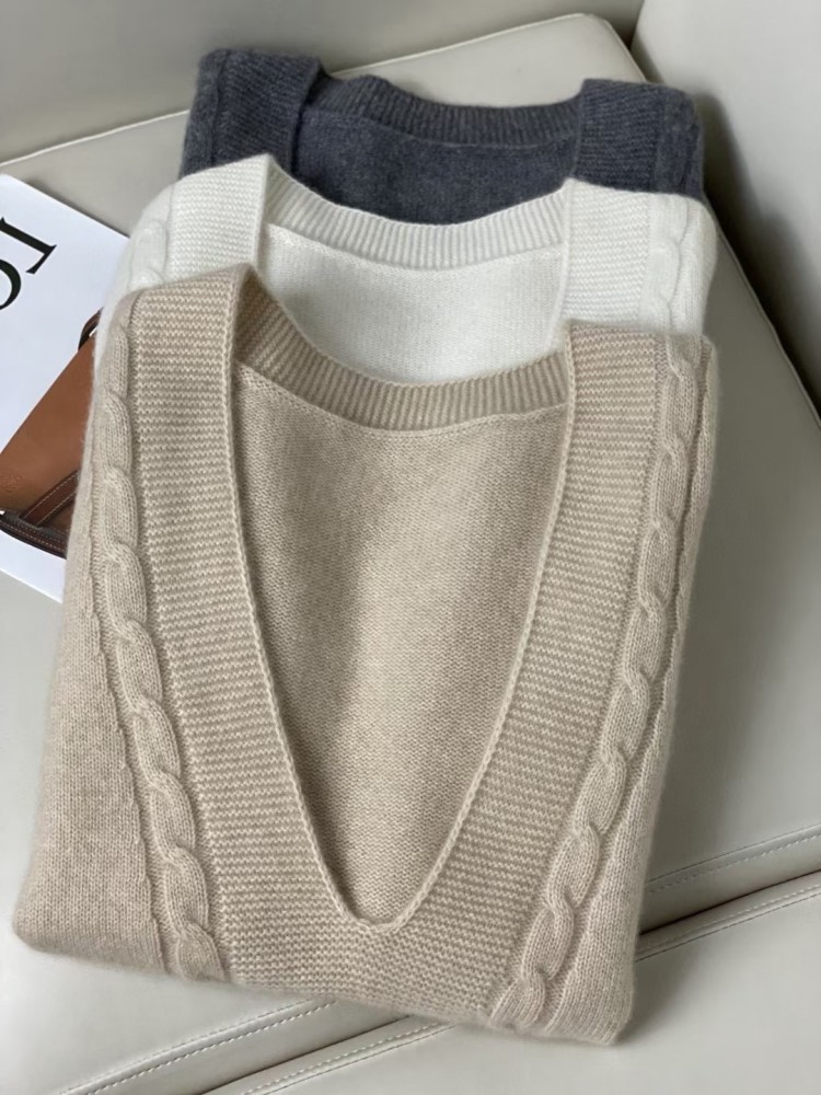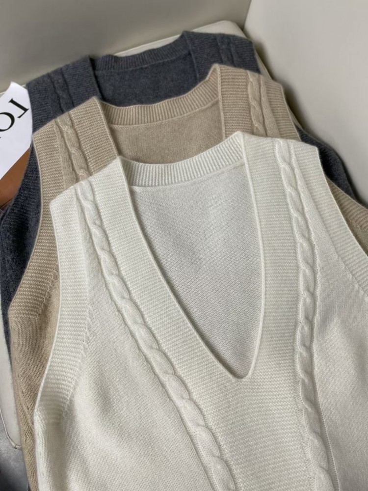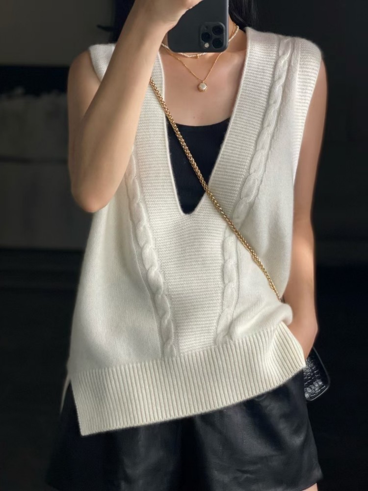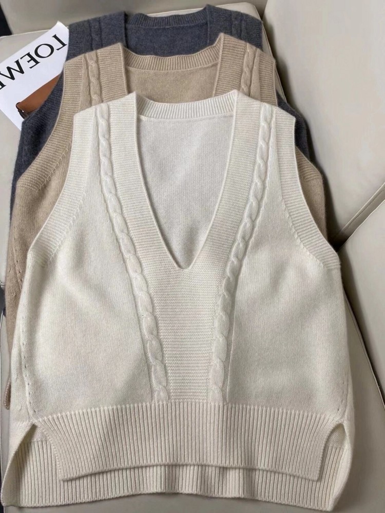 다재다능한 딥 브이넥 100 순수 울 니트 조끼 여성용 루즈 슬리밍 민소매 스웨터 조끼 솔리드 컬러 아우터스토어 가기