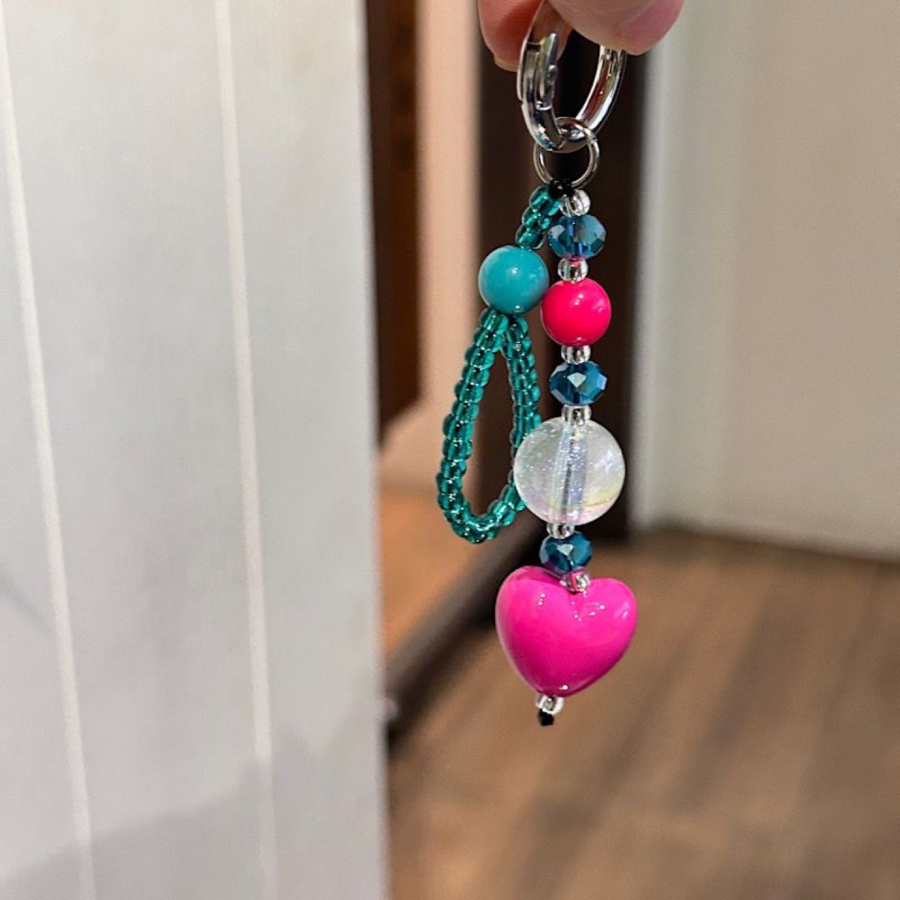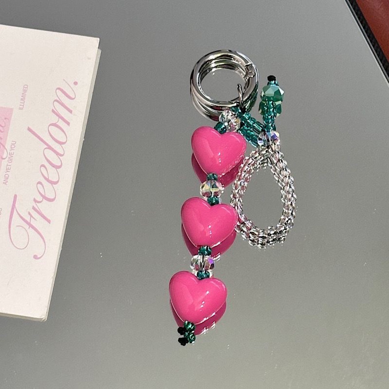 일본과 한국 도파민 컬러 3피스 러브 라이스 비즈 보우 핸드메이드 소녀 하트 펜던트 절묘한 열쇠 고리스토어 가기