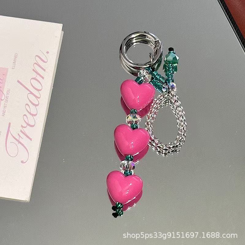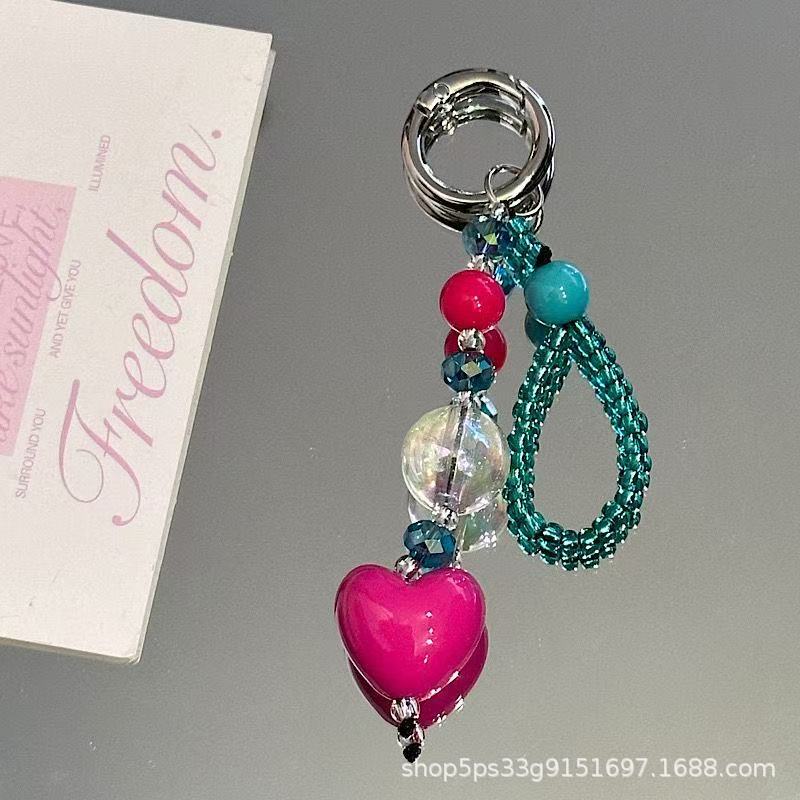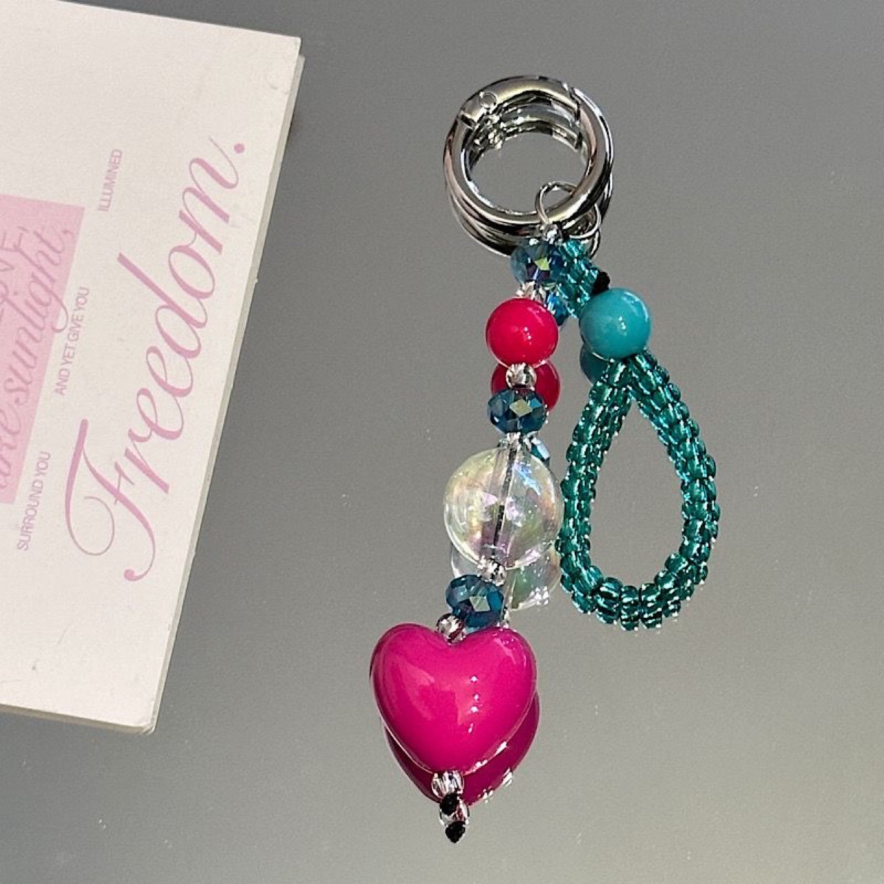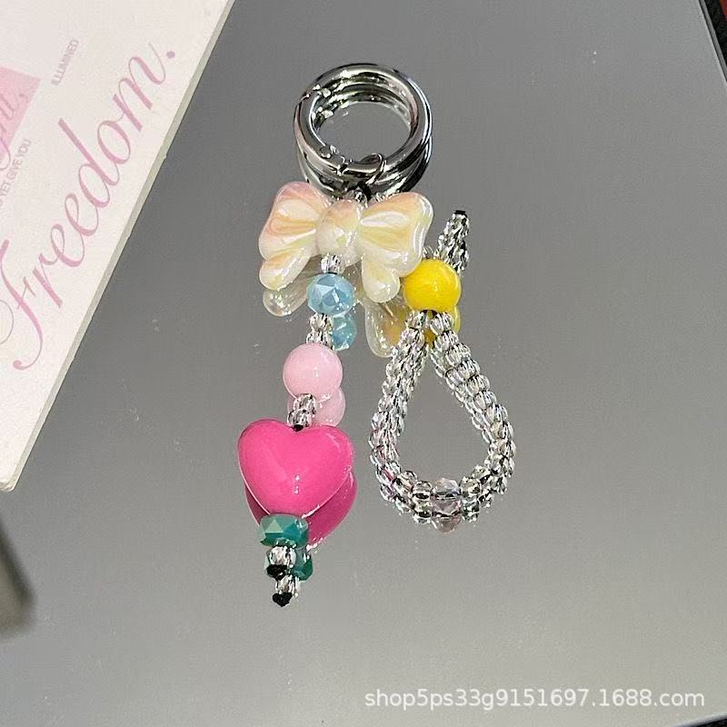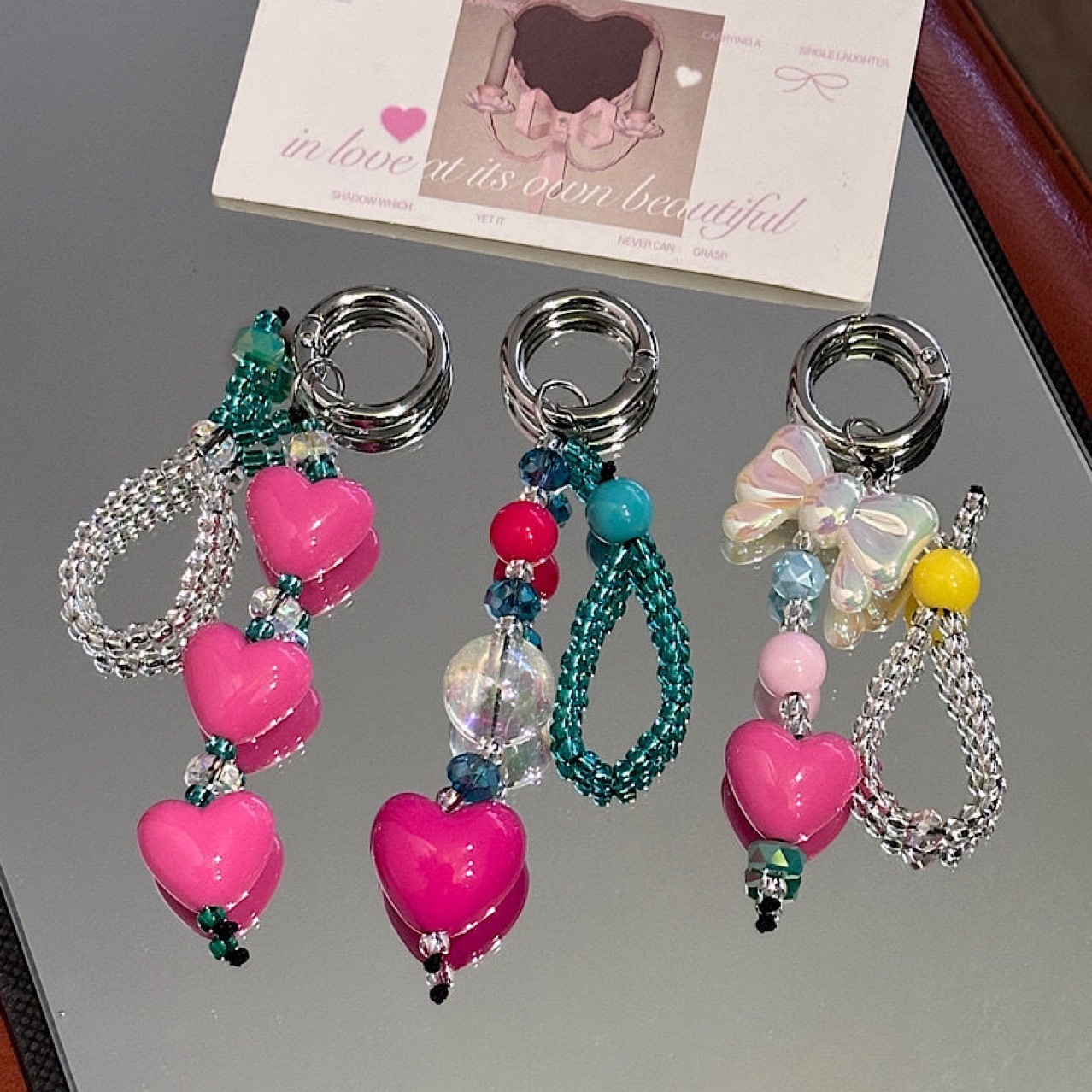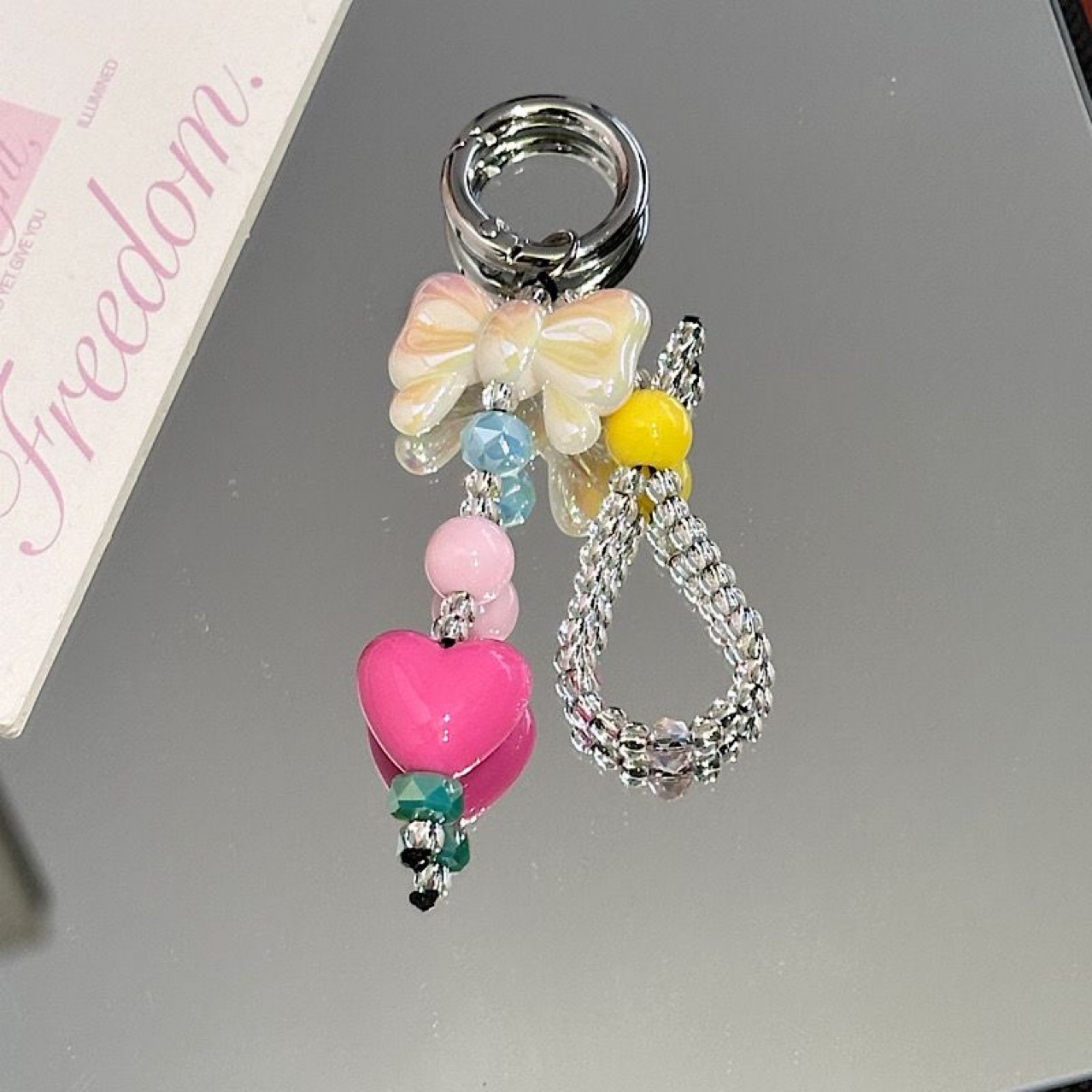 일본과 한국 도파민 컬러 3피스 러브 라이스 비즈 보우 핸드메이드 소녀 하트 펜던트 절묘한 열쇠 고리