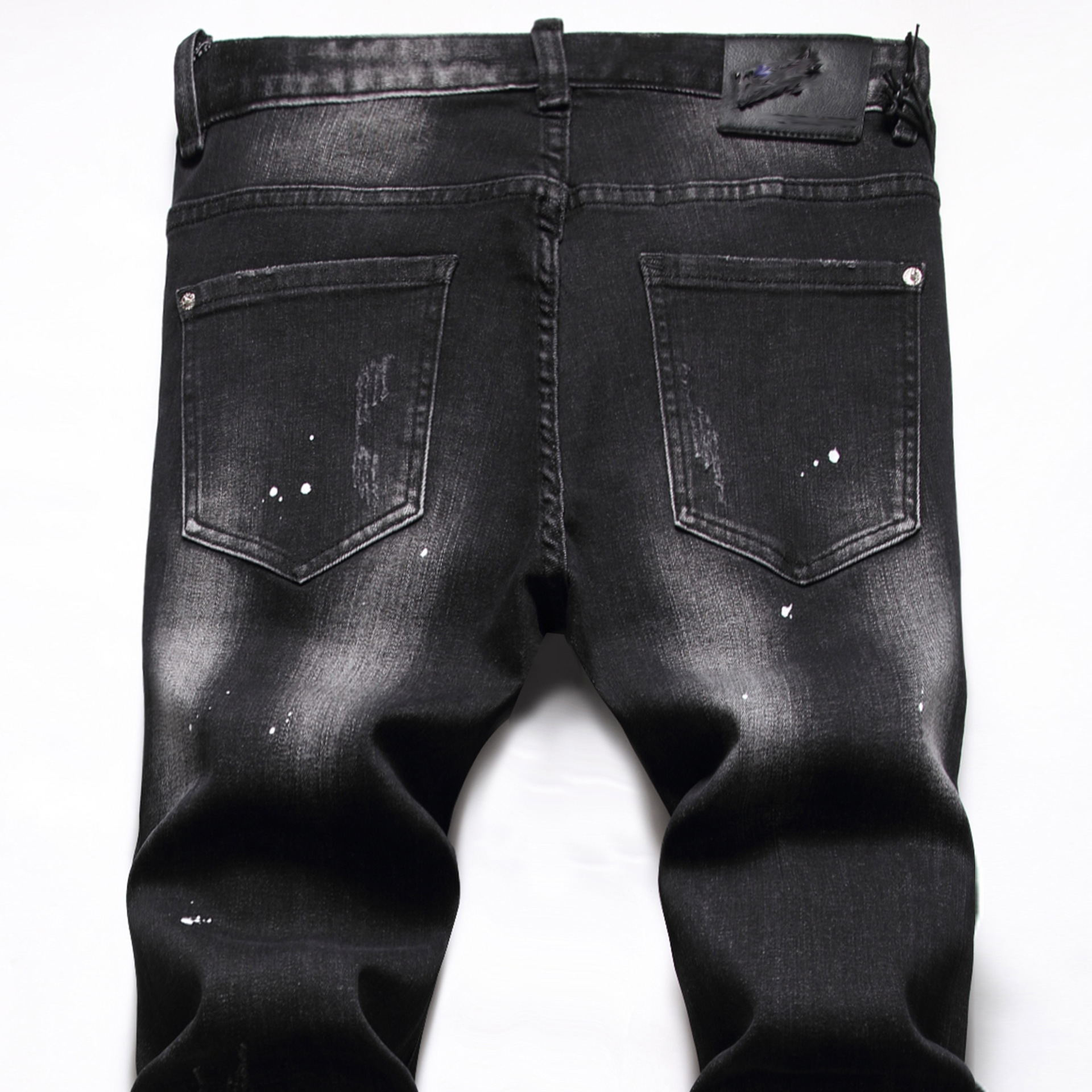 끈 남성용 맞춤형 검정색 페인트 스크래치 D2 크로스보더 장식 하이 스트리트 찢어진 청바지 바지 트렌디 스플래시스토어 가기