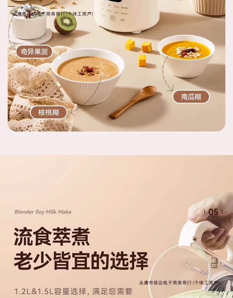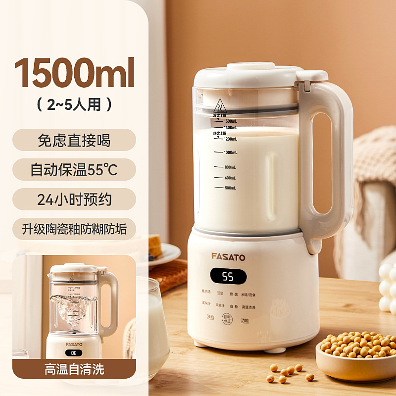 • 1.5L 크림 화이트 [16잎 스테인레스 스틸 칼] 업그레이드된 페이스트 방지 및 스케일 방지