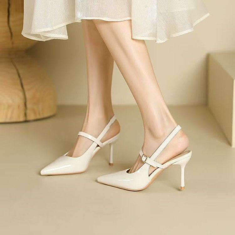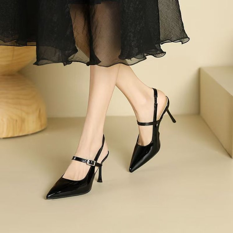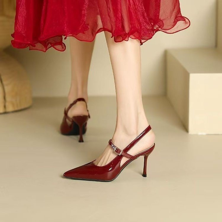 여성을위한 프렌치 버건디 하이힐 샌들 2025 여름 신작 Baotou 버클 스틸레토 힐 스커트와 매치 한 우아한 신발