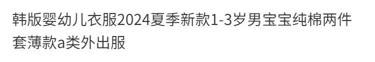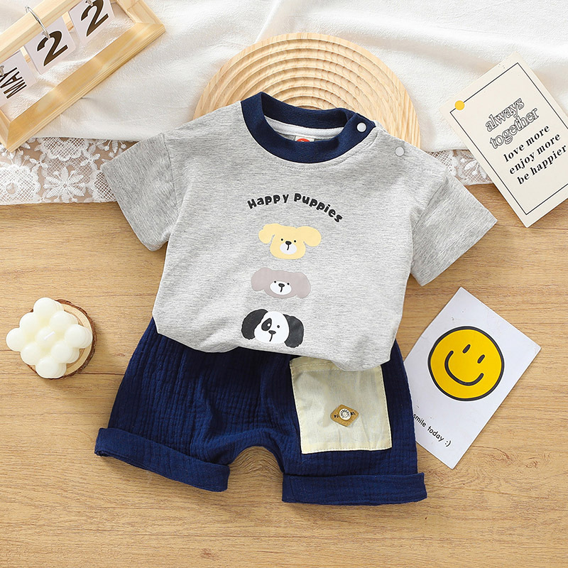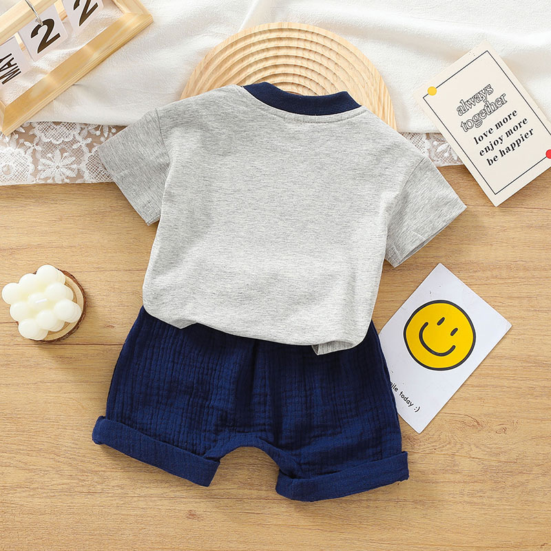 한국 스타일 유아 의류 2024 여름 새 스타일 1-3 세 소년 아기 면화 투피스 얇은 외출복