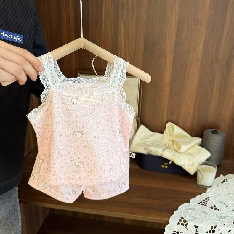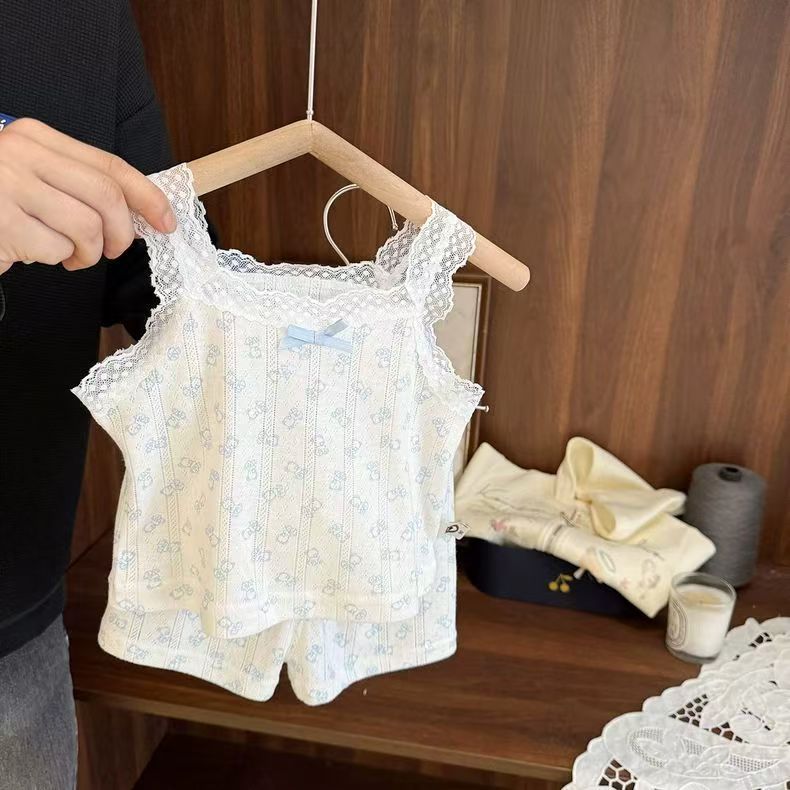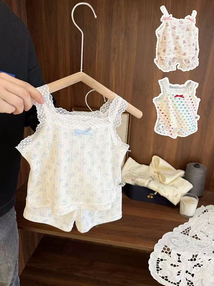아기 소녀 통기성 얇은 가정 의류 세트 아기 소녀 여름 겉옷 소녀 캐미솔 반바지 투피스 세트스토어 가기