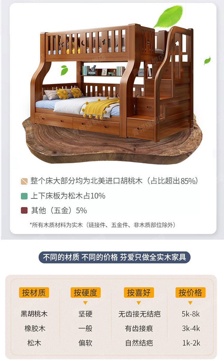 호두나무 이층침대, 원목 이층침대, 성인용 높낮이침대, 소형 아파트, 어린이 이층침대, 옷장, 이층침대