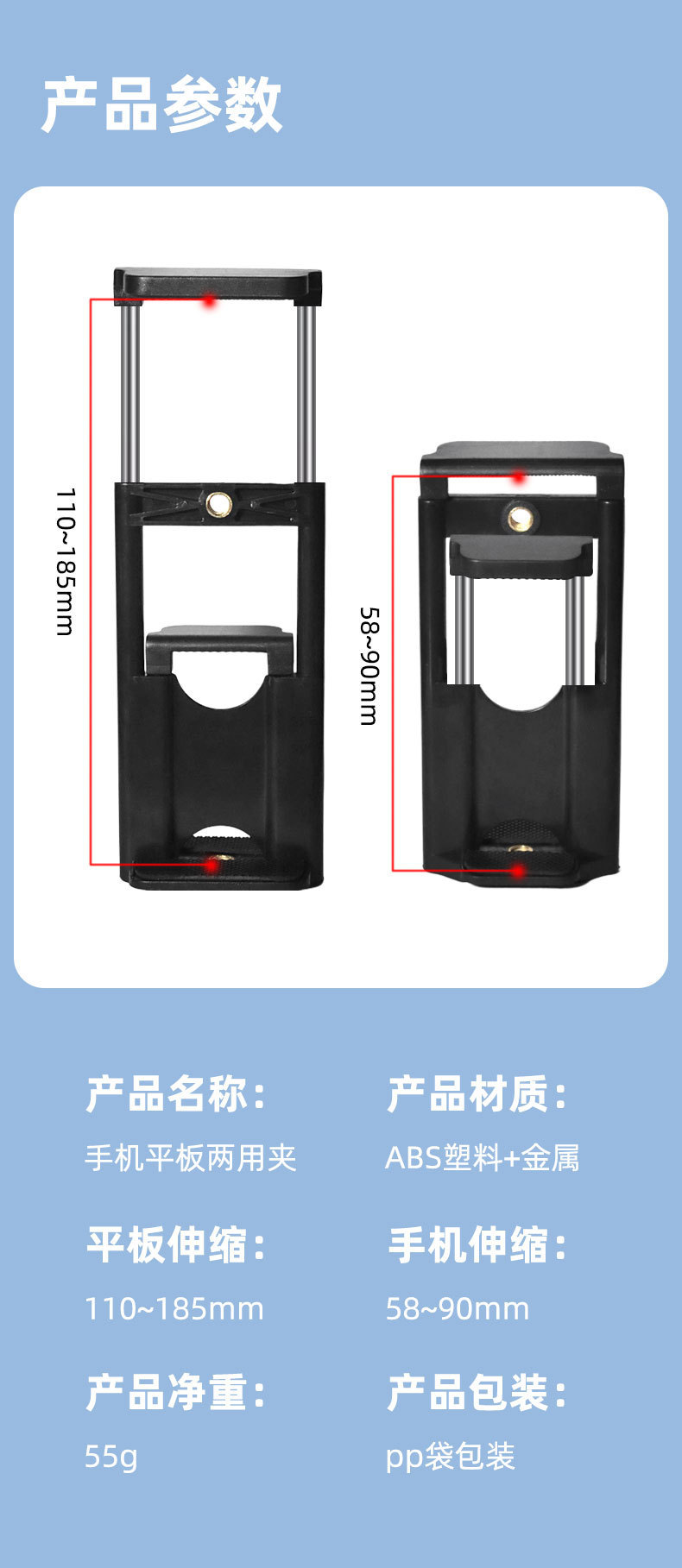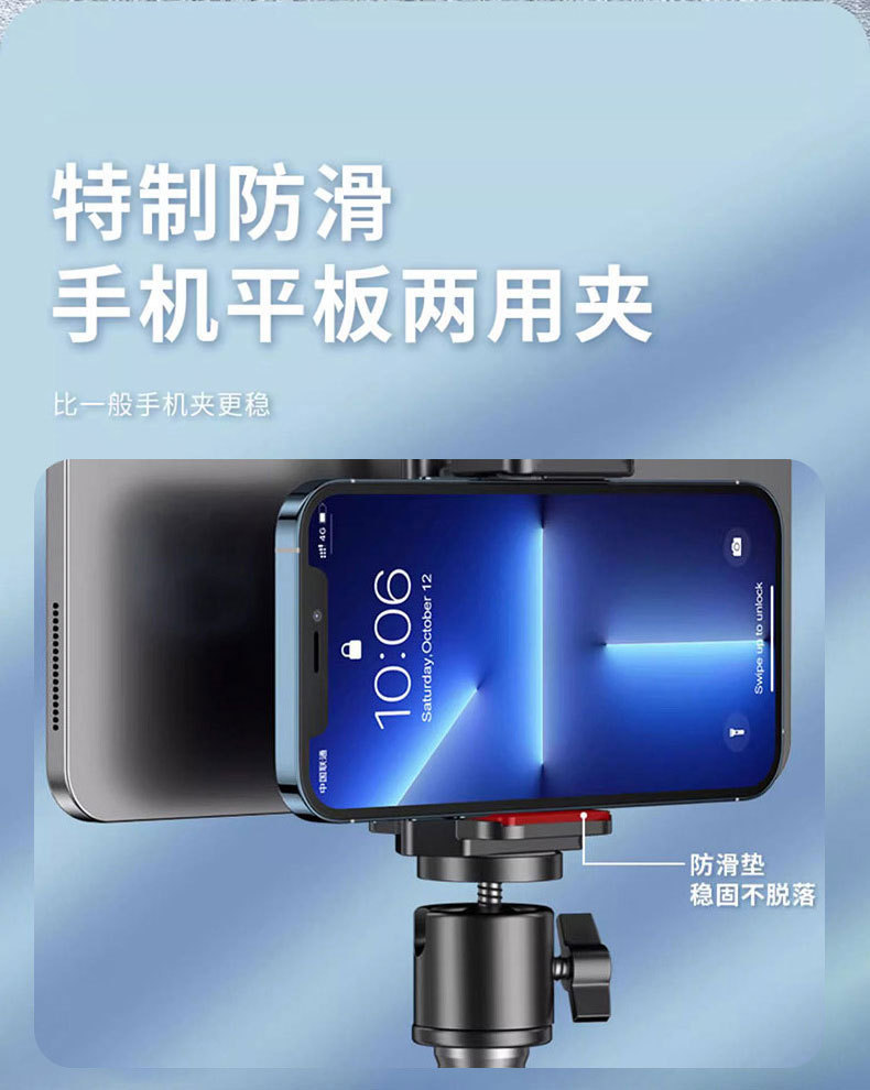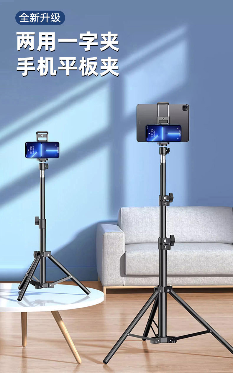 공장 직접 공급 휴대폰 라이브 방송 홀더 액세서리 클립 데스크탑 삼각대 플로어 스탠딩 휴대폰 및 태블릿 이중 용도 클립