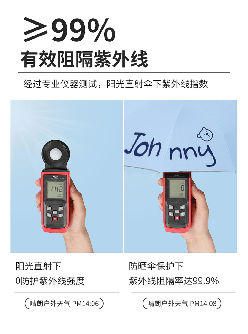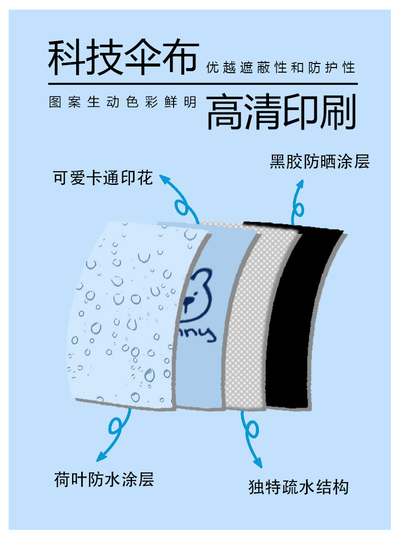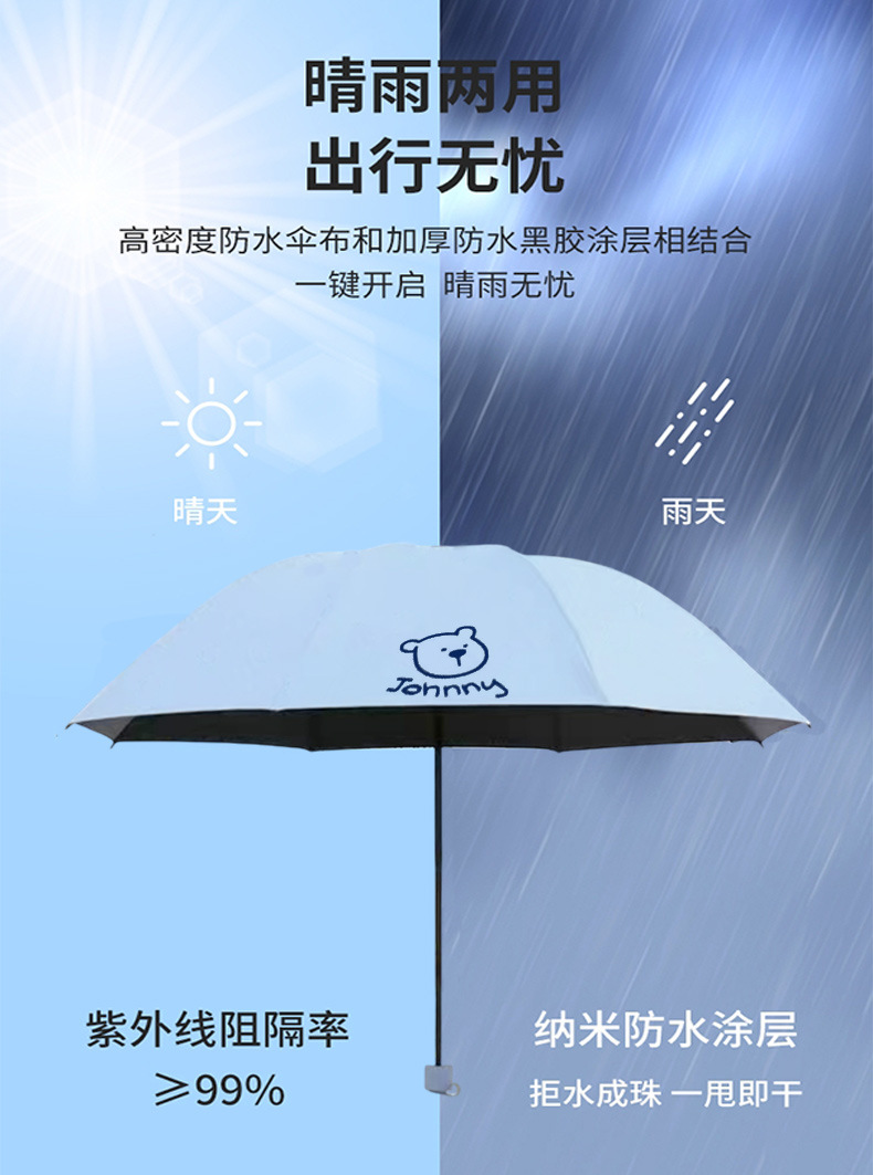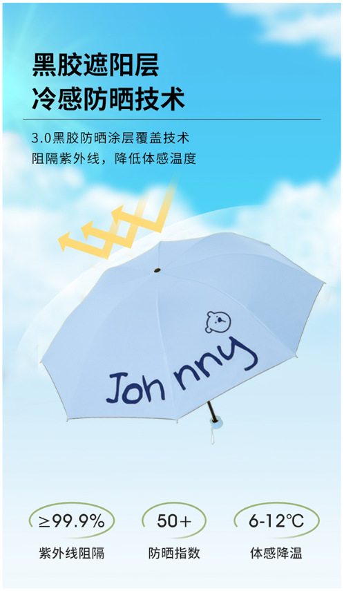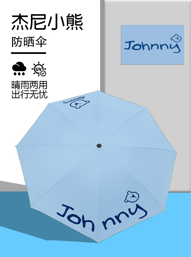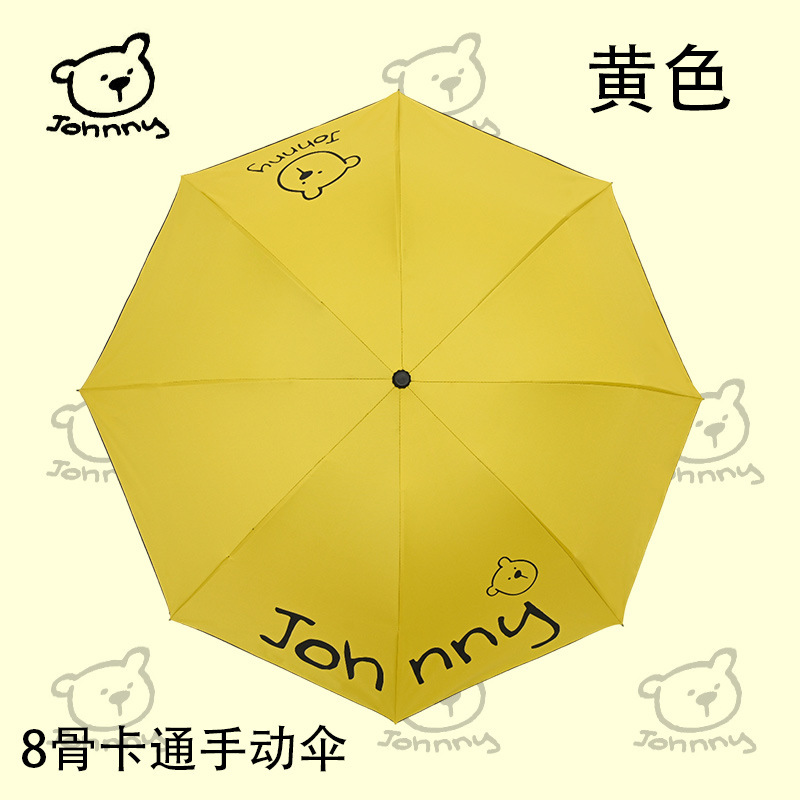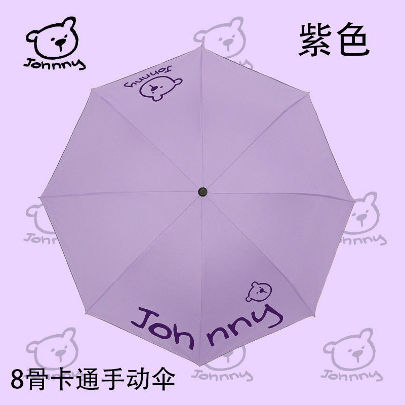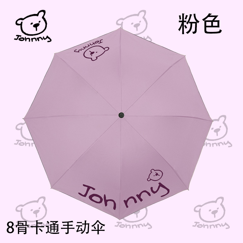 수동 비 또는 빛 우산 곰 만화 인쇄 비닐 강화 태양 보호 자외선 차단 접이식 태양 우산