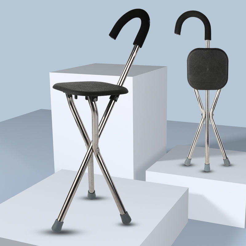 노인을 위한 미끄럼 방지 삼각대 지팡이, 접이식 의자, 스툴이 있는 지팡이, 휴대용 지팡이, 앉을 수 있는 지팡이