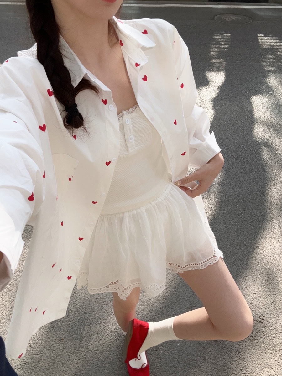 • 화이트 러브 프린트 셔츠