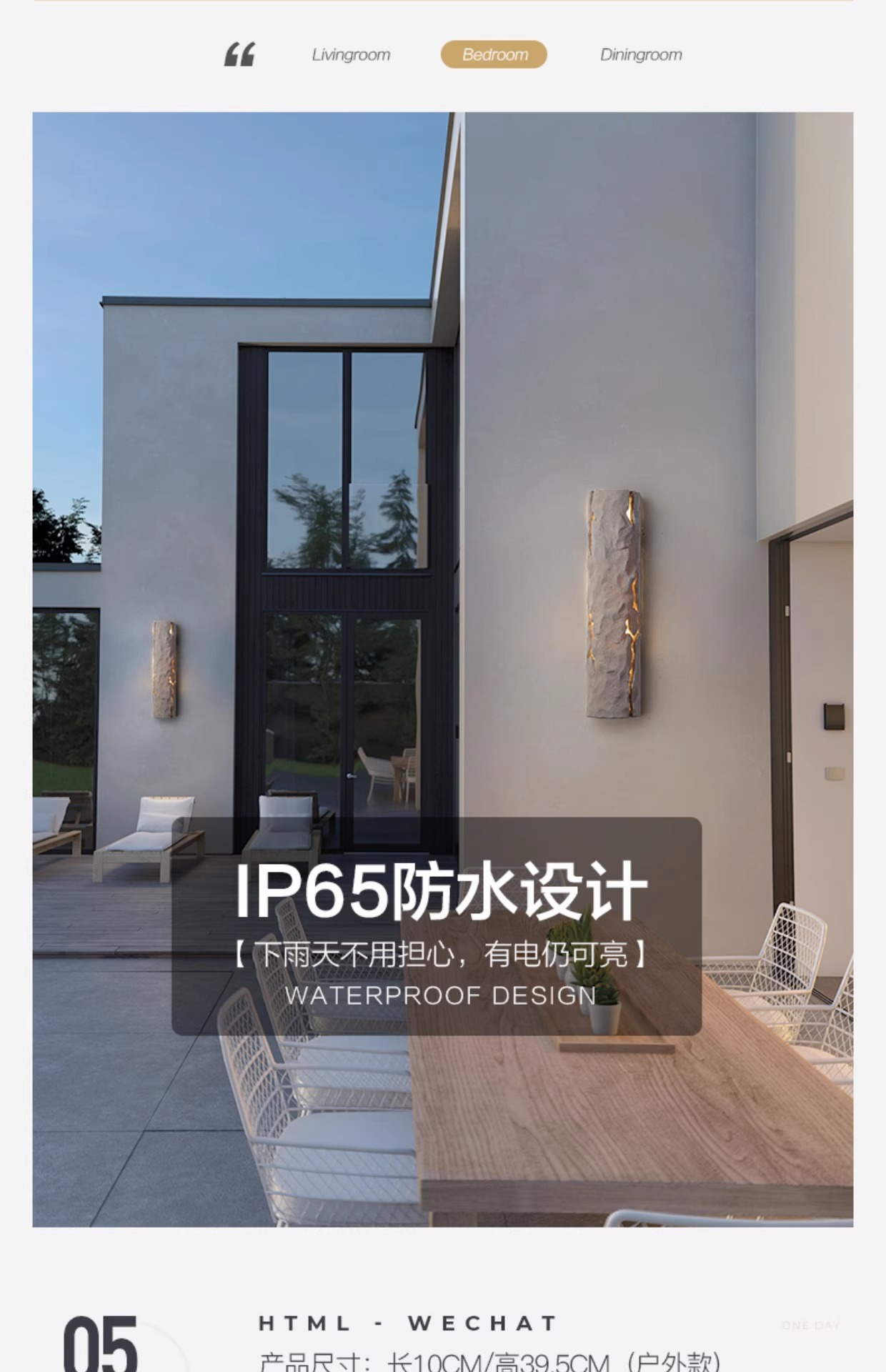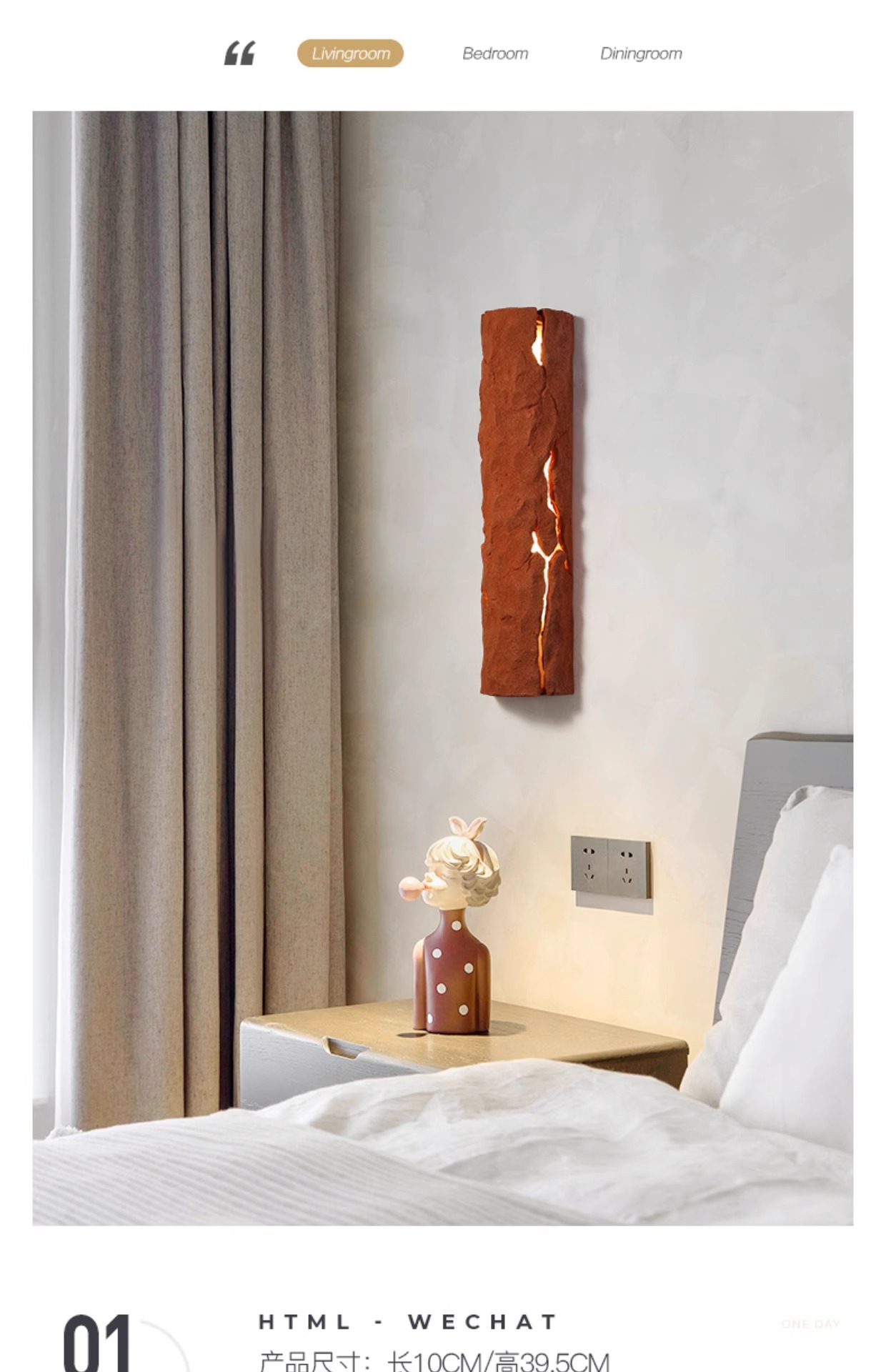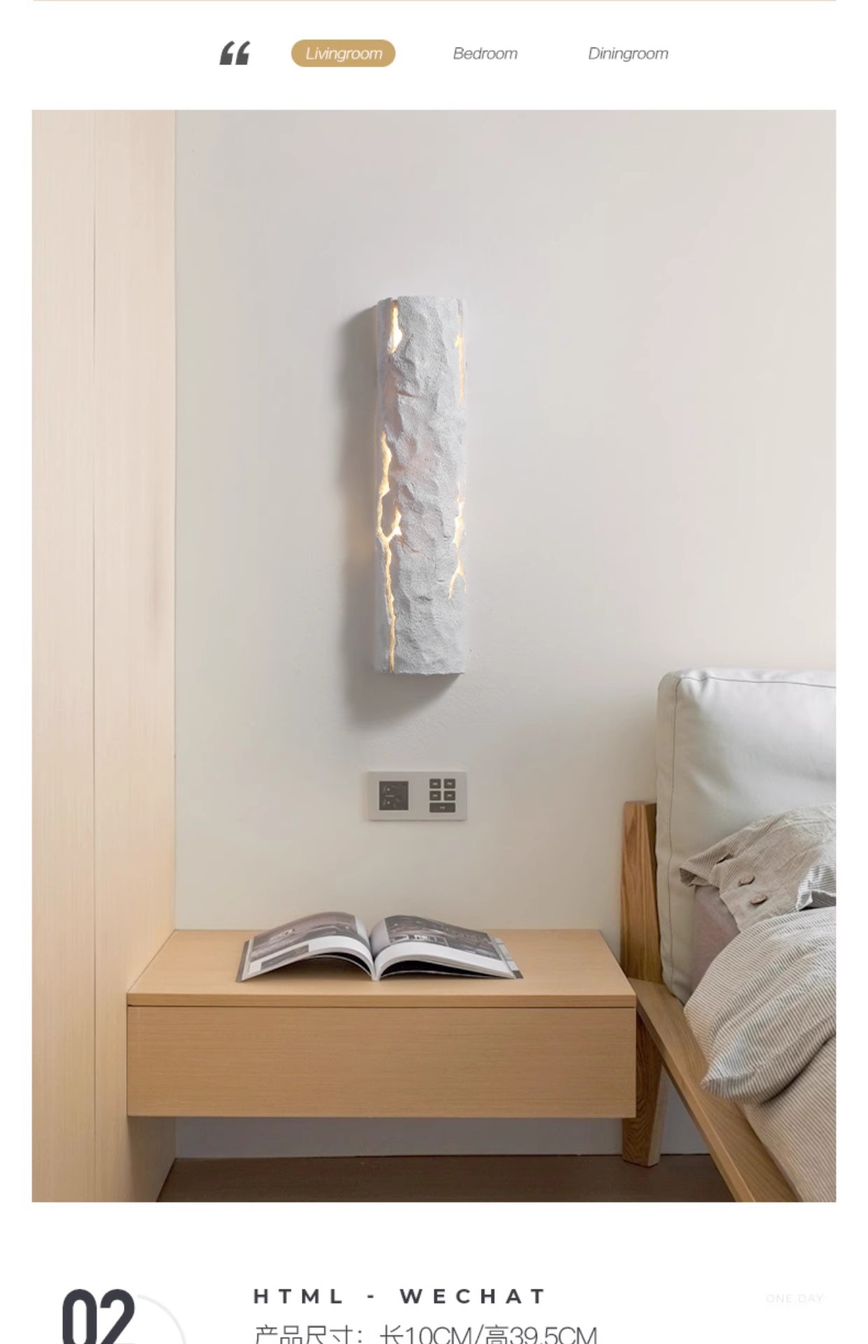 • [실내 비방수 모델] 화이트 록 월 램프 10*39.5CM