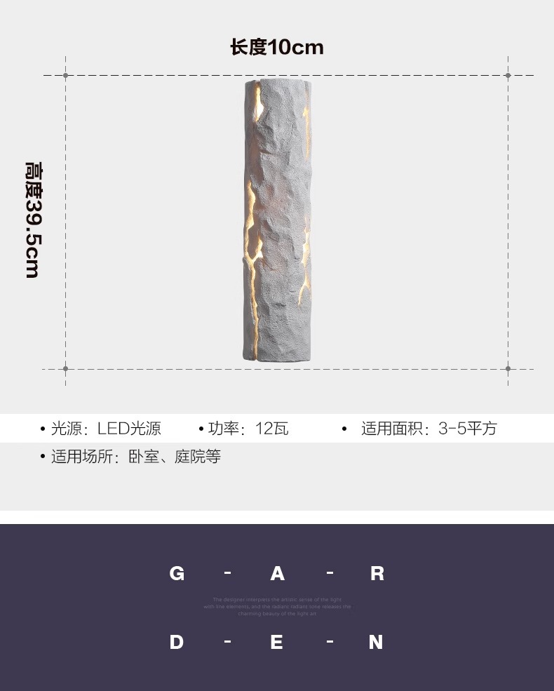• [실내 비방수 모델] 그레이 록 월 램프 10*39.5CM