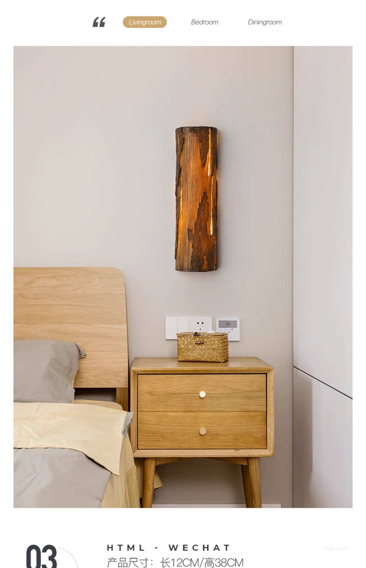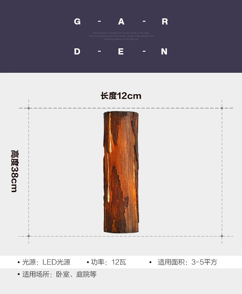 • [실내 비방수 모델] 나무 그루터기 벽 램프 12*38CM