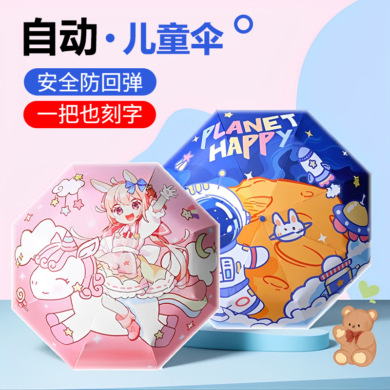 무료 각인 어린이 우산, 완전 자동 안전 반동 방지 만화 접이식 우산, 초등학생 남아 여아 전용스토어 가기