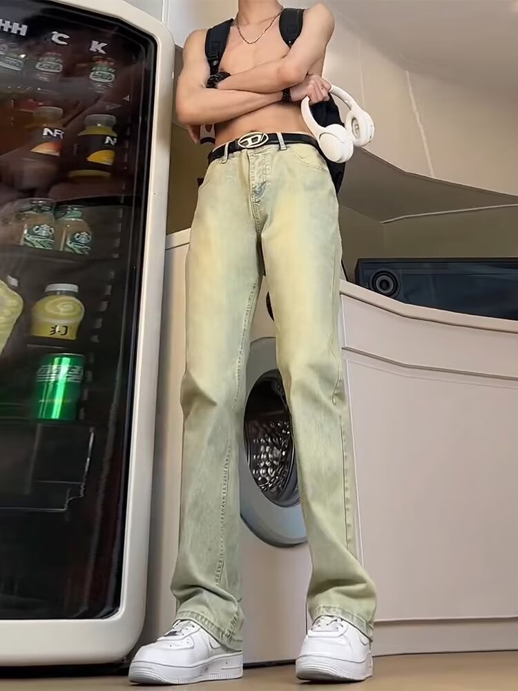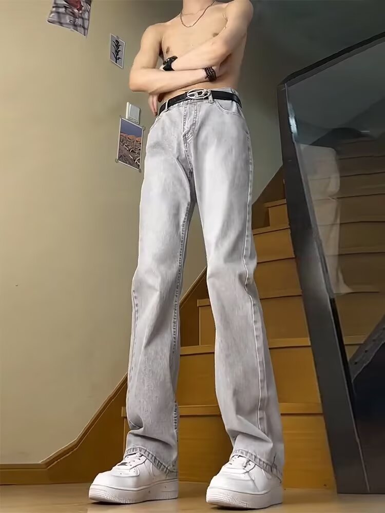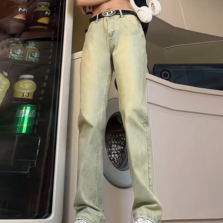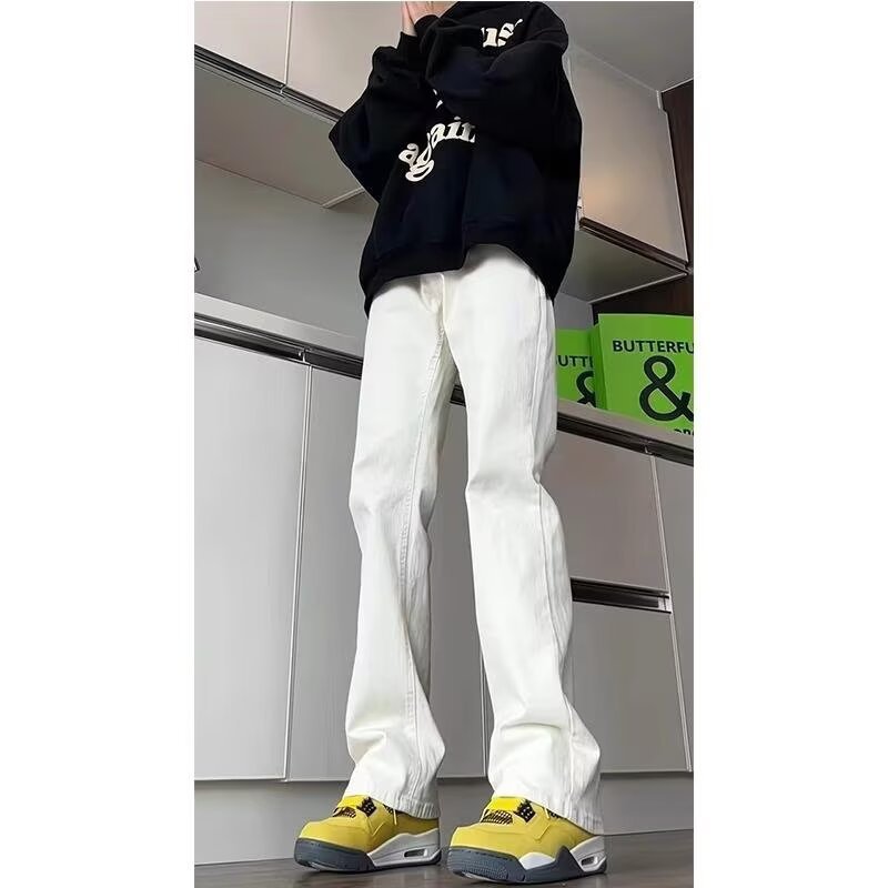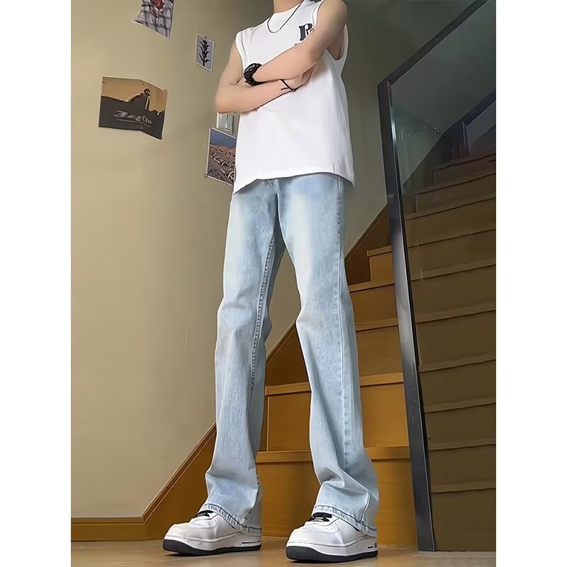 2025 새로운 스타일 청바지 남성 여름 얇은 미국 스타일 바이브 스타일 바지 탄성 마체 테 좁은 판 스트레이트 바지스토어 가기